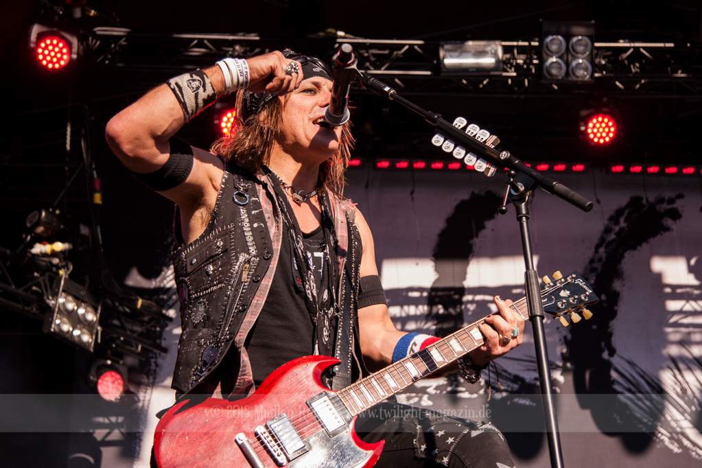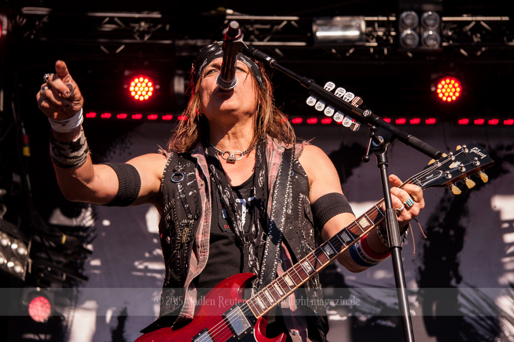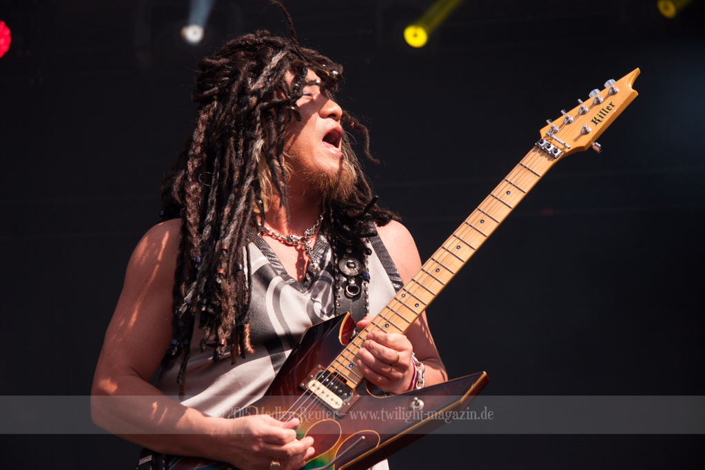Den, aus dem Land der aufgehenden Sonne stammenden, Herren von LOUDNESS wurde als nächstes die Bühne überlassen. Unschwer zu Überhören war, dass die Band sich auf Hardrock aus den 80ern spezialisiert hatte. Einen gewissen Touch AC/DC und ACCEPT ließ sich nicht von leugnen. Vor allem der Gitarrist durfte, mit zahlreichen, Technisch höchst anspruchsvollen Solos, sein Können unter Beweis stellen. Irgendwie hatte ich das Gefühl, dass sie denselben Song einfach immer wieder gespielt haben.