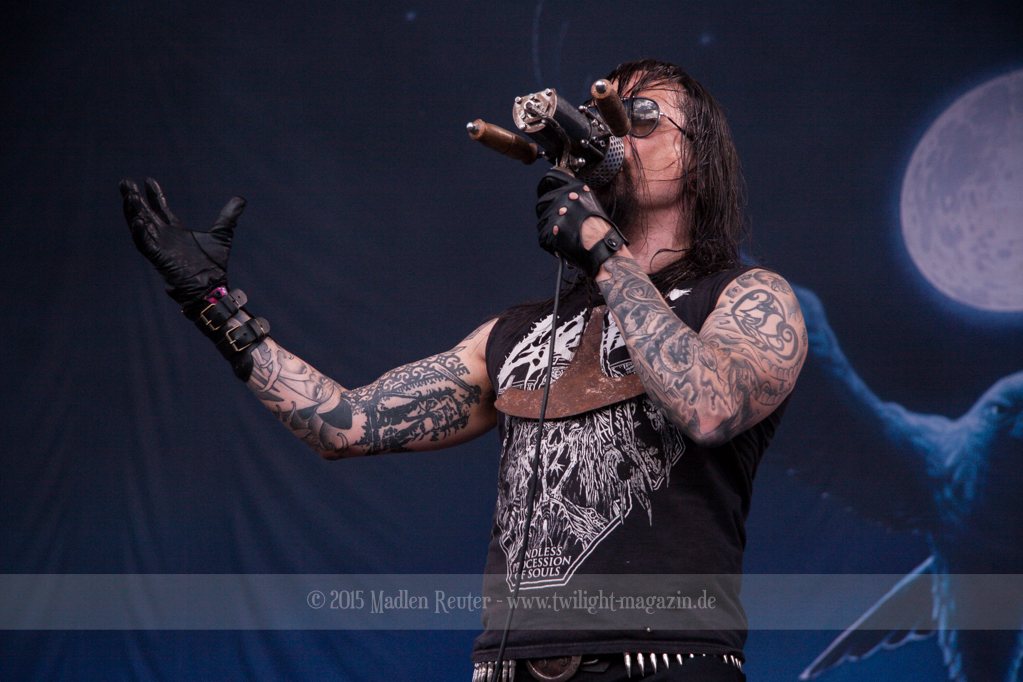 Danach ging es dann mit einer waschechten Weltpremiere weiter. Der ehemalige Sänger von IMMORTAL hat sich, unter dem Namen ABBATH, eine neue Band zusammengesucht. Wie nicht anders zu erwarten, würde auch diese Band klassischem Black Metal auffahren. Musikalisch konnte ich mit dieser Performance überhaupt nichts anfangen. Der Sound war zwar gut, aber mehr vermag ich hier nicht zu sagen. Die ekstatischen Reaktionen der Fans sprachen jedoch Bände. Gegen die Bühnenshow konnte ich allerdings nichts sagen, da diese mir sehr gut gefallen hat.