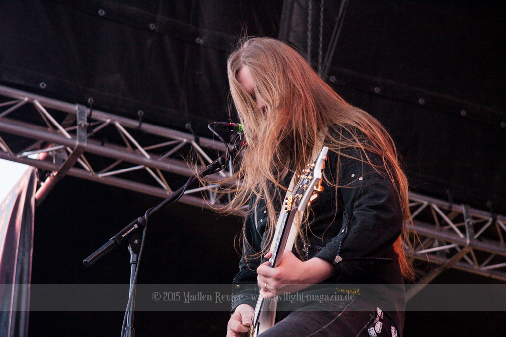Über die nächste Band musste ich mich dann aber doch wundern. THE BLUES PILLS? Auf einem Metalfestival? Da ich keinerlei Erwartungen an diese Band hatte, wurde ich dennoch positiv überrascht. Zwar war die Musik sehr bluesgeprägt - wie der Name der Band schon verraten könnte - und die Musiker wagten es kaum, ihre Blicke von den Instrumenten zu heben, aber die Sängerin machte dies ein wenig wett. Voller Energie und guter Laune schüttelte sie ihr Tamburin umher, hüpfte über die Bühne und überraschte mit ihrer kräftigen Stimme. Der Auftritt war ziemlich gut, wenn man einmal davon absieht, dass diese Band eigentlich nicht auf dieses Festival passt.