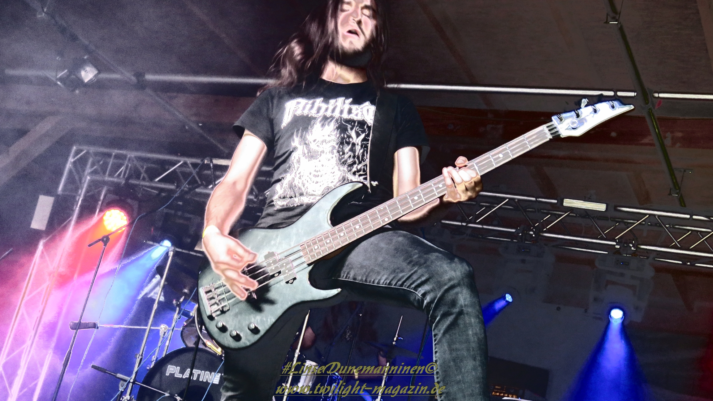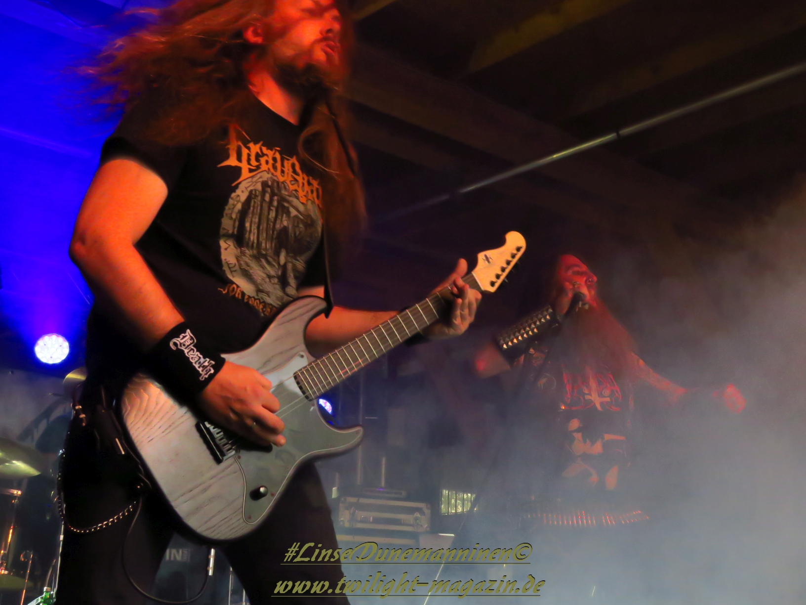 Die musikalische Mischung aus Black Metal, Punk und Doom von Seuche und seiner Band Fäulnis ist schon sehr speziell und zum Polarisieren verdammt. Insbesondere vom hatte ich die Hamburger Formation auf dem Party.San 2015 persönlich in fürchterlicher Erinnerung. Dieser Eindruck relativiert sich heute Abend glücklicherweise etwas, wobei ich mit der Musik und der Art, wie sie Hauptprotagonist Seuche vorträgt jedoch nach wie vor nicht wirklich warm werde. Als Performance-Kunst kann ich dem ganzen jedoch zumindest einmalig etwas abgewinnen. Darüber hinaus sieht das aber ein großer Teil des Publikums anders und feiert Fäulnis mächtig ab.