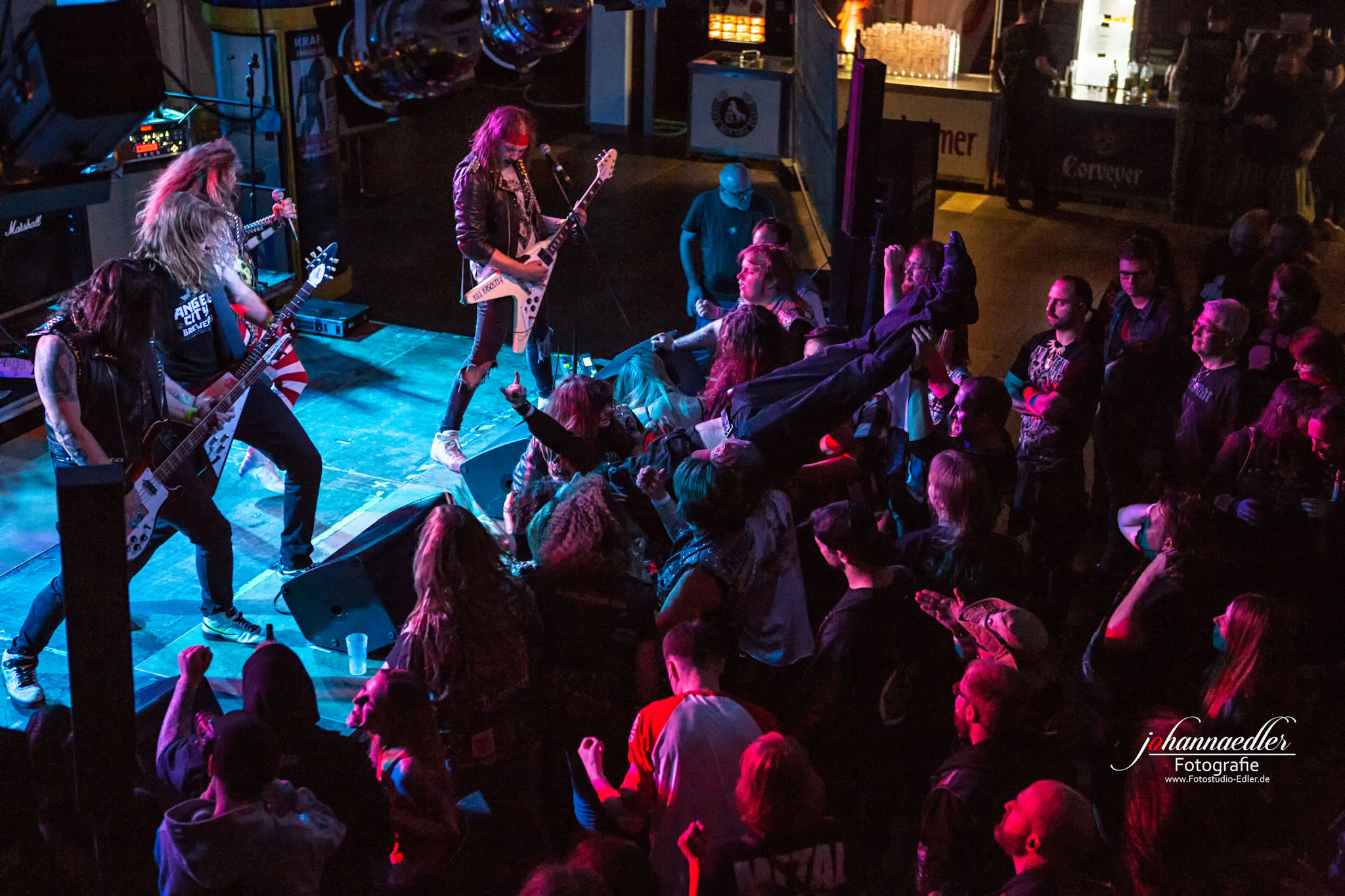 Zitate und musikalische Verbeugungen gibt es anschließend auch bei STALLION zuhauf. Die Uhr ist bereits weit vorgerückt und so begrüßen die Jungs aus Baden-Württemberg die versprengte und bereits deutlich dezimierte Meute vor der Bühne mit einem ausgelassenen "Guten Morgen, Göttingen!". Sowohl Stallion, als auch Fans haben tierischen Bock, die Mensa final zu rocken. Das, was hier von der Bühne auf die partywütigen Metalheads einprasselt ist eine Huldigung der Hochphase des Heavy- Speed- und Thrash Metals vornehmlich deutscher Prägung. Stallion spielen sich den Arsch ab und wissen von der ersten, bis zur letzten Minute zu begeistern. Die Einflüsse des Quintetts mögen zwar in den Achtzigern liegen, aber was diese Jungs daraus machen klingt nicht nur live frisch und kraftvoll, das ist zeitloser Metal aus dem Hier und Jetzt. Ein absolut würdiger Headliner und Abschluss des UNDERGROUND REMAINS OPEN AIR 2019.