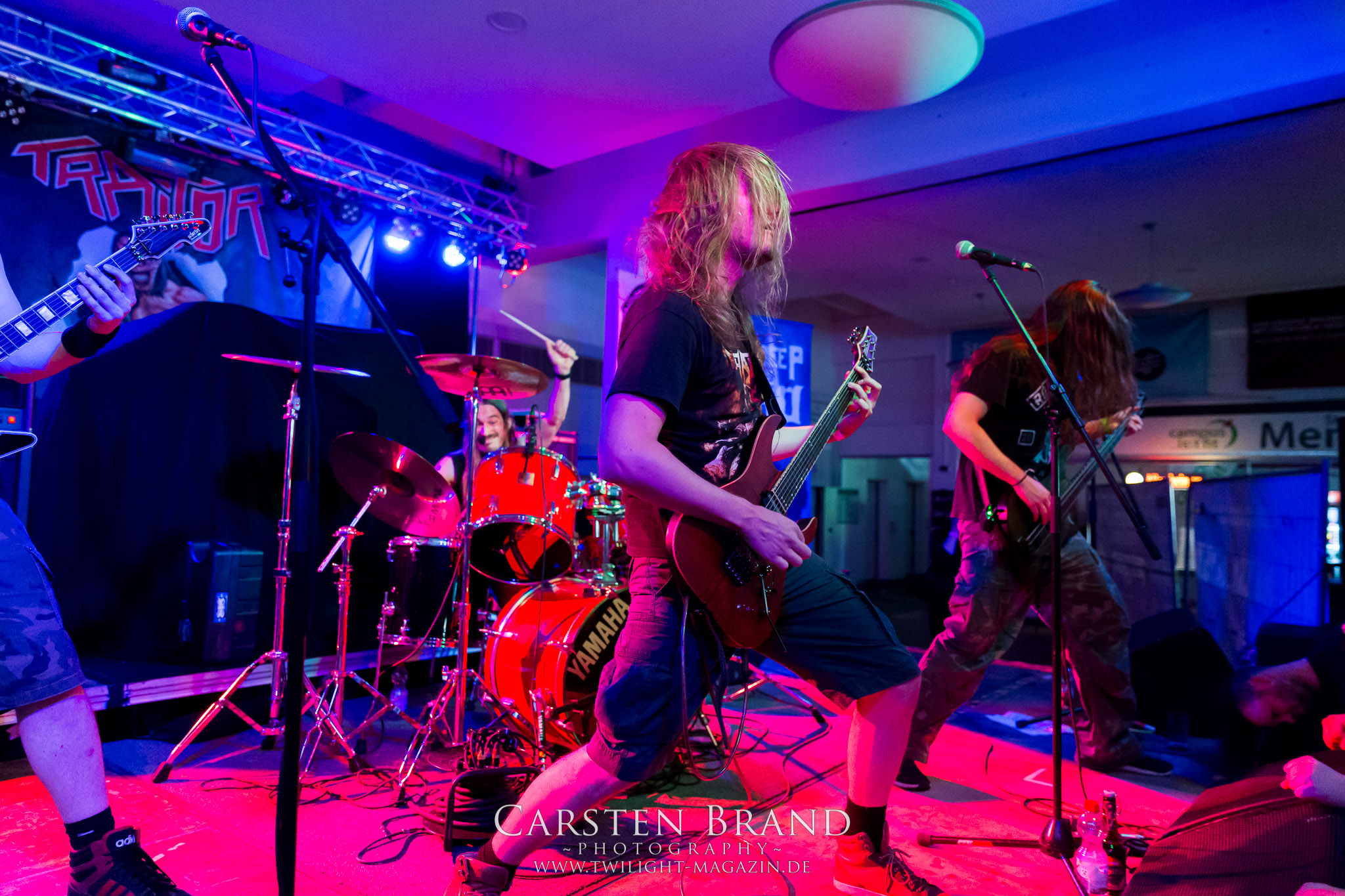 Thrash Metal hat Tradition auf dem UNDERGROUND REMAINS OPEN AIR. Vor zwei Jahren waren es die Wolfsburger von Revolt, im vergangenen Jahr mit Distillator und Pripjat gleich zwei Thrash-Hochkaräter. Dieses Mal sind also TRAITOR dran. Das Quartett aus Balingen um den singenden Trommler Andreas Mozer fährt in Fahrwassern der frühen Kreator, macht die Mensa zum ersten Mal so richtig voll und erntet mit einem ernergiegeladenen Auftritt weiterhin erstmals an diesem Nachmittag so richtig überschwengliche Reaktionen. Aber obschon Traitor ein richtiges Feuerwerk abbrennen und sich nach der Schrecksekunde bei Age Of Woe scheinbar so richtig ins Zeug legen, um das Festival wieder in die richtige Spur zu bringen: So richtig packt es mich dann doch nicht. Woran es liegt vermag ich kaum zu sagen, es macht ordentlich Laune aber so richtig umgehauen werde ich nicht.