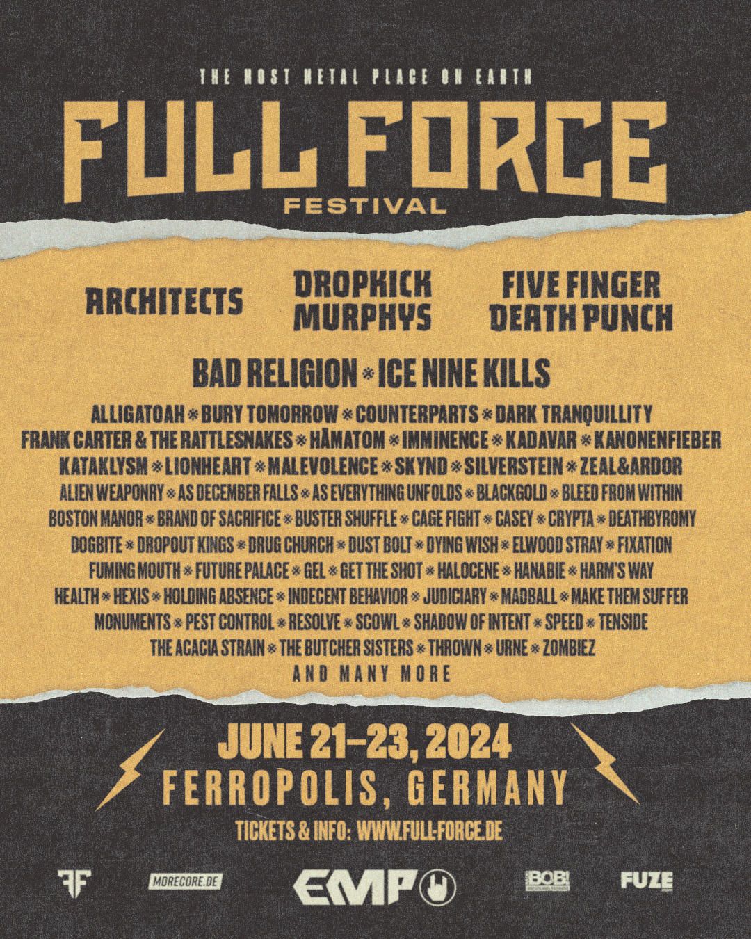 Hier ist die alphabetische Auflistung aller bisher bestätigten Bands für das Full Force 2024: