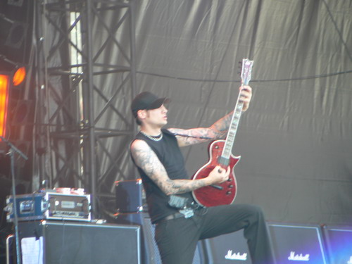 Samstag 18:45-20:00 SOULFLY SOULFLY aus Brasilien waren schon immer eine meiner Lieblingsbands (nach der Auflösung von Sepultura) und konnten ihre Stellung auch während dieses Auftritts wieder behaupten. Mit enorm viel Druck reißt Max Cavalera das Publikum mit und verwandelt den Platz vor der Bühne in einen Hexenkessel. Ich hatte die ganze Zeit das Gefühl, dass er richtig gut gelaunt war, später wurde mir allerdings berichtet, er hätte sein Mikro aus Wut durch die Gegend geworfen. Hab ich vielleicht verpasst (wie kommt's), muss aber auch nicht heißen, dass er schlecht gelaunt war. Es wird jedenfalls zünftig gepogt und Crowdsurfing betrieben, bis auch dieser Auftritt irgendwann sein Ende findet. Lennart