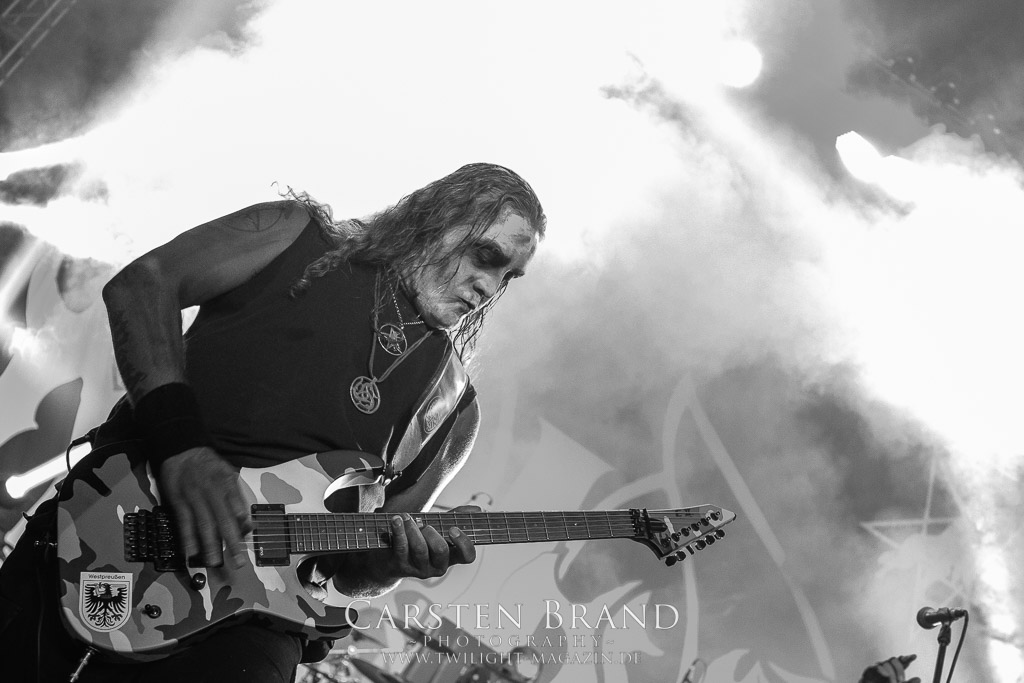 Der Schwedenhammer ergänzt hervorragend, was die skandinavischen Kollegen von TSJUDER angefangen haben. Mortuus präsentiert sich in gut gelaunter Form. Seine markerschütternden Growls kommen bereits vom ersten Track weg sehr gut beim Publikum an. Das Wolfsrudel macht keine Gefangenen und marschiert fleißig als Panzer DIvision Marduk über den Platz.