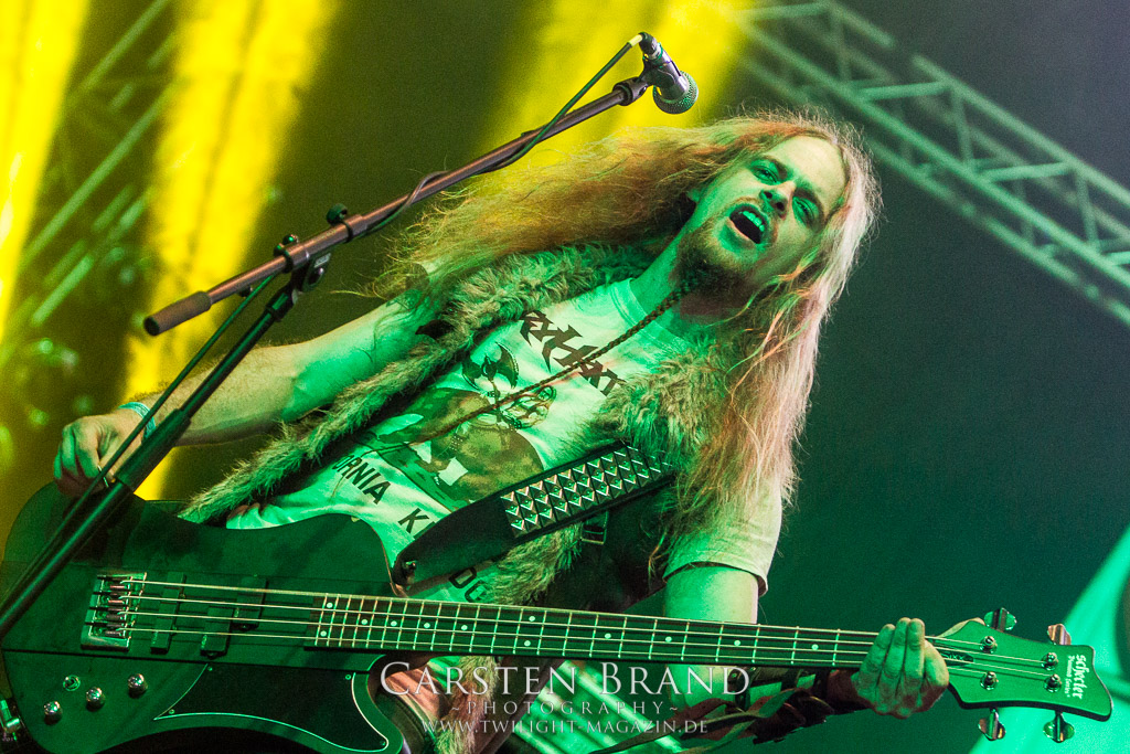Eigentlich ist die Party Satage ja sehr weit entfernt von der Headbanger Stage. Dennoch entern GLORYHAMMER mit ihrem Fantast Metal zum frühen Abend das Zelt. Auf der Suche nach Einhörnern, Drachentötern oder der Prinzessin, irgendwo dazwischen bewegen sich die Herren des Power Metal. „ I wanna set the universe on fire“. Das Universum muss vor bösen Schurken verteidigt werden. Die Musik ist recht simpel zu beschreiben: Eingängiger Power Metal mit sehr viel Ohrwurm Charakter, einfachen Refrains und einer Menge Ironie oder einfach: Spaß an der Sache. Man könnte es als billigen Klamauk betiteln. Wer allerdings sich mal überwunden hat, die Show der Helden anzusehen, wird schnell überzeugt. Der Slot macht einfach wahnsinnig Spaß, das Bein wippt sehr schnell mit dem Takt mit. Und spätestens ab dem zweiten Track fühlt man sich ebenfalls als Ritter und Retter der Galaxie. Es fehlt nicht an Klischees und diese werden auch fleißig bedient und gepflegt. „Legend of the Astral Hammer“ ist dafür ein gutes Beispiel. Grandioses Kino auf ganzem hohen Spaß Level.