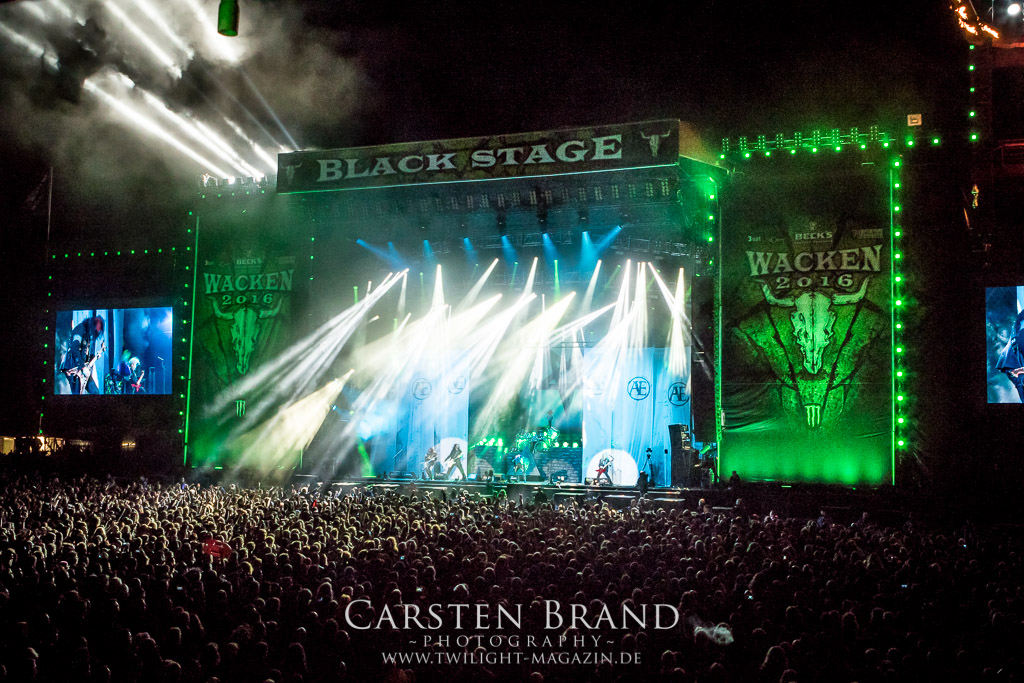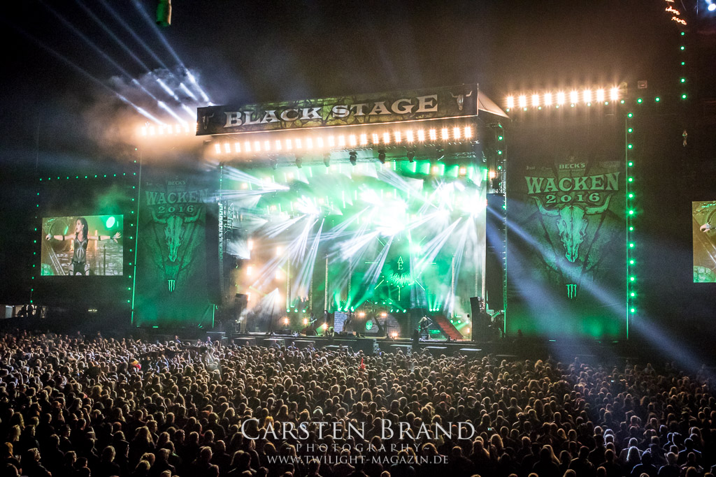 Ein Highlight des Festivals hat sich fast auf den hinteren Slots versteckt. ARCH ENEMY planen eine Live DVD und nutzen hierzu den Auftritt des Wacken, um auf einer ausreichend großen Spielfläche zu performen. Nicht weniger als 13 Kamera Perspektiven lassen den Auftritt ins Wohnzimmer des Fans nach Hause kommen. Doch zunächst einmal soll das Wackener Publikum ihn live erleben dürfen. Die nicht mehr ganz so neue Frontdame Alissa White Gluz hat sich hervorragend in die Band integriert und überzeugt auf ganzer Linie mit einer unheimlichen Bühnenpräsenz. Trotz der sehr späten Uhrzeit und einem sich dem Ende neigenden Wacken Festival ist das Publikum noch immer bei Kraft und Laune, die Band lautstark zu unterstützen. ARCH ENEMY liefern professionell ab. Melodic Death vom Feinsten.