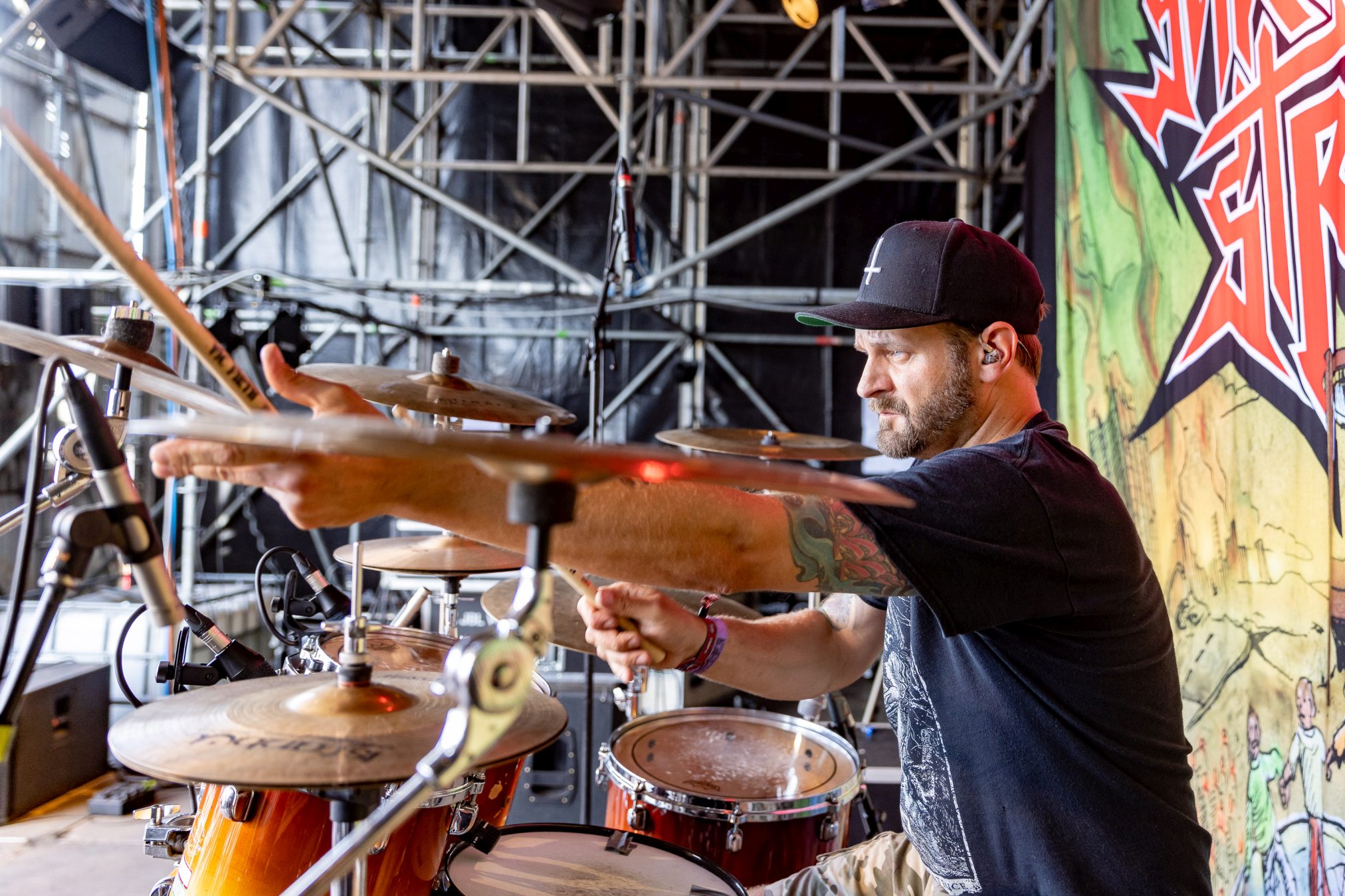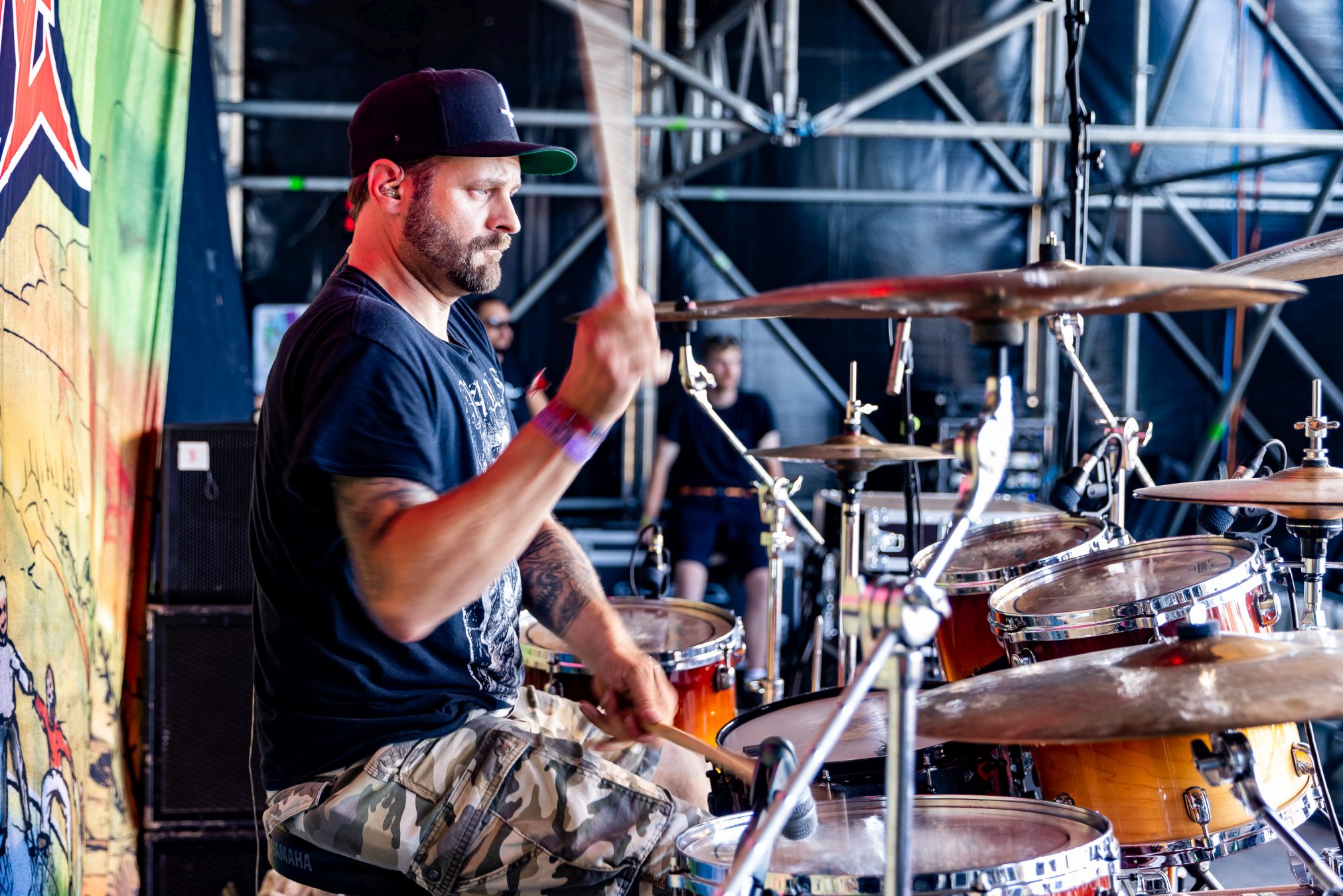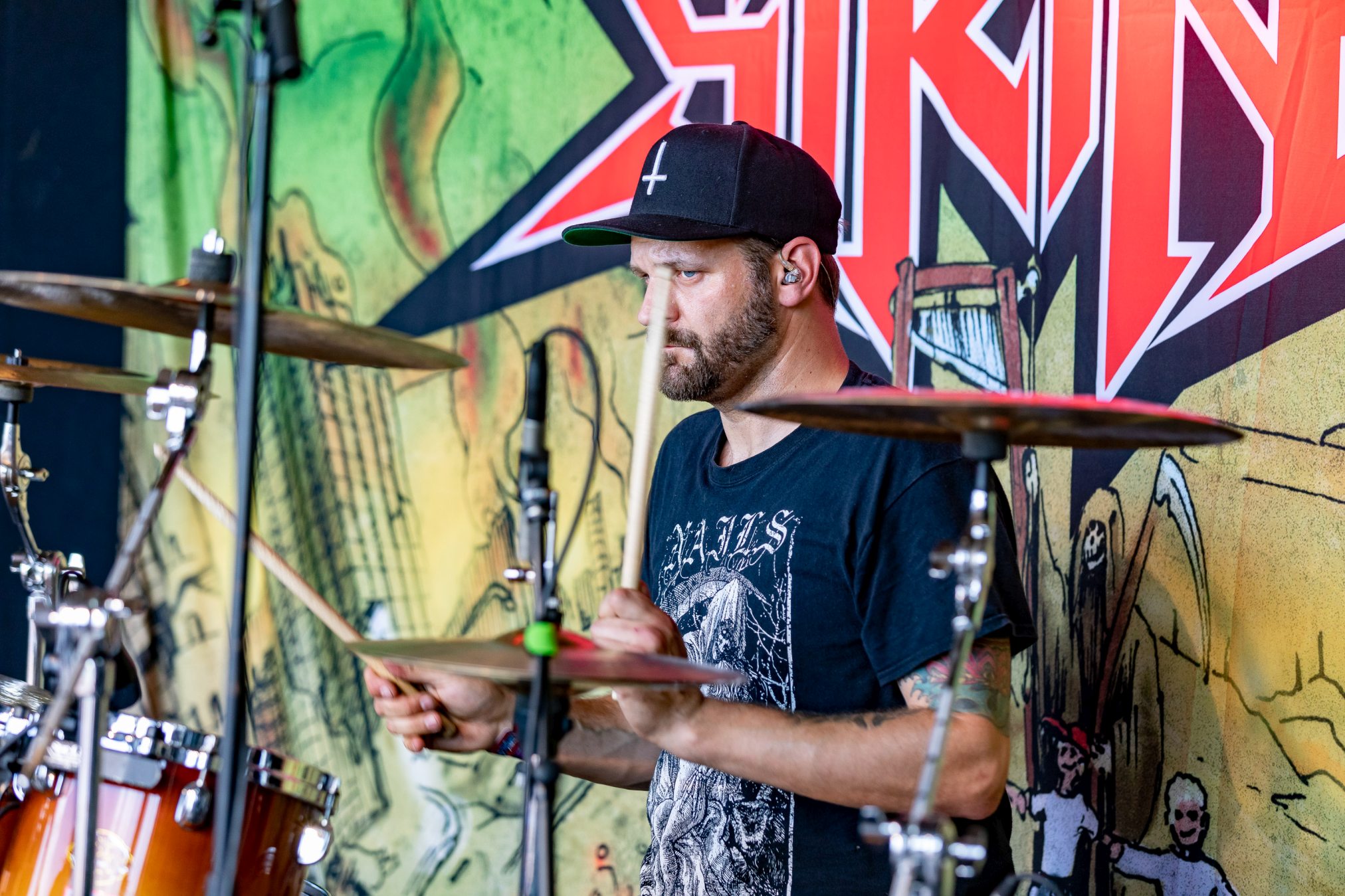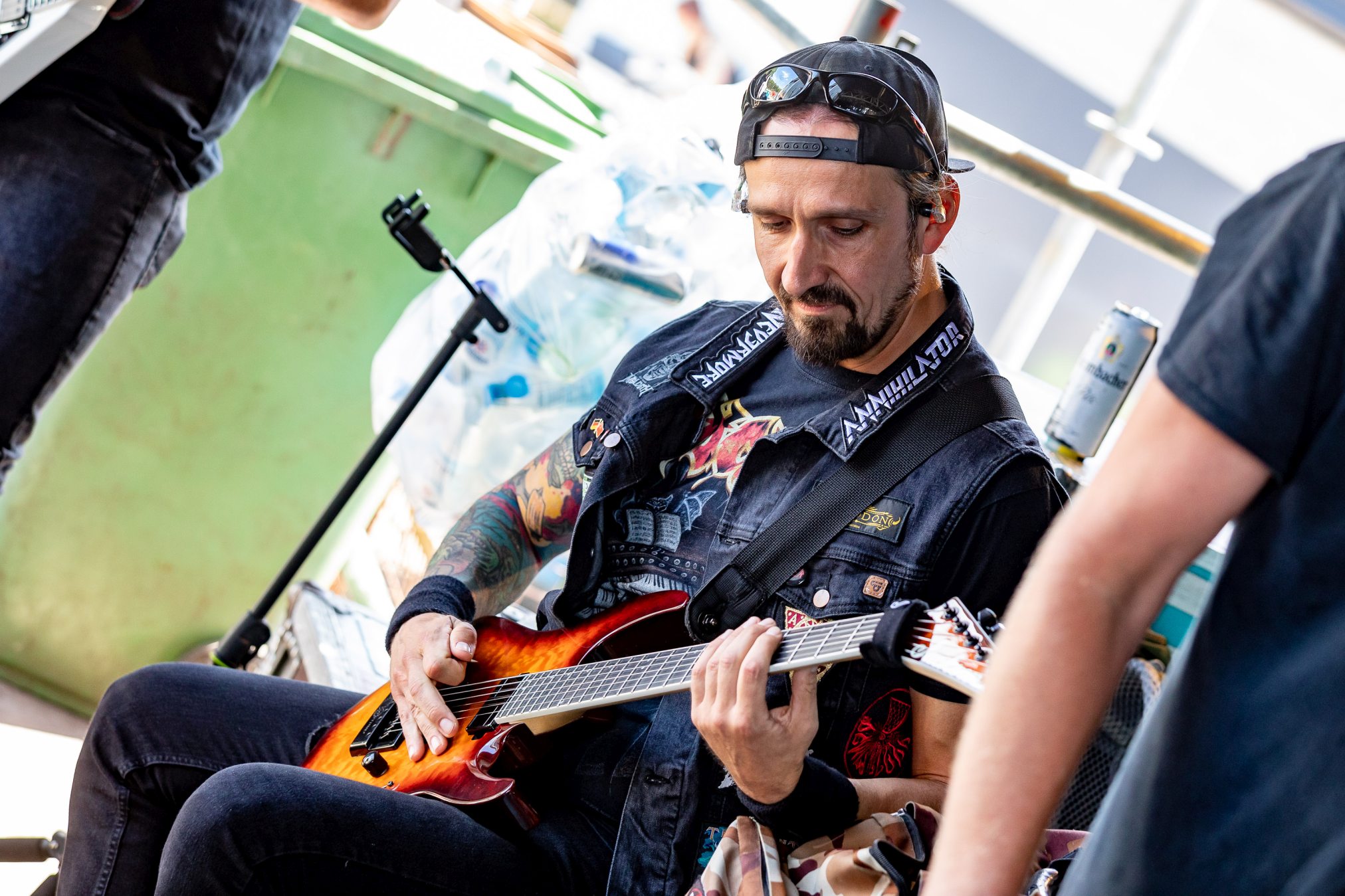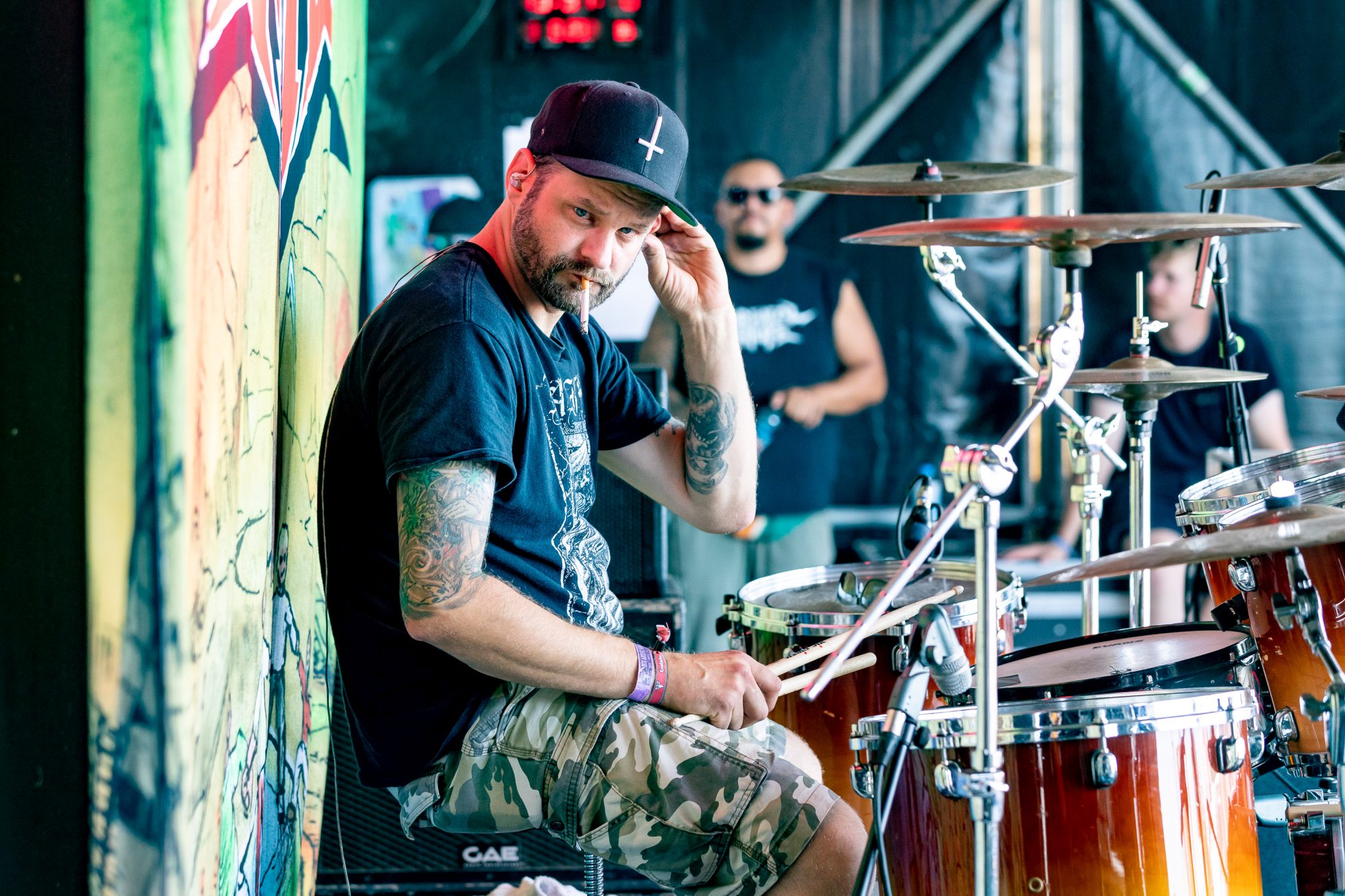 Nach diesem Hammer wird es für alle anderen Bands des Tages schwer zu punkten. Wir geben diese Chance BLACK INHALE auf der kleinen Wasteland Stage vor dem offiziellen Gelände. Die Wiener mit Ihrer eigenen Interpretation aus Hardrock und Death Metal legen von Anfang an mit „Escape Room“ und „The Pessimist“ vor einer zu anfangs noch überschaubaren Menge alles in die Waagschale. Ein wenig mehr Publikum gewinnt BLACK INHALE auch mit dem beherzten Auftritt, doch die Lage am Rande des Festivalgeländes lässt hier nicht viel zu. Auffallend ist der geniale Track „The Final Sorrow“. Leider bleibt uns heute „My Wish 2 Bleed“ verwehrt. Inhaltlich abgerundet wird der Gig durch den Song „Resilience“, der schon dem Namen nach die eigene Widerstandsfähigkeit thematisiert. Der Wandel der Arbeitswelt der letzten Dekade wäre schon Grund genug, dieses Thema in den Vordergrund zu stellen, Buzzword Burnout. Mit den Belastungen der Pandemie hat das Thema nochmal eine andere, weitaus tiefere Bedeutung bekommen. Wir sollten Arbeitnehmer und Familien soweit möglich bei dieser Mehrbelastung unterstützen, vor Überlastung schützen.Vor dem Hintergrund wäre es begrüßenswert, das Spektrum der Resilienz eng mit der Arbeitswelt zu verknüpfen.