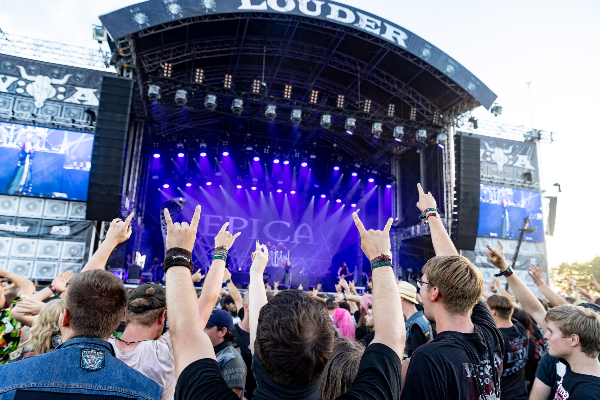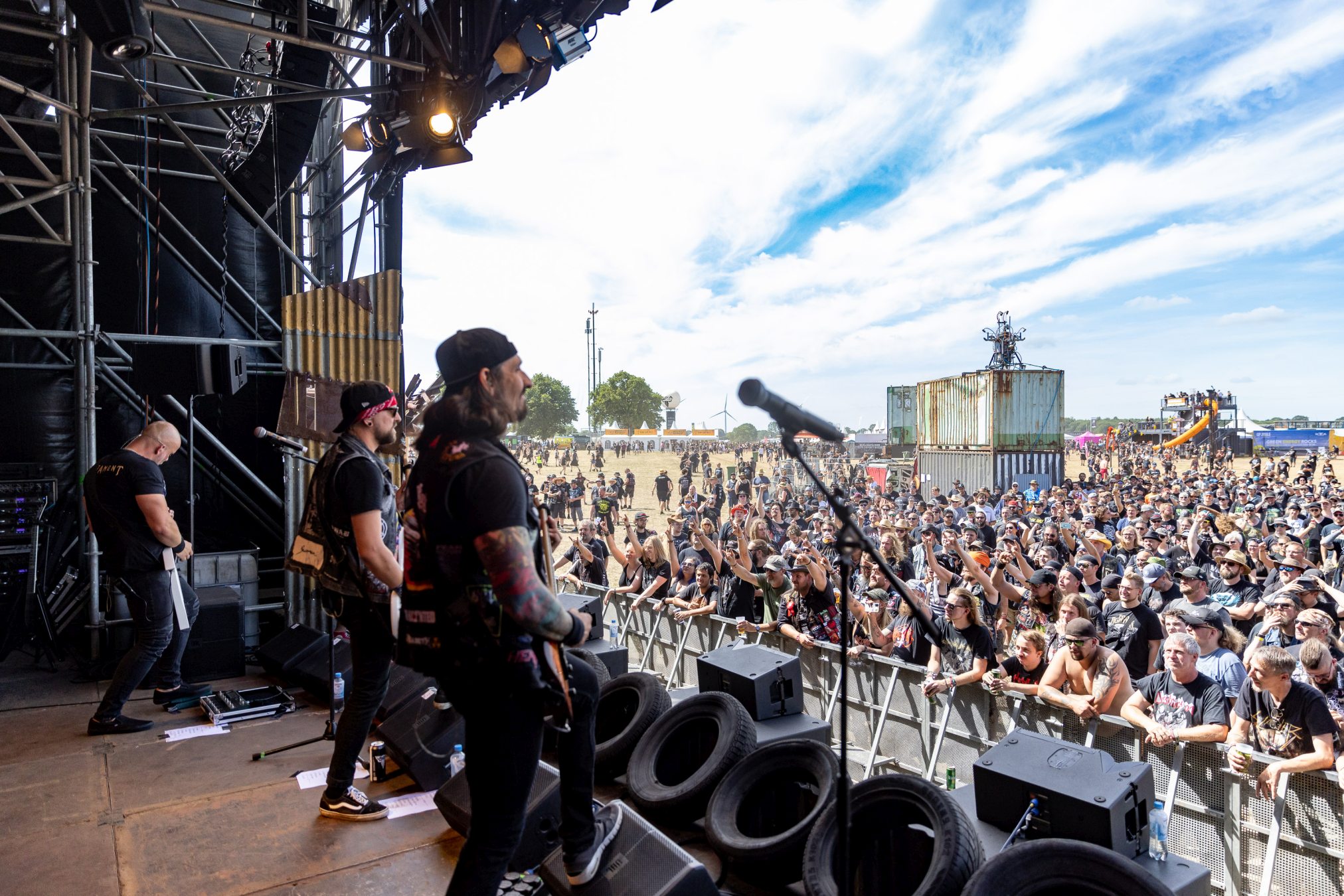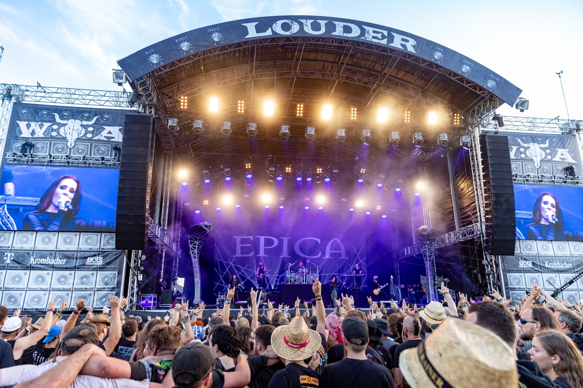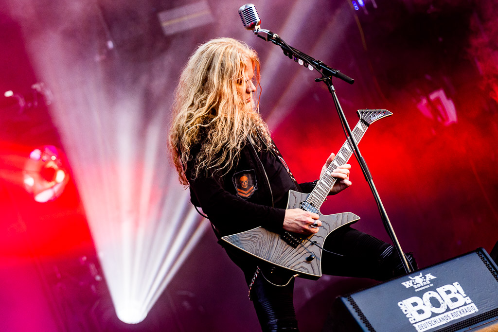 Trotz eines starken Auftritts gelingt es uns nicht vollends, die Energie und den Spaß aufzugreifen, da die Hitze heute erdrückend ist. Schnell wünschen wir uns eine Wasserstelle herbei. Da die nächstgrößere hinter dem Notausgang wartet, der nur als Ausgang passiert werden darf, entscheiden wir uns doch gegen Erfrischung und Zwangsspaziergang. Auf der Suche nach Alternativen an den Getränkeständen fällt auf, dass das neue und eigens für die Louder Stage geschaffene Gelände, überlastet zu sein scheint. Vielleicht ist THUNDERMOTHER für die „kleine“ Bühne doch eine Nummer zu groß oder das Verhältnis von Bühne zu Gelände und Angebot nicht passend. Hier sollte das WOA-Team noch mal genauer hinsehen.