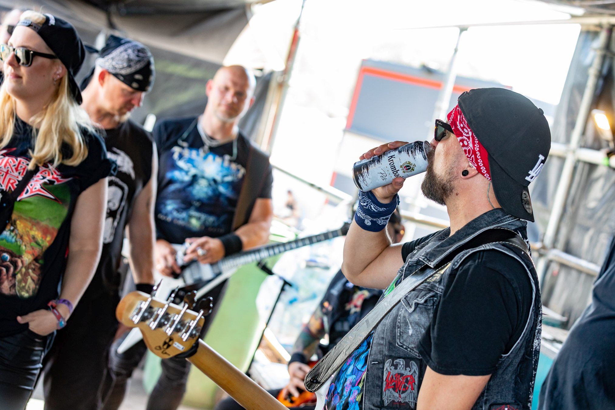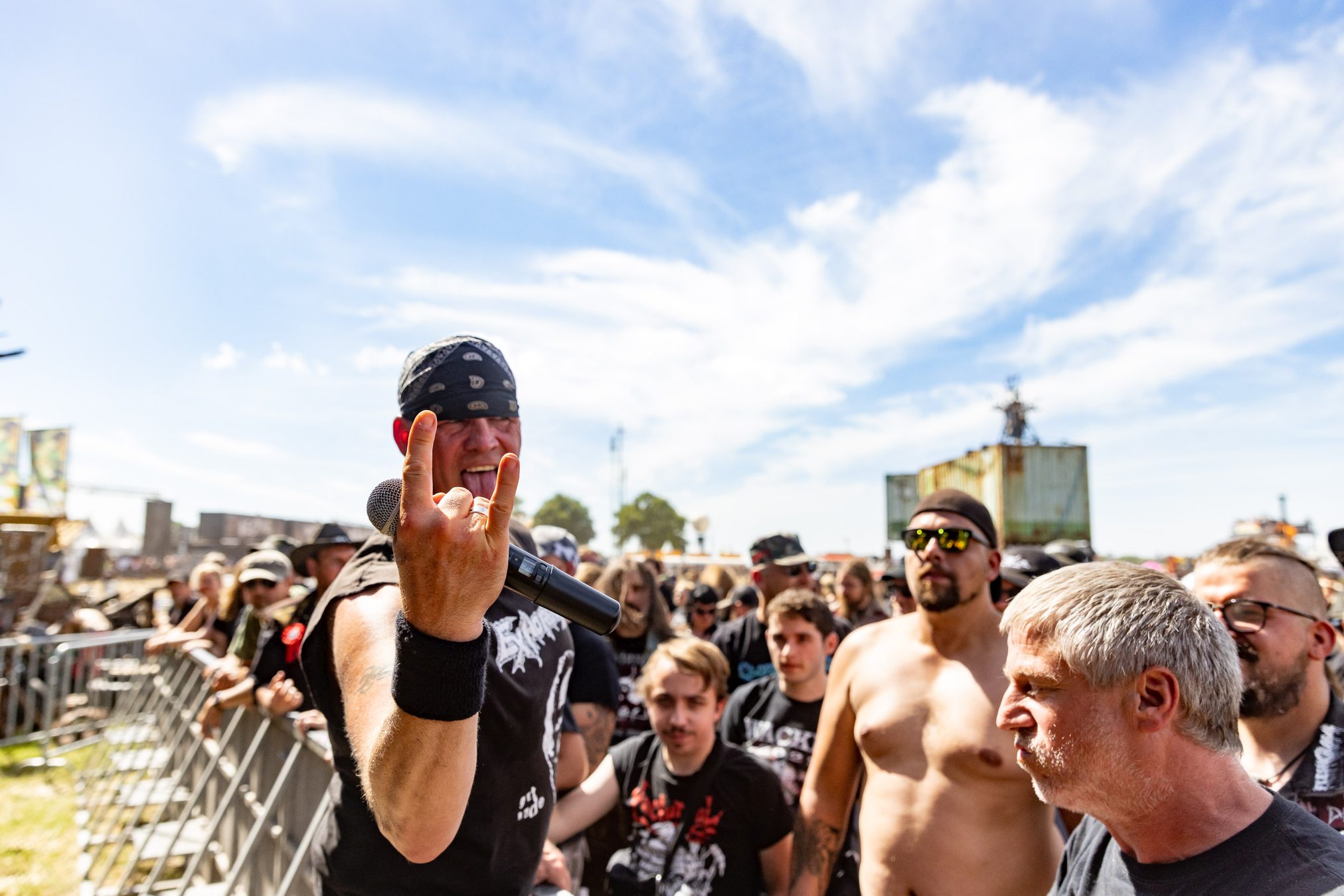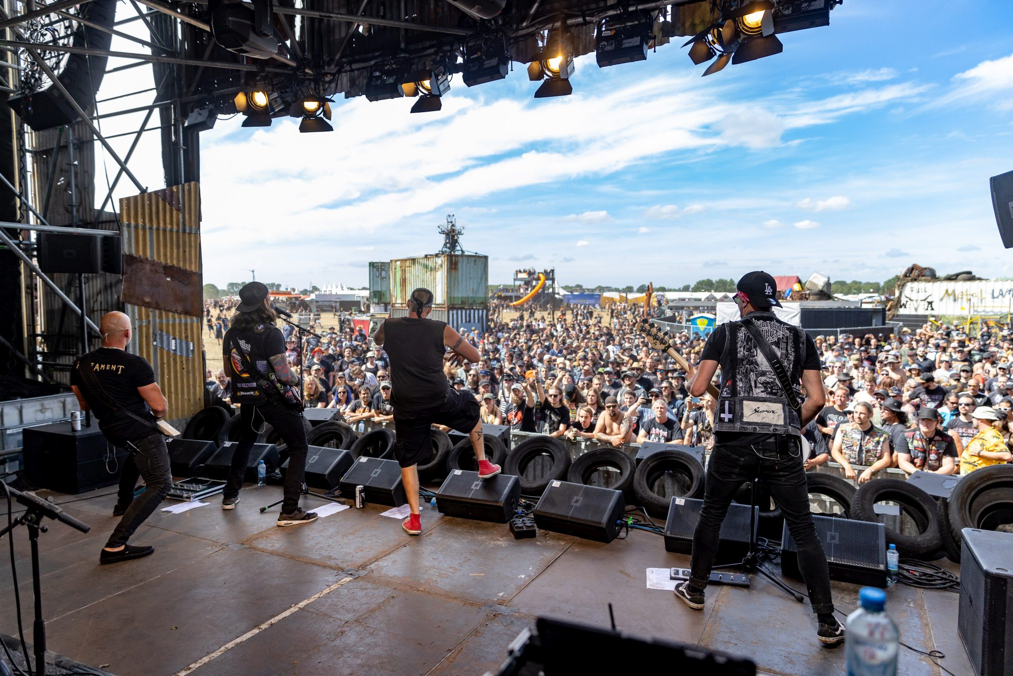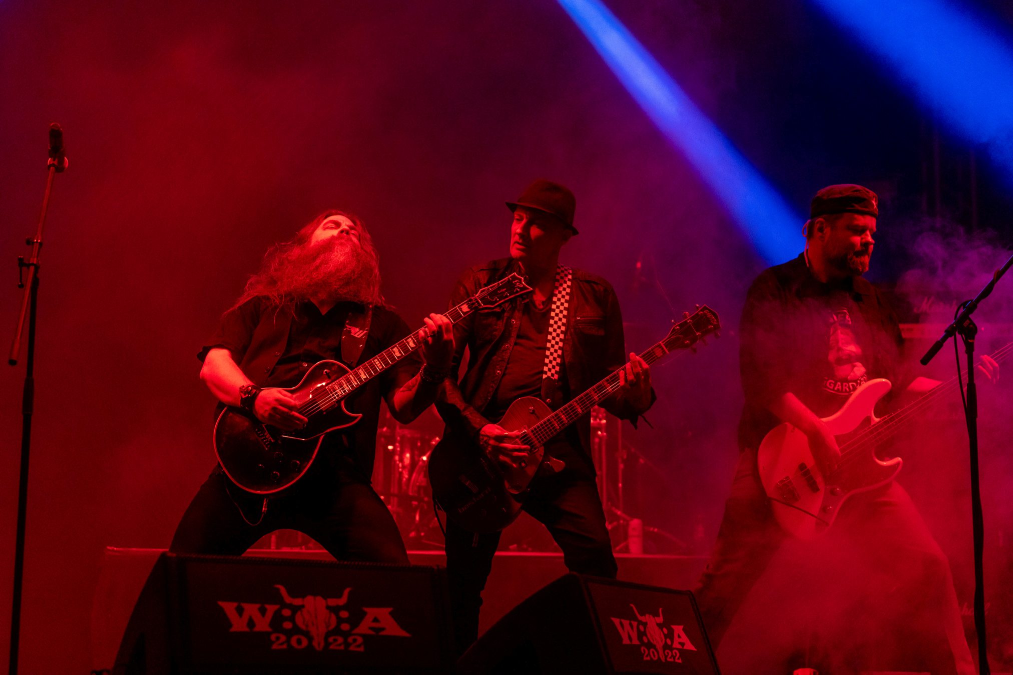 Trotz eines starken Auftritts gelingt es uns nicht vollends, die Energie und den Spaß aufzugreifen, da die Hitze heute erdrückend ist. Schnell wünschen wir uns eine Wasserstelle herbei. Da die nächstgrößere hinter dem Notausgang wartet, der nur als Ausgang passiert werden darf, entscheiden wir uns doch gegen Erfrischung und Zwangsspaziergang. Auf der Suche nach Alternativen an den Getränkeständen fällt auf, dass das neue und eigens für die Louder Stage geschaffene Gelände, überlastet zu sein scheint. Vielleicht ist THUNDERMOTHER für die „kleine“ Bühne doch eine Nummer zu groß oder das Verhältnis von Bühne zu Gelände und Angebot nicht passend. Hier sollte das WOA-Team noch mal genauer hinsehen.