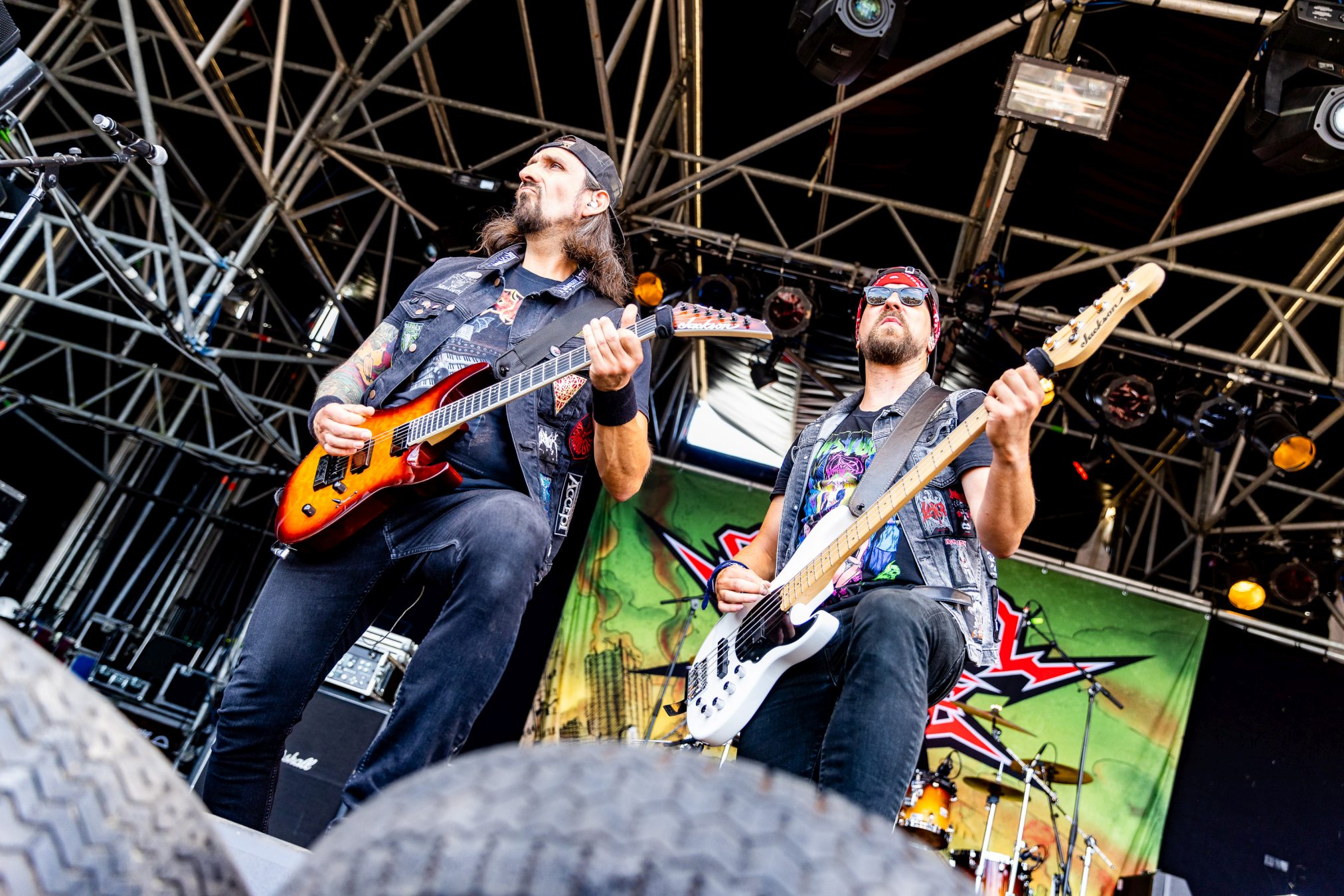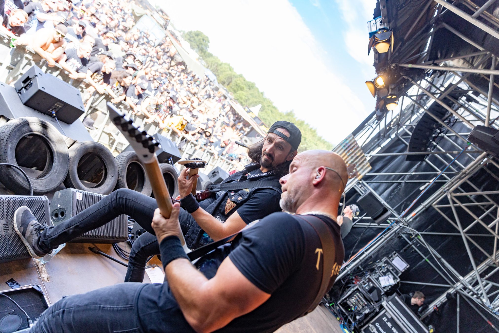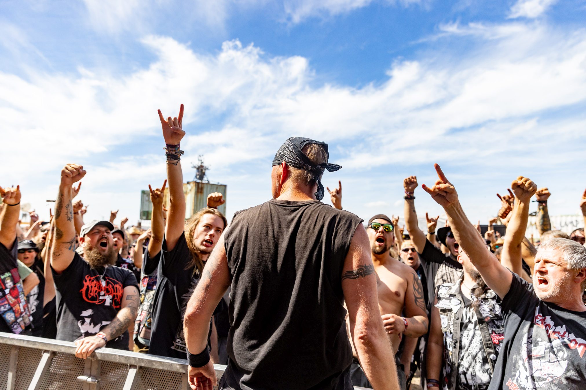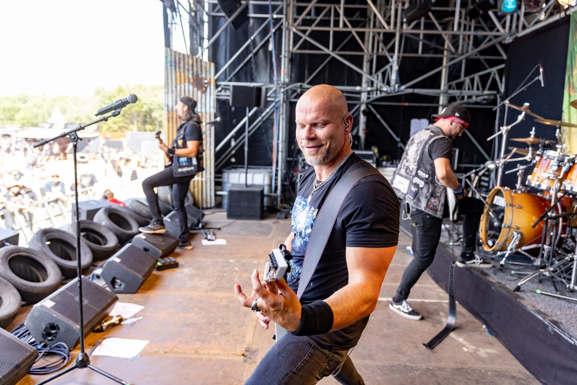 Trotz eines starken Auftritts gelingt es uns nicht vollends, die Energie und den Spaß aufzugreifen, da die Hitze heute erdrückend ist. Schnell wünschen wir uns eine Wasserstelle herbei. Da die nächstgrößere hinter dem Notausgang wartet, der nur als Ausgang passiert werden darf, entscheiden wir uns doch gegen Erfrischung und Zwangsspaziergang. Auf der Suche nach Alternativen an den Getränkeständen fällt auf, dass das neue und eigens für die Louder Stage geschaffene Gelände, überlastet zu sein scheint. Vielleicht ist THUNDERMOTHER für die „kleine“ Bühne doch eine Nummer zu groß oder das Verhältnis von Bühne zu Gelände und Angebot nicht passend. Hier sollte das WOA-Team noch mal genauer hinsehen.