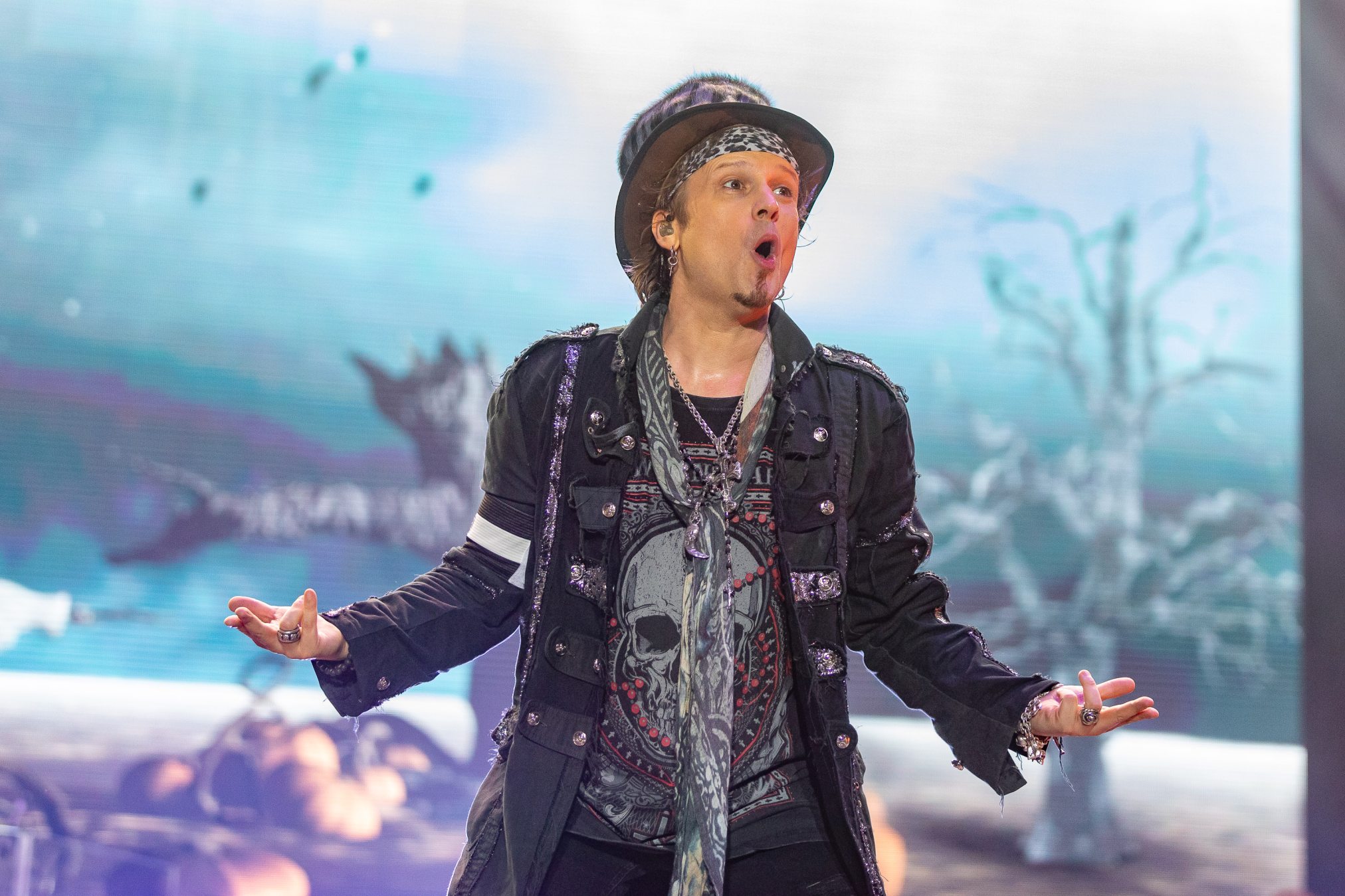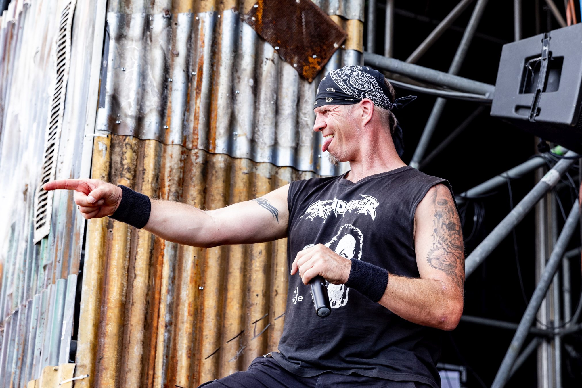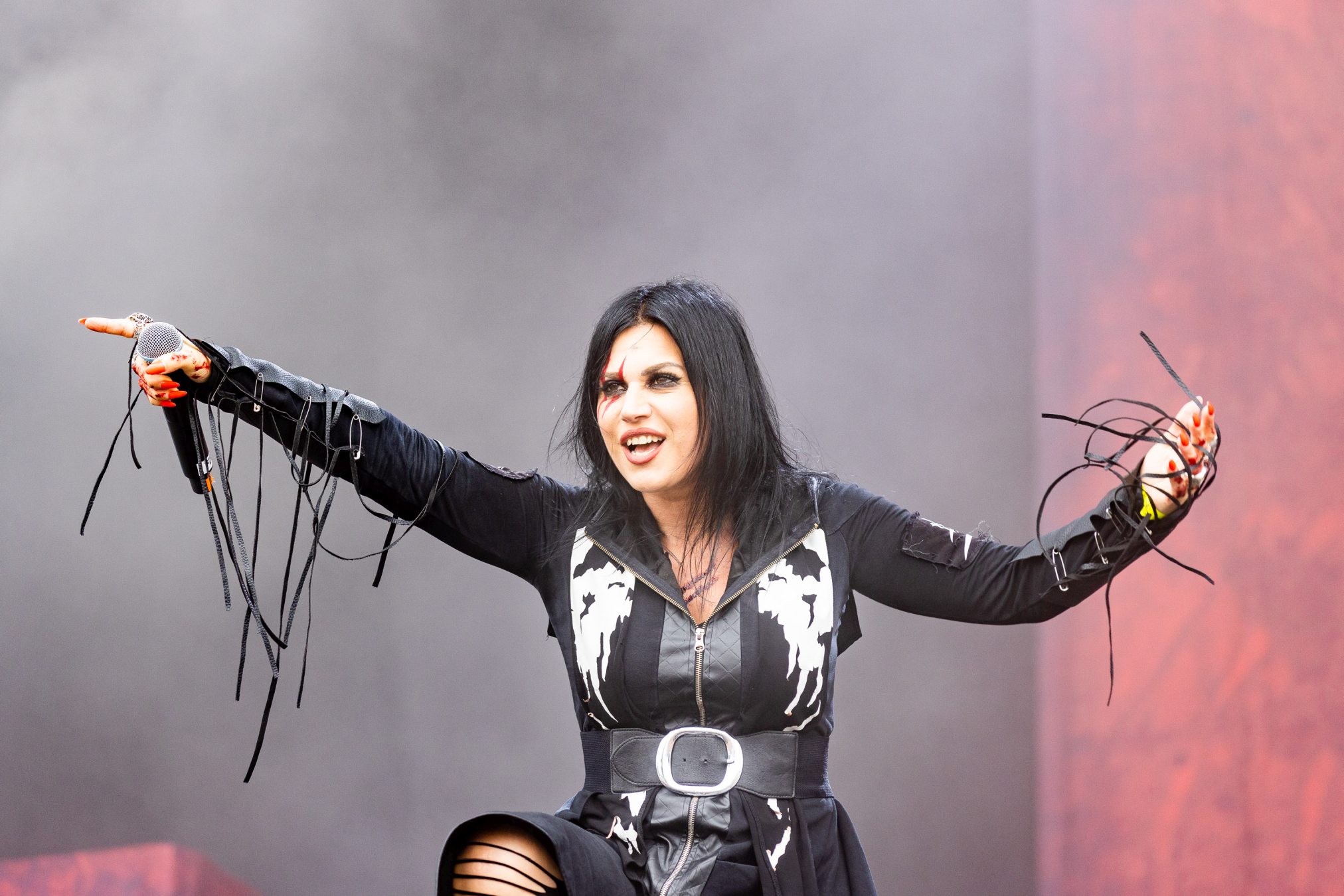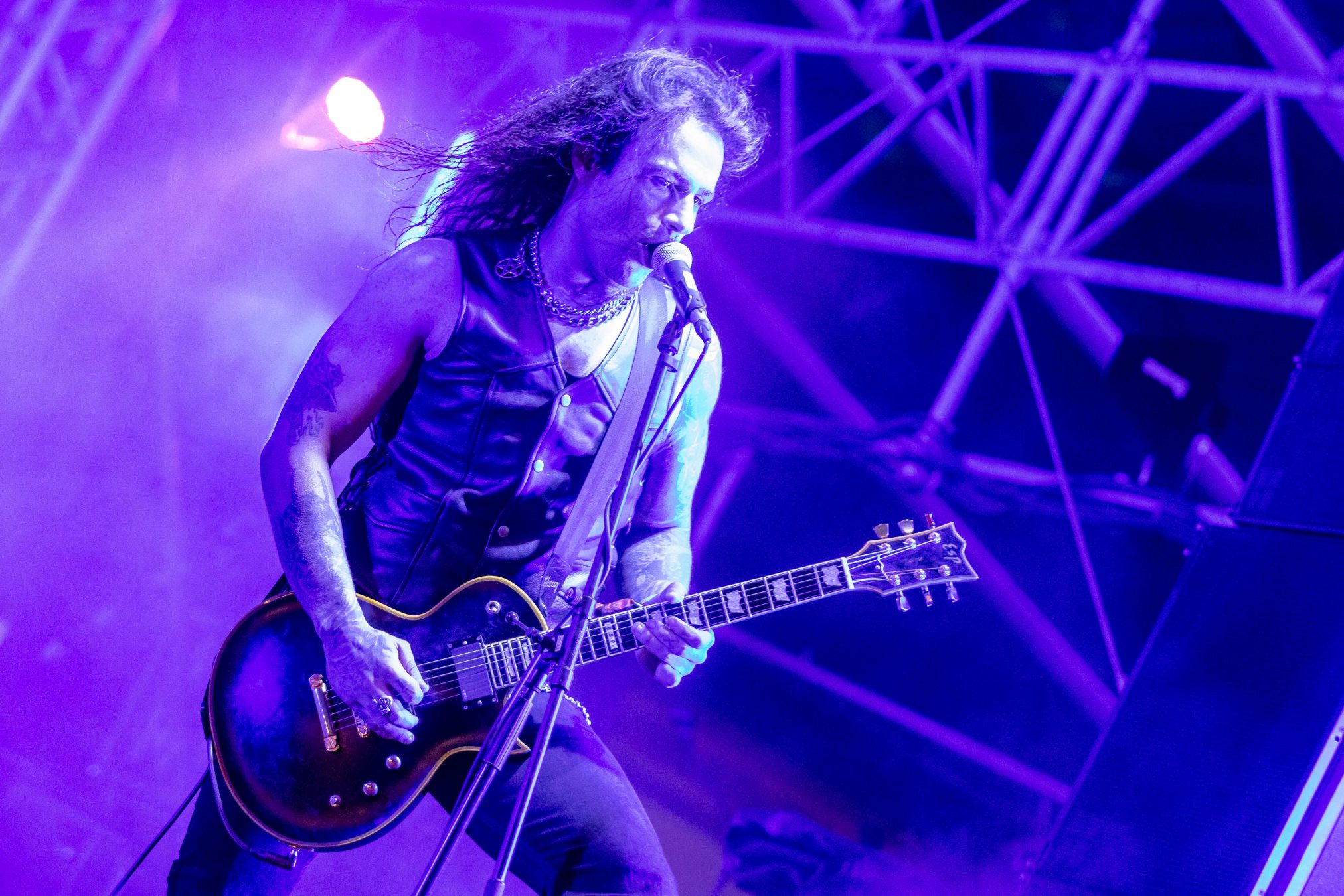Bühne frei für das musikalische Urgestein MICHAEL MONROE. Dieser steht die nächsten 75 Minuten für Rockparty und kann voll mit seiner Mixtur aus Glam-, Punk- und Bluesrock überzeugen. Der finnische Sänger ist glamourös und beherrscht die Bühne in seinem zarten Alter von nunmehr fast 60 Jahren mühelos. Neben seiner überzeugenden Stimme springt er vom Lautsprecherturm, bringt mehrere Spagate ein, um musikalisch dann wie nebenläufig mit Mundharmonika und Saxophon zu überzeugen. Selten haben wir einen so schillernden Frontmann gesehen und kann nun verstehen, wie Projekte mit Guns‘N‘Roses entstanden sind. Auf der persönlichen Ebene bleibt ihm zu wünschen, dass die Transgender-Bewegung dazu beigetragen hat, dass er als Mann mit einem Faible fürs Schminken, weniger Abneigung erfährt.
