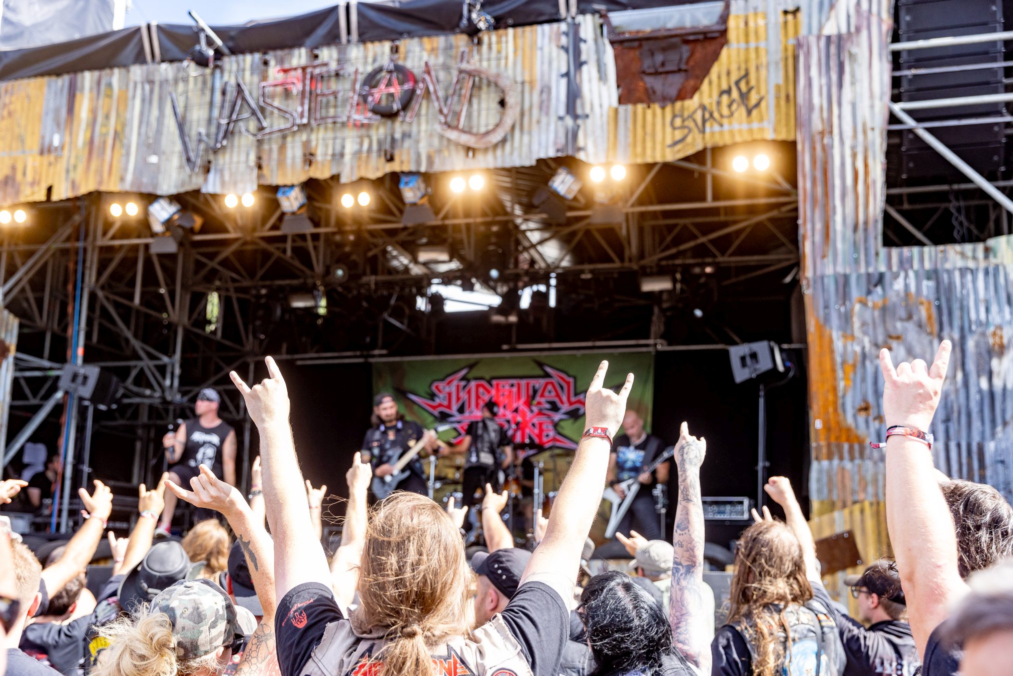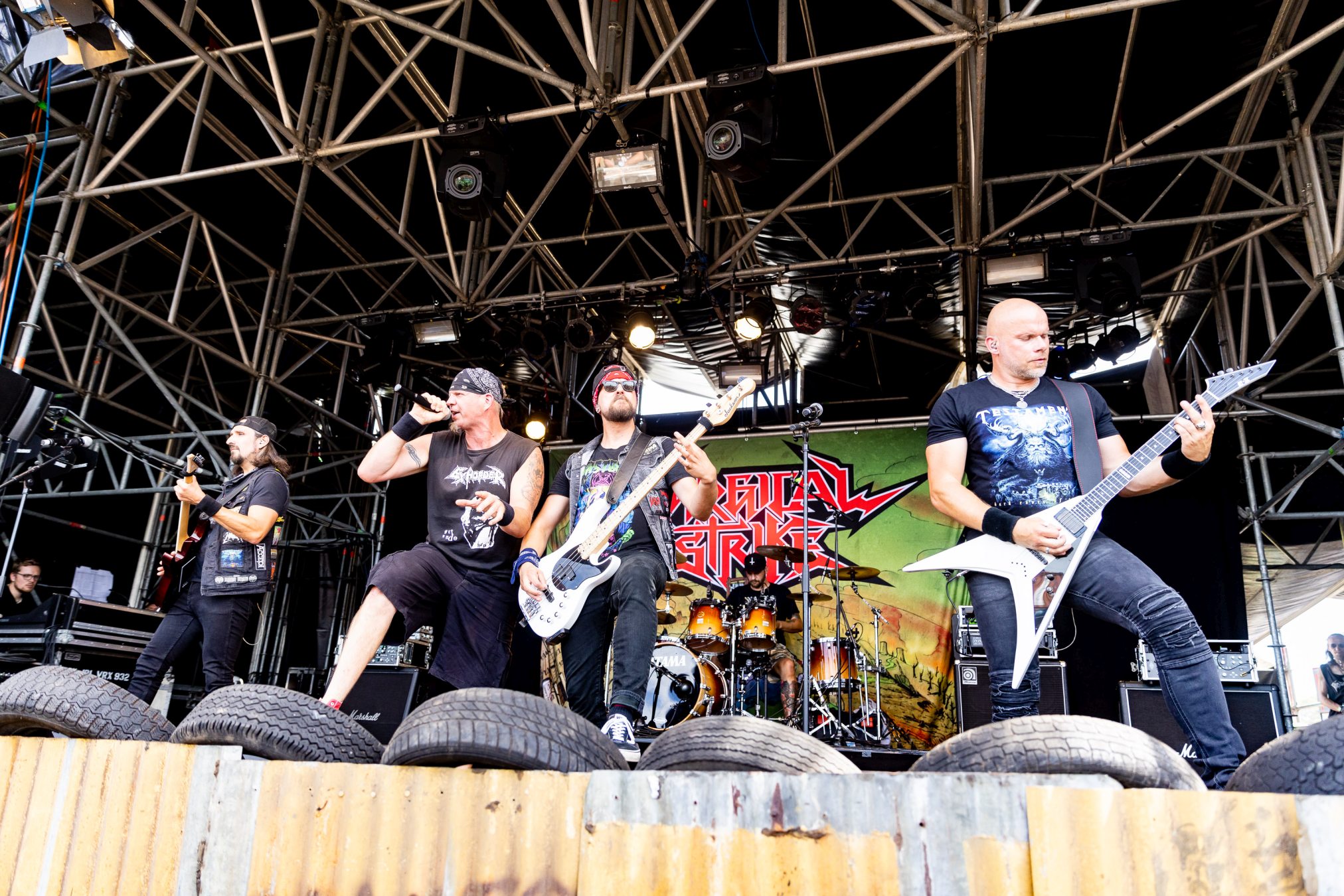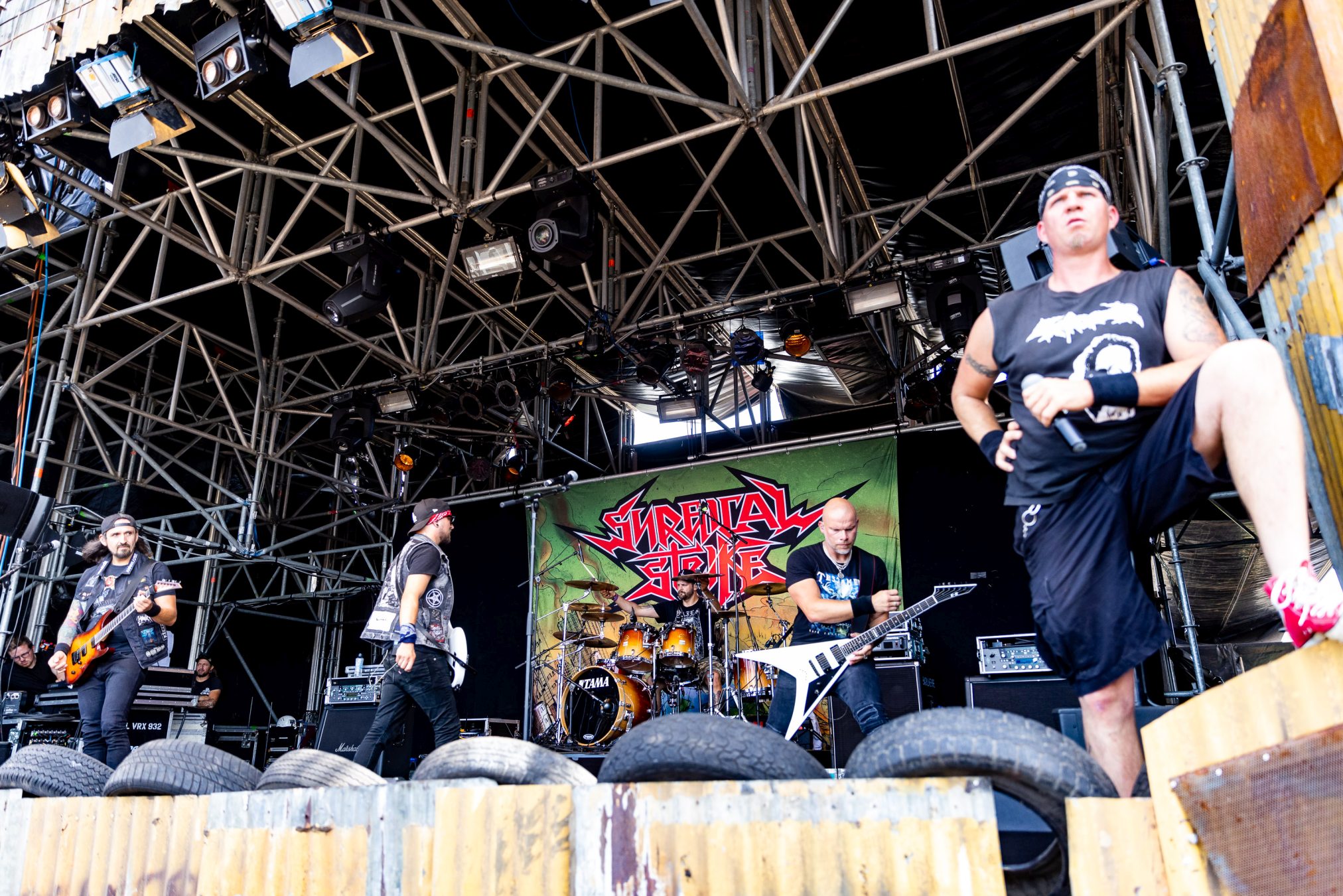 Auf der Wasteland Stage luden SURGICAL STRIKE zum Mittags-Thrash ein. Zu Beginn der Show wollten die Fans noch nicht so richtig den Weg in Richtung Bühne finden, was sich aber zum Glück bald änderte. Wäre auch schade gewesen, da die Band eine super Performance ablieferte und es Sänger Stöpsel wie ein Großer verstand, die Menge zu begeistern.