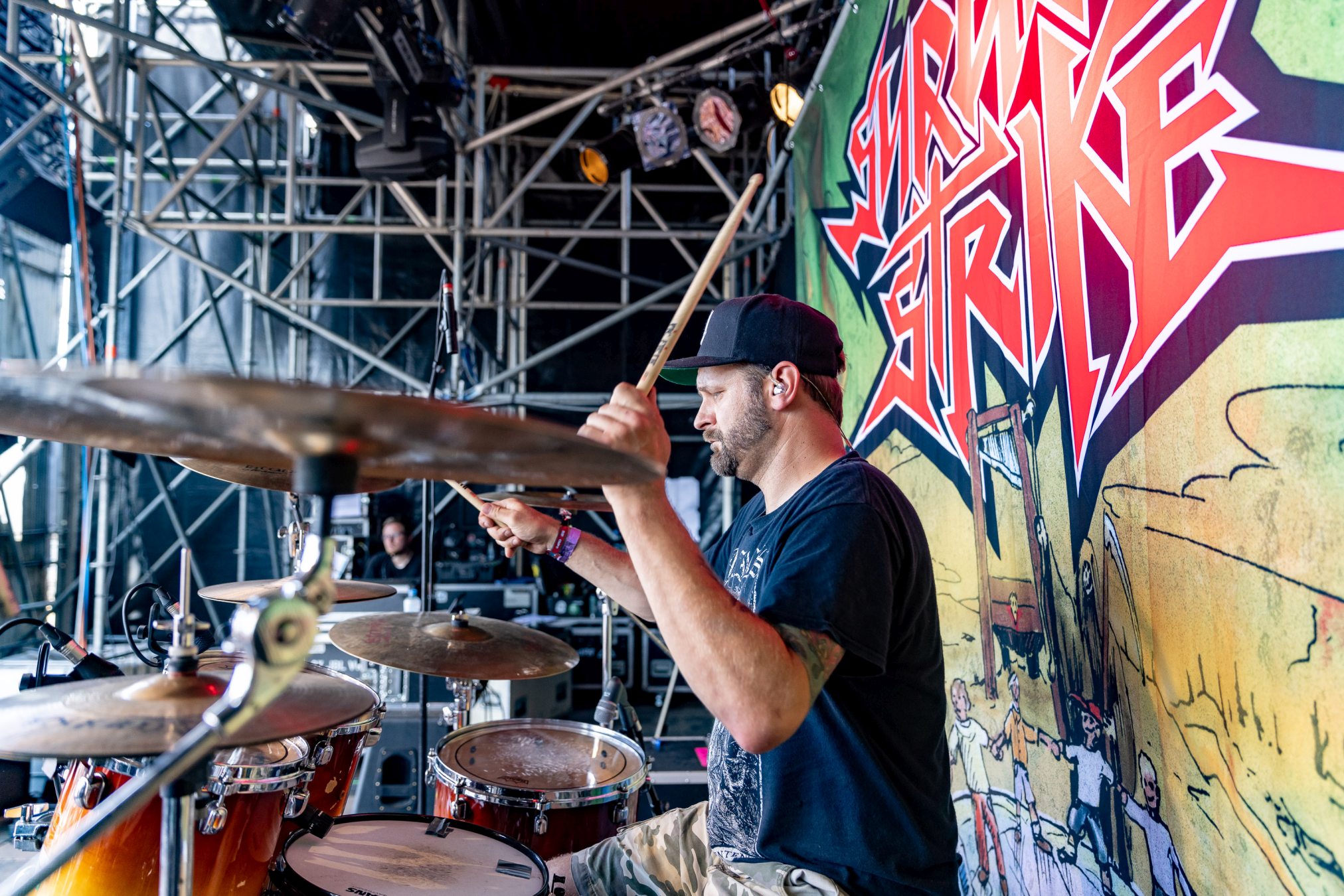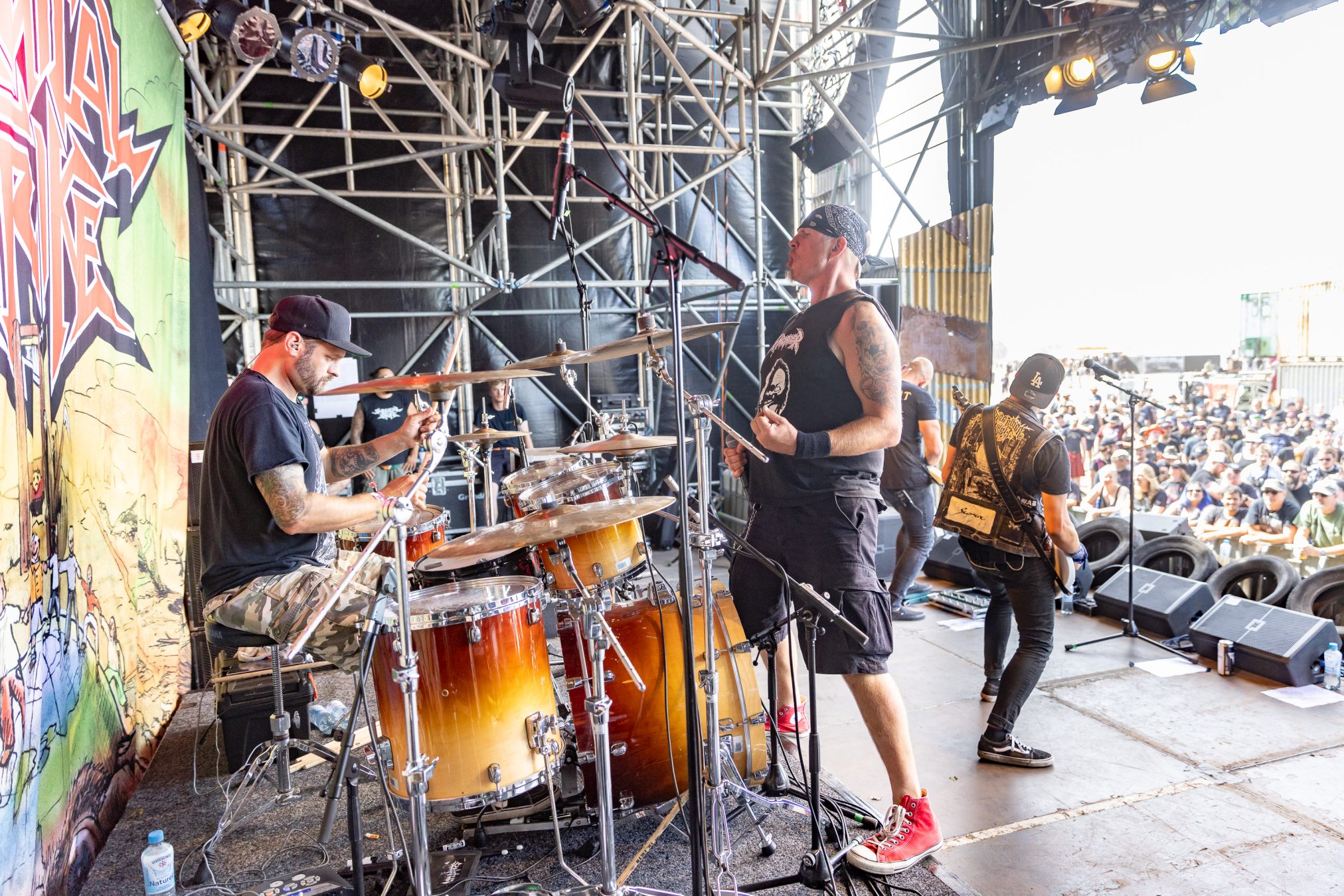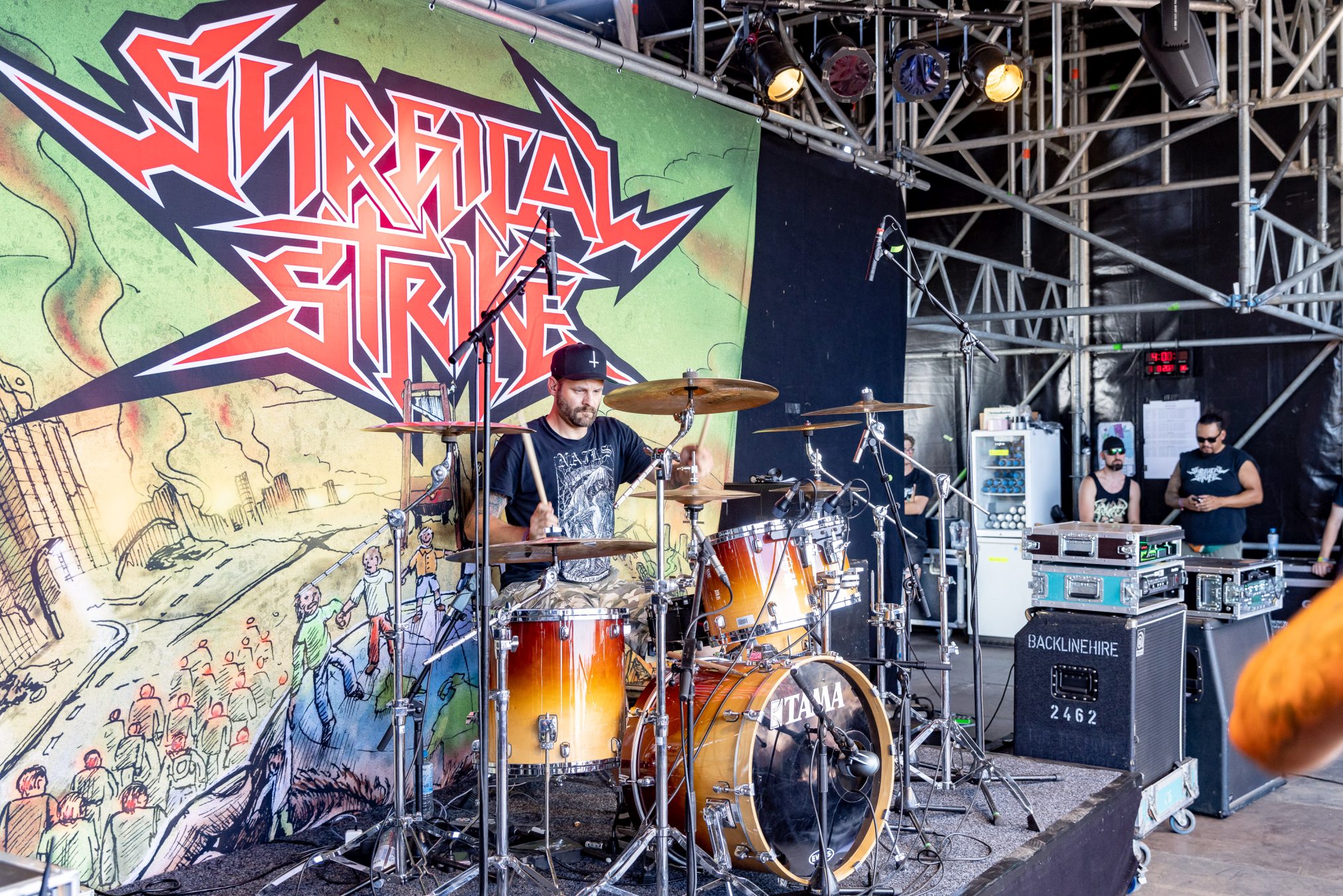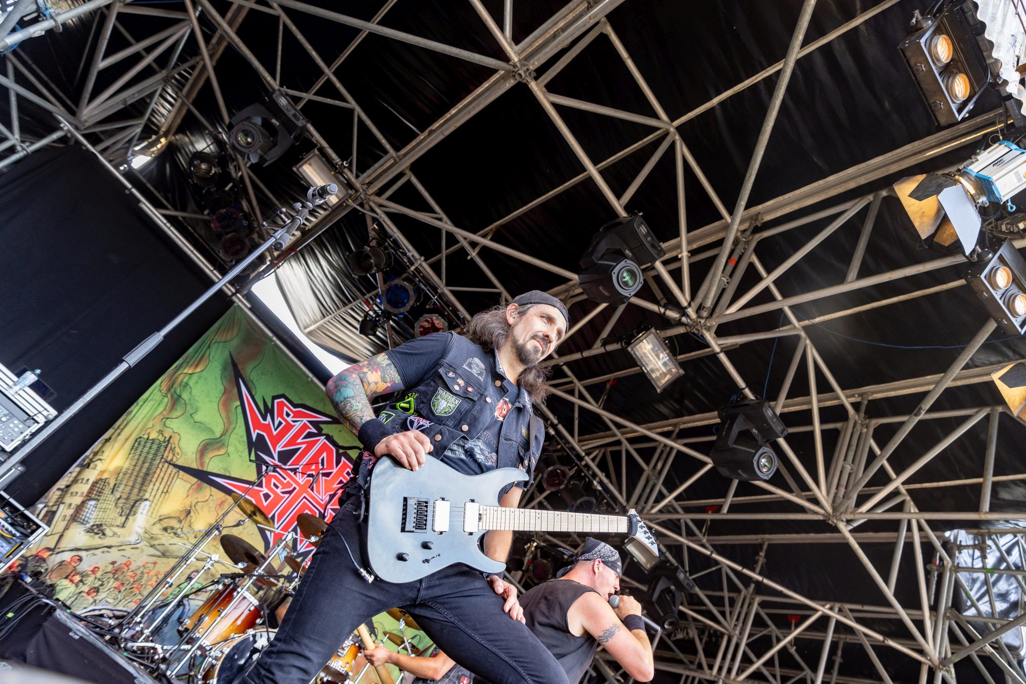 Auf der Wasteland Stage luden SURGICAL STRIKE zum Mittags-Thrash ein. Zu Beginn der Show wollten die Fans noch nicht so richtig den Weg in Richtung Bühne finden, was sich aber zum Glück bald änderte. Wäre auch schade gewesen, da die Band eine super Performance ablieferte und es Sänger Stöpsel wie ein Großer verstand, die Menge zu begeistern.