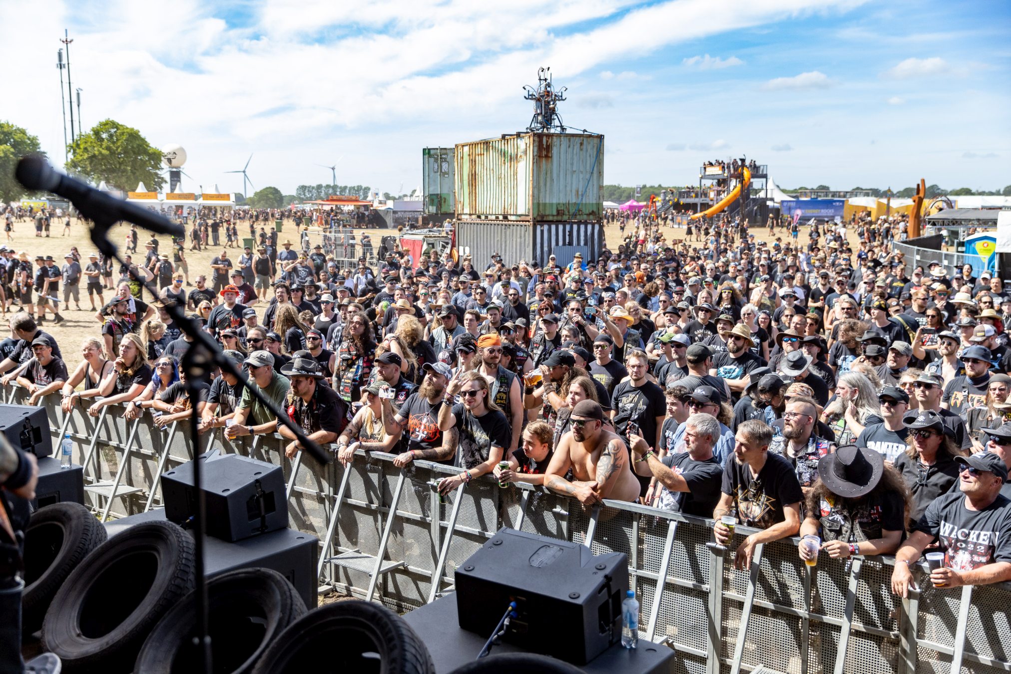 Bei maximal einem Bier resümieren wir mit unseren neu gewonnen Tischfreunden den vergangenen Tag und bekommen unsere Meinung bestätigt, zu wenige Wasserstellen auf dem Infield zu haben. In Anbetracht der Wetterprognose verwundert dieser Rückschritt, da dies bei den WOAs 2018 und 2019 bereits gut gelöst war. Wir mutmaßen nur leise und sind positiv der Annahme, dass die Wasserstellen der Restrukturierung des Geländes zum Opfer gefallen sind. Wie wir die Veranstalter kennengelernt haben, werden diese das Besucherfeedback aufnehmen und auswerten und schon 2023 wieder besser aufgestellt sein. Beim WOA stand bis hierhin immer der Fan im Mittelpunkt.