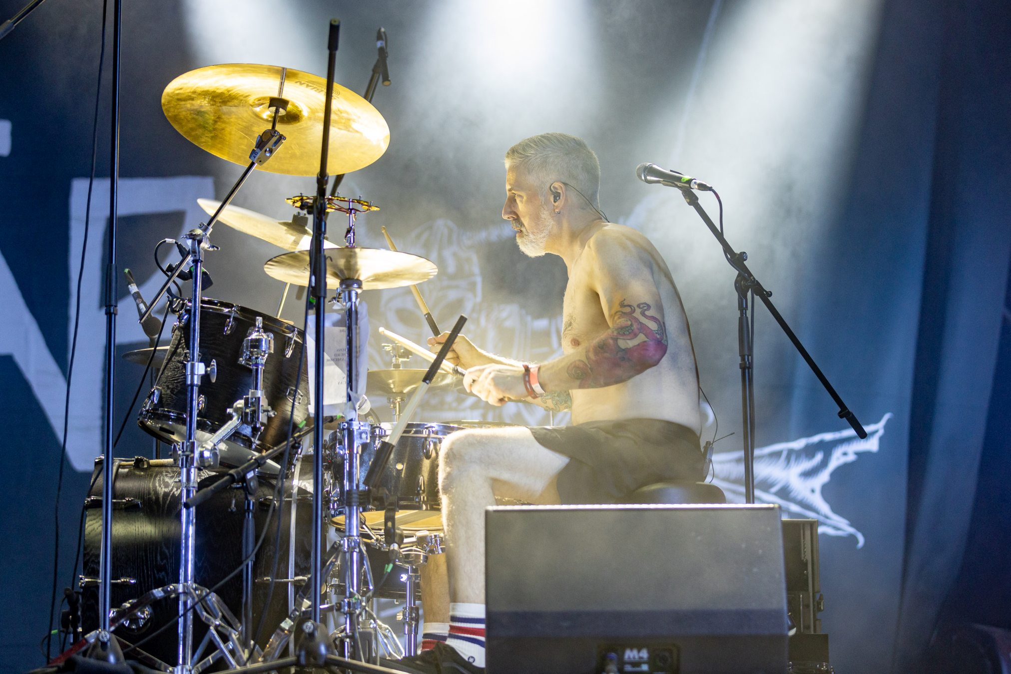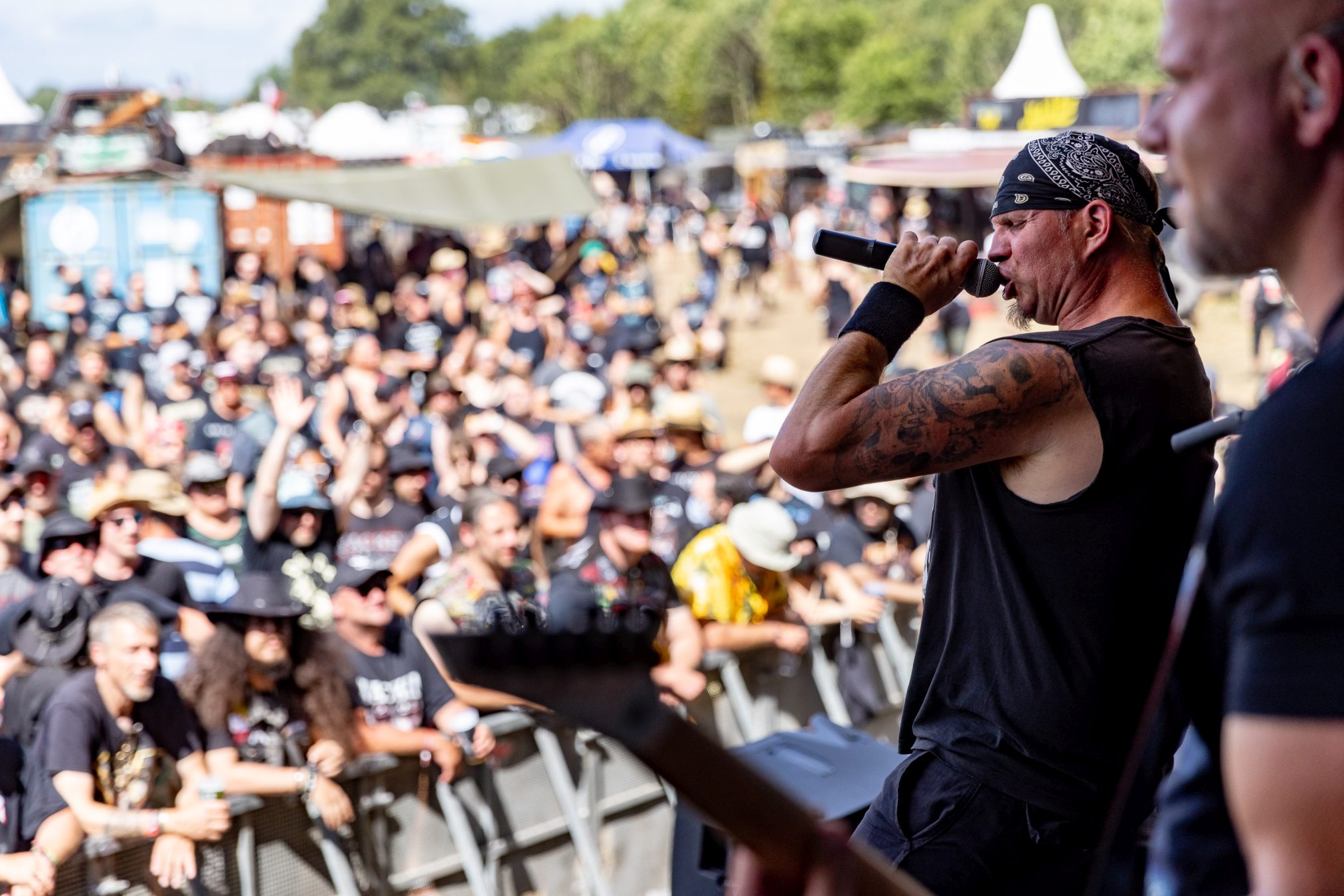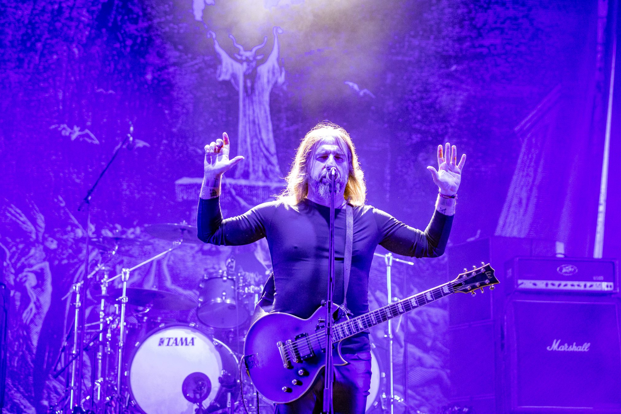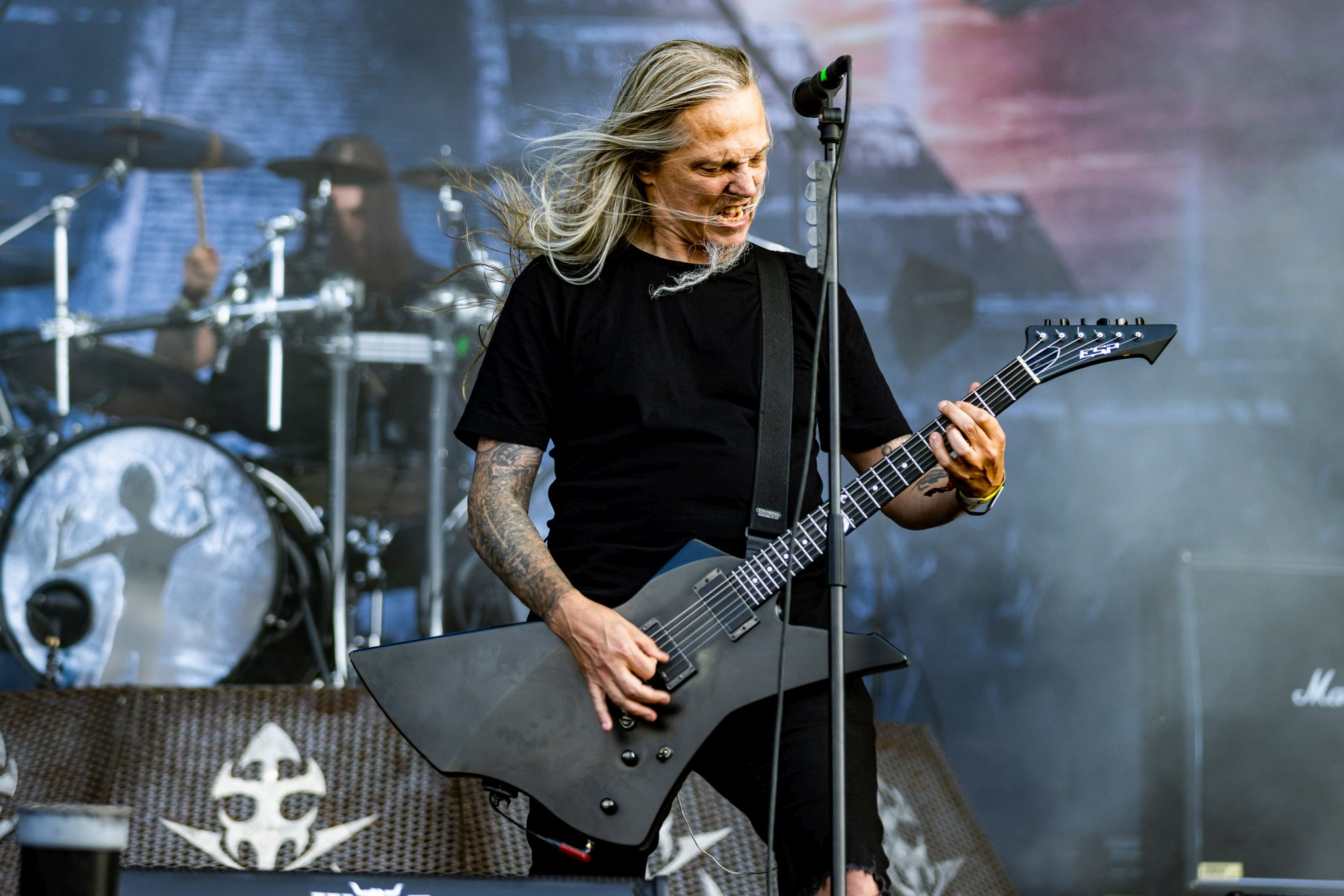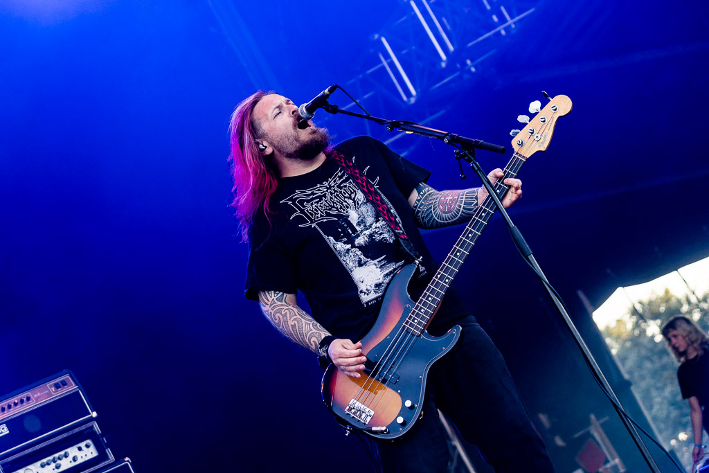 Von der Partymeile ziehen wir weiter ins düstere Tal. Dorthin scheint die Bull Head City durch AUDN mit einem Schlag versetzt worden zu sein. Von der ersten Tönen an, umhüllt uns eine besondere Stimmung und Atmosphäre, die es sogar schaffen die Hitze und den Sonnenschein vergessen zu lassen. AUDN selbst bezeichnen Ihren Stil als atmosphärisch Black Metal. Einen Einschlag in den Doom Bereich können sie jedoch auch nicht leugnen. So nimmt uns diese junge Band in eine Welt voller Trauer, Wut, Hass und Tränen mit. Erst mit dem Verklingen der letzten Töne, nach gewaltigen 45 Minuten, finden wir wieder ins Diesseits zurück. Ein WOA Höhepunkt 2023! Wer Alcest liebt, wird den Isländern vermutlich auch einiges abgewinnen können, wenn diese auch rauher und düsterer klingen.