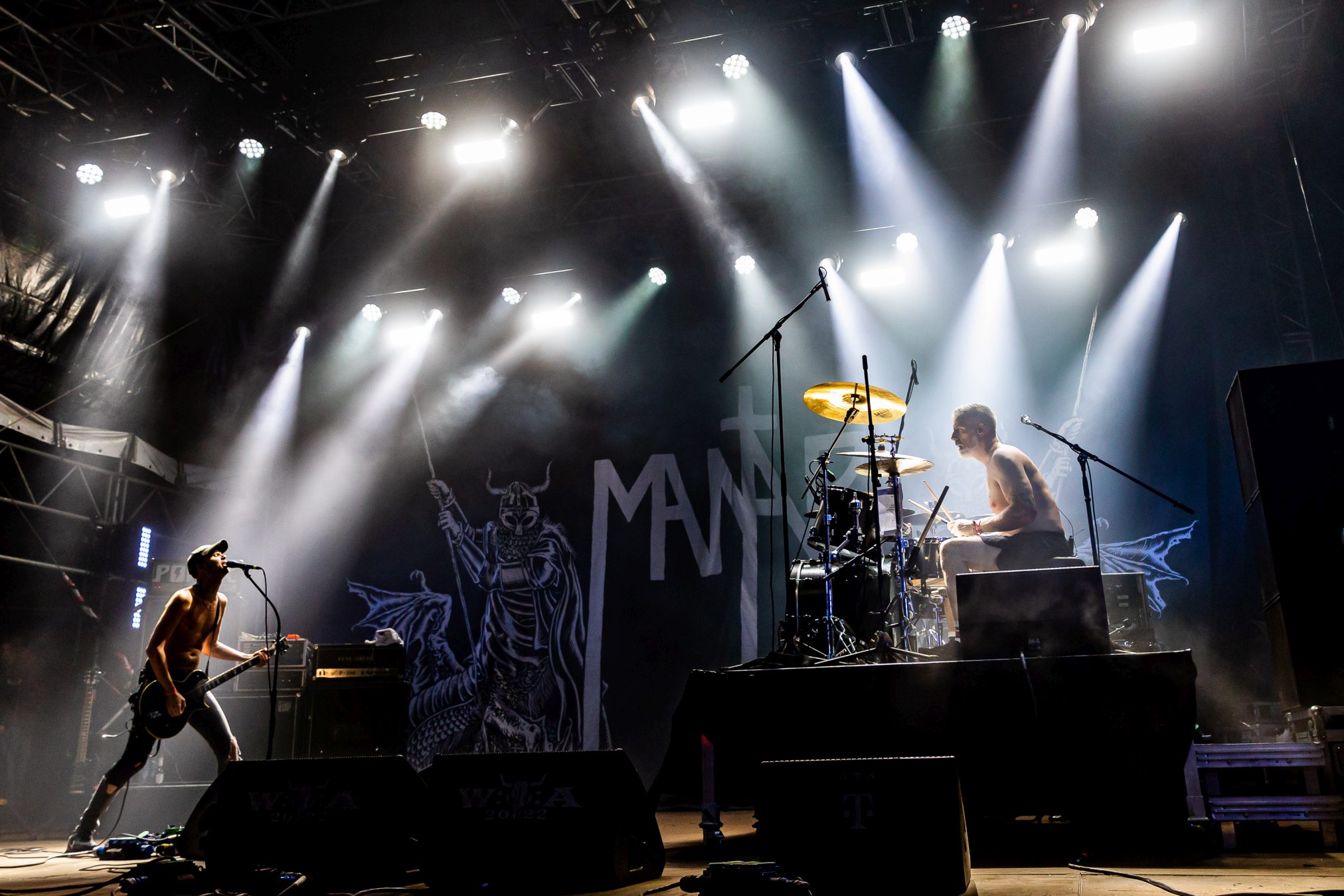 Nun noch schnell mit Twilight-Cheffe Hübner zu MANTAR an die W.E.T.-Stage. Wir hatten das Duo aus Bremen länger nicht Live sehen können und waren daher höchst erfreut, das am heutigen Abend nachholen zu können. Mit ihrer unverkennbaren Position (Auf der Bühne gegenüberstehend) und nur mit Gitarre und Drums, konnten die beiden wieder einmal die Fanschaar mit ihrem rotzigen Back Metal Doom Punk begeistern.