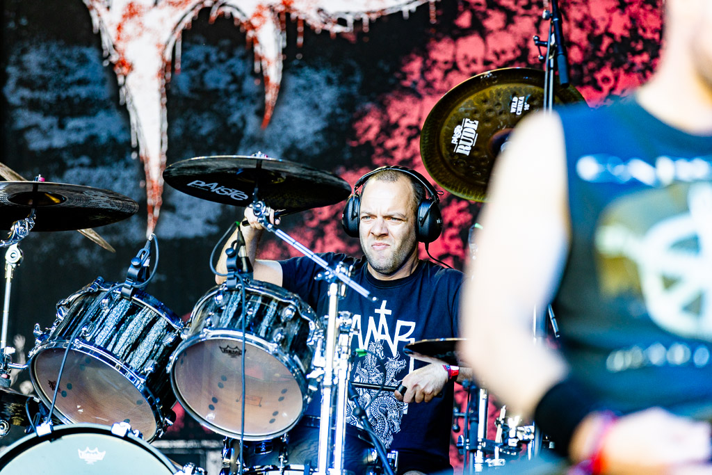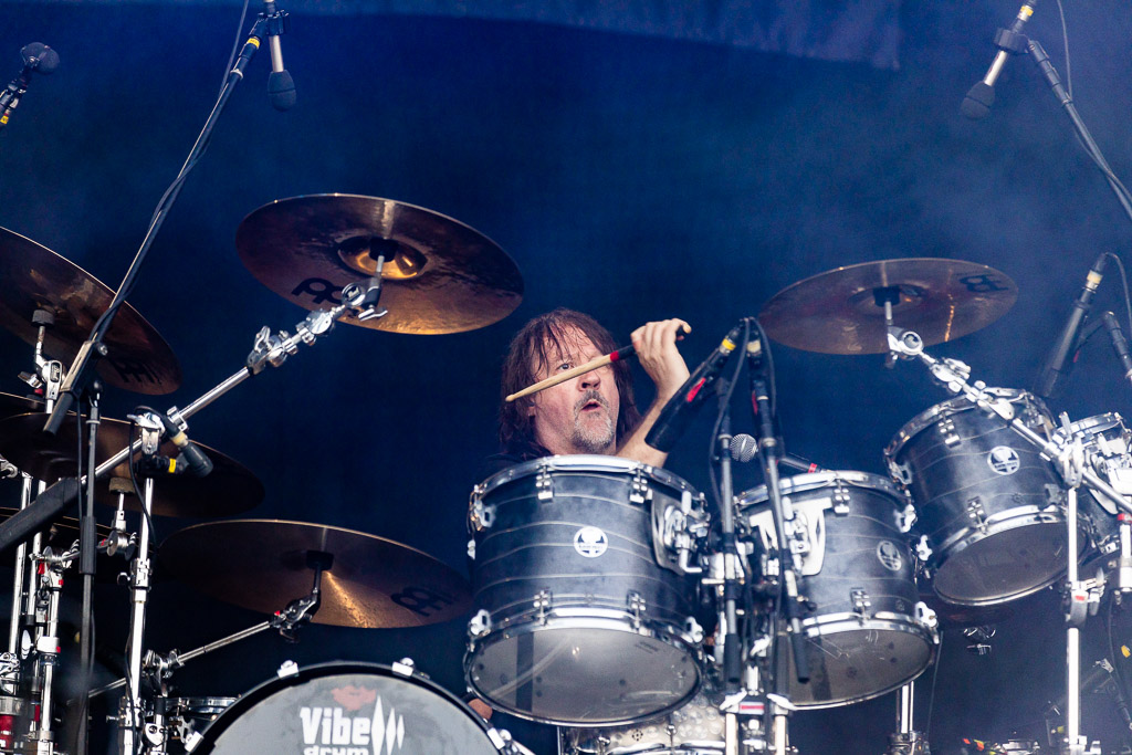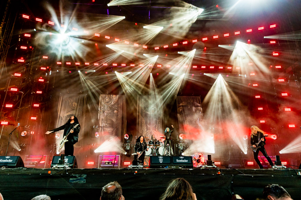 Highlights des Abends bilden der Klassiker „Evil“ und das tragende „Come To The Sabbath“. Frontmann King Diamond verwundert immer wieder mit der Leichtigkeit, wie er der Kopfstimme durch den Wechsel zur Bruststimme Volumen verleiht. Ein würdiger Headliner-Support an diesem inzwischen mit Blick auf die Temperaturen angenehm gewordenen Donnerstag Abend.
