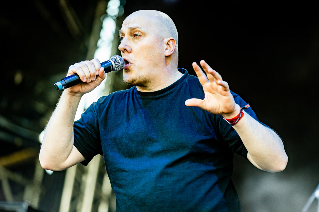 Danko Jones zu zu beschreiben, ohne ihn erlebt zu haben, ist nicht leicht. Danko ist die Bühne, die Bühne ist Danko. Der Frontmann, dessen Namen die Band übernommen hat, wirkt wie ein hochintelligentes, total durchgeknalltes Duracell-Häschen. Er zelebriert jeden Auftritt von Anfang bis Ende, wobei er es meisterlich versteht seinen permanenten Sexismus so charmant zu verpacken, dass dieser auf Gegenliebe beim Publikum stößt. Musikalisch steht das Trio für einfachen, direkten, ins Ohr gehenden Rock. Denkt man in Genren, findet man noch Anleihen an Punk Rock und Hard Rock. Jeder Auftritt ist bei Danko auch eine Party. So geht es auch heute mit „I Gotta Rock“ und „First Date“ sehr flott los. „You are my Women“, “Had Enough“ und „I Want Out“ runden die Party ab bevor Danko das Konzert mit dem Song der Kultnummer „My Little RnR“ beschließt.