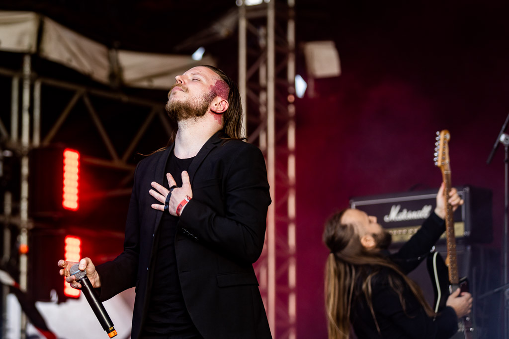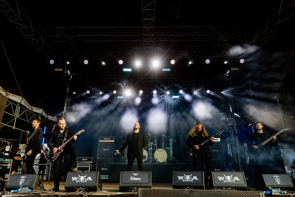 Weiter geht es mit Gloryhammer… oder eben auch nicht. Diese kommen gerade noch rechtzeitig für vier Songs auf die Bühne. Man könnte meinen, die Schweizer arbeiten mit Hochdruck an einer gemeinsamen WOA-Historie. Nachdem sie bereits 2019 wegen Unwetter nicht spielen konnten, verpasste die Kombo dieses Mal den Flieger, stand stundenlang im Stau, um ohne Anlauf direkt auf der Bühne performen zu müssen. Erstaunlicherweise gelingt ihnen das problemlos, jeder der vier verbliebenen Songs wird zelebriert und der Kurzauftritt zu einem wahren Fest.