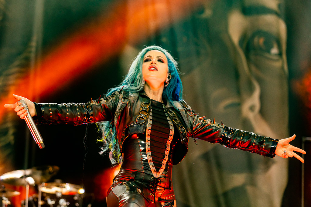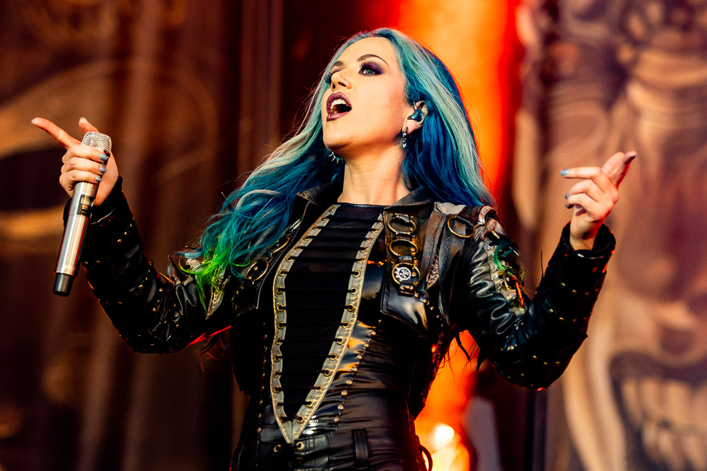 Unser Headliner des Abends, ARCH ENEMY, bedürfte vermutlich keiner einleitenden Worte mehr. Seit über 25 Jahren begeistern die Schweden mit melodiöser Härte. Besonders hervorzuheben sind ihre harmonischen Gitarrensoli und natürlich der Umstand, mit HOLY MOSES zusammen eine der ersten Death Metal Bands mit einer Frau am Mikrofon gewesen zu sein. Angela Gossow hat sich als erste Sängerin der Band hier schon Denkmal gesetzt. Dennoch gab ihr Rückzug in die Rolle der Managerin der Band aus familiären Gründen der Band noch mal einen Schub, da Alissa White-Gluzz noch mal einen neuen Glanz in die Band bringen konnte. Sie ist noch präsenter, noch abwechslungsreicher und stärker am Mikrofon. Von ungefähr kommt das natürlich nicht, da Gossow die damals junge Sängerin mit ausgebildet hat. Mit ihr haben Arch Enemy den letzten Schritt zum Festival-Headliner gemacht und begeistern seither nicht mehr bloß eingefleischte Todesmetaller.