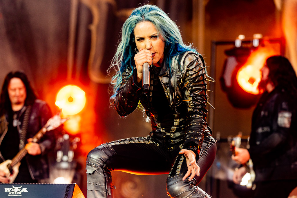 Gerade erst angefangen, ist das WOA 2022 für uns auch schon wieder vorbei. Mit INFECTED RAIN steht unser letzter Act auf der Bühne, der es noch einmal ordentlich krachen lässt. War soeben noch das Headbangen Programm, so hält uns bei INFECTED RAIN nichts mehr. Elena Cataraga steht der Frontfau von ARCH ENEMY in nichts nach und pushed uns eine Stunde lang über den Holy Ground. Vor sich selbst macht das Energiepaket auch keinen halt und fegt wie ein Derwisch über die Bühne, ohne kraftlose Growls, Screams oder cleane Vocals zu offenbaren. Letztere denken wir zuerst als Schwäche ausgemacht zu haben, bis wir verstehen, dass die Sängerin ihre moldawischen Wurzeln stilistisch mit eingebunden hat. Bei „Goodbye“ und „Orphan Soul“ beweist sie eindrucksvoll, dass sie keine gesanglichen Schwächen zu besitzen scheint. Mit der Mischung aus Nu Metal und Melodic Death Metal treibt das Quintett die Fans eine Stunde lang von einem Circle Pit, zum Moshpit und wieder zurück. Bei der Wall of Death merkt man dann doch, dass hier gerade erst eine neue Beziehung entsteht, da eine Ballade nicht die glücklichste Wahl ist und die Todeswand einfach nicht so richtig Ihren Anfang finden will. Das unterstreicht noch mal die Qualität der Band, den Holy Ground mit Neufans dermaßen in Bewegung zu bringen. Wer sich nun motiviert fühlt, in die Band reinzuhören, dem sei gesagt: Geht hin und erlebt sie. Die Alben sind leider sehr clean produziert. Die Kraft dieser Band kommt nur im Ansatz beim Hörer an.