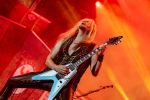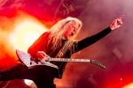 Die Mischung ist heute sehr geprägt vom neuen Kapitel der Band, da viele Songs des aktuellen Releases „Deceivers“ in den Gig mit einfließen. Mitunter gibt es „Deceiver, Deceiver“, „Handshake With Hell“ oder die Live Premieren von „In The Eye Of The Storm“ und „The Watcher“ auf die Zwölf, die allesamt der Zeit Gussows entstammen. Wie dem auch sei, ARCH ENEMY sind Power und Melodie. Dem Konzert ist nur eine Grenze gesetzt, nämlich die Belastbarkeit unserer Nackenmuskeln. Wir sind verwundert, wie viele bei diesem Programm ruhig bleiben können, stören uns aber nicht daran, da wir ja gerade erst festgestellt hatten, dass ARCH ENEMY nun auch die breite Masse trifft. Abschließend wollen wir noch anerkennend festhalten, dass es mit Songs wie „Nemesis“ auch noch solche gibt, die Angela besser zu Gesicht standen und die Band ohne sie diese Entwicklung vermutlich nie durchlaufen hätte.