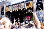 IN EXTREMO übernehmen dann auch das Zepter und die Verantwortung von HYPROCRISY und leiten einen großen Wacken Abend ein. Wie das letzte Einhorn, Frontmann Michael Robert Rhein, mit einem Augenzwinkern feststellt, kann sich die Truppe nach 25 Jahren es auch leisten, mit „Vollmond“ ihren größten Hit früherer Tage auch mal am Anfang des Sets zu spielen. Mit „Unsichtbar“ und dem gesellschaftskritischen „Quid Pro Quo“ geht es auch dann mit Volldampf in die Gegenwart, um mit „Rasend Herz“ und „Sängerkrieg“ gleich wieder in der Zeit zurückzuspringen. Die Band genießt es spürbar wieder auf der Bühne stehen zu dürfen und reißt alle mit diesem Elan und der natürlich großartigen Stimme des letzten Einhorns mühelos mit. Nach KISSIN‘ DYNAMITE qualitativ der zweite - wenn auch inoffizielle - Headliner des Tages, ermöglicht durch den inzwischen wieder hervorragenden Sound der Faster Stage.