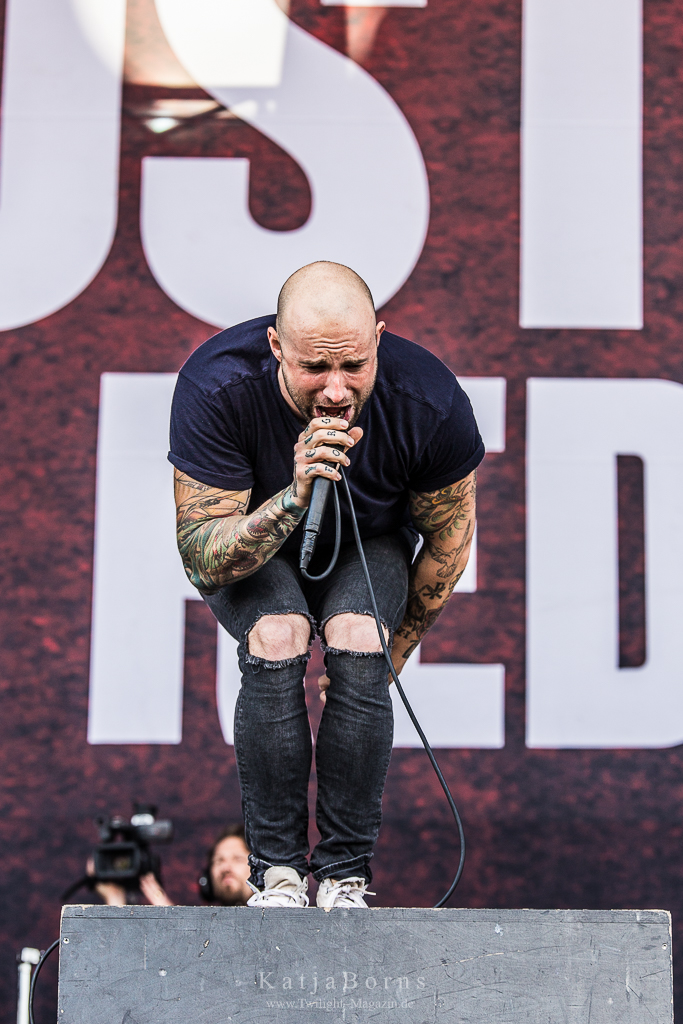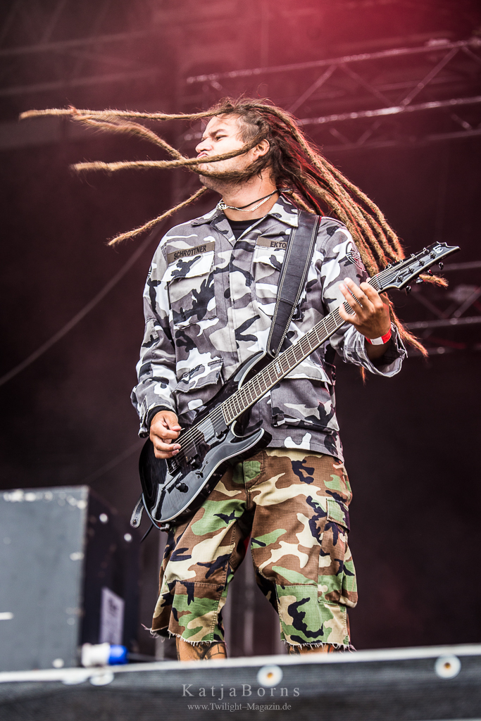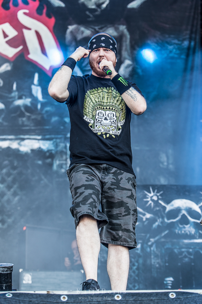 Der Samstag begann zunächst mit einer Sturmwarnung und nach den bisherigen Desastern bei Rock am Ring sowie beim Hurricane und beim Southside Festival gab es schon einige böse Vorahnungen. Trotz der vielen Agnostiker scheint der Wettergott aber Heavy Metal eben doch zu lieben und so blieb es bei einigen Schauern und einer recht steifen Brise am Nachmittag. Kein einziger Auftritt musste abgesagt werden. Zum späten Nachmittag gab es dann bestes Festivalwetter bei etwas über 20°C und so konnte Zoltan mit seiner Band EKTOMORF in Bestform über die Bühne hüpfen während die Menge trockenen Fußes im Pit kreiselte. Anschließend feierte BEHEMOTH mit uns eine satanische Messe und spätestens jetzt hätte der massive Einsatz der Flammenwerfer wohl jede aufkommende Regenwolke sofort verdunsten lassen. Noch etwas benebelt vom Weihrauch blieb keine Zeit sich Sorgen um das eigene Seelenheil zu machen, schon brüllte Jamey Jasta uns zurück ins das hier und jetzt. HATEBREED trafen wie das Geschoss aus einer Pumpgun den Nerv des Publikums.