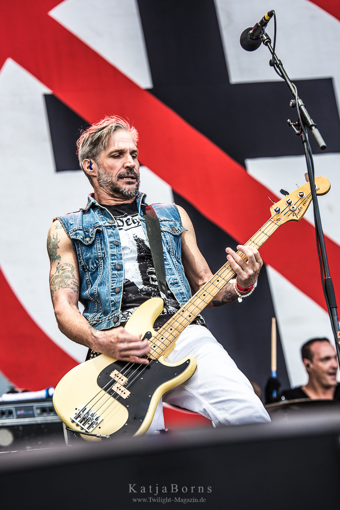 knallten. Eine Riff Supermacht hämmert ihre Grooves in die Nacht, wie man es sonst vielleicht von Pantera kannte, um im nächsten Moment schon wieder stimmgewaltig und sehr melodisch das Publikum zum Zücken der Feuerzeuge zu bewegen. Eröffnet wurde mit „Lift me up“, was auch hätte das Motto des Auftritts sein können. Sichtlich verzückt von Resonanz und Textsicherheit der Massen folgten weitere Hits aus allen 6 Alben inklusive meiner persönlichen Highlights „Jekyll and Hyde“, „Burn M.F.“ und dem Coversong „Bad Company“. Auf eine große Bühnenshow oder spektakuläre Effekt wurde nahezu verzichtet - so stand alleine die Musik im Vordergrund, was auch absolut ausreichte.