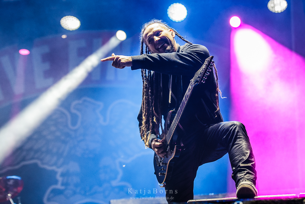 Nach schnellem Wechsel der völlig durchnässten Klamotten und mittlerweile auch trocken von oben ging die Amerikareise in Florida weiter: TRIVIUM überzeugten mit gewohnt gutem Sound und perfekter Show. „Drei Wege“ irgendwo zwischen Metal, Metalcore und Trash begeisterten die Massen bevor zum Abschluss der munteren Amerikareise FIVE FINGER DEATH PUNCH ihrem Namen alle Ehre machten und ihren brachialen Modern Metal einem Kung Fu Schlag gleich vor die Brust der begeisterten Anhänger