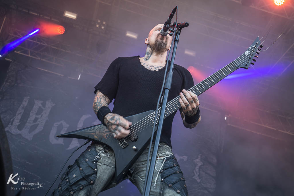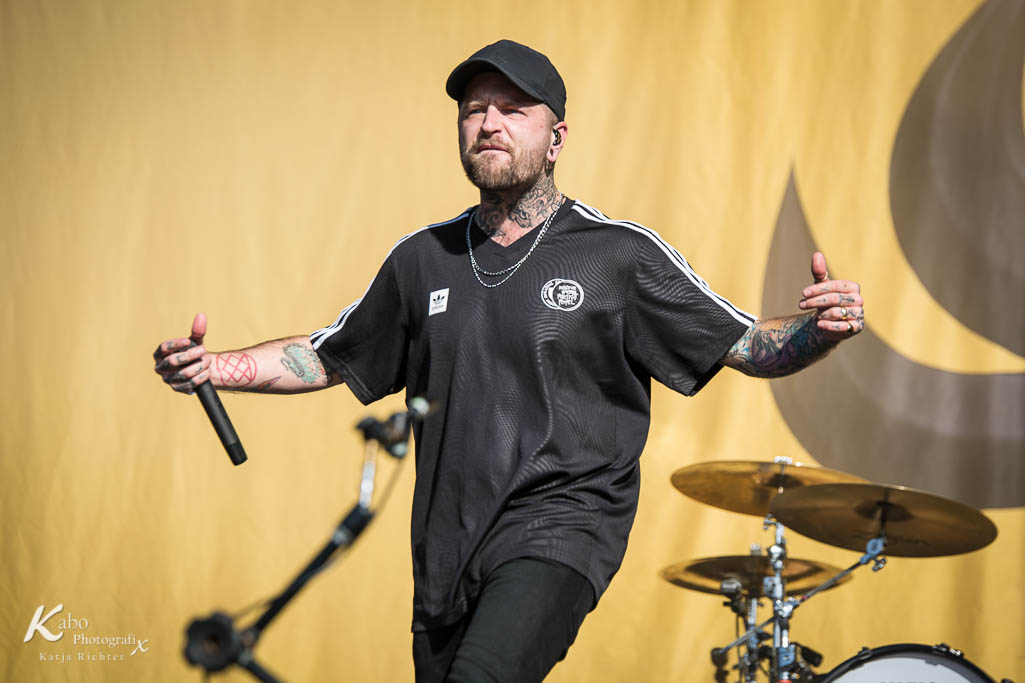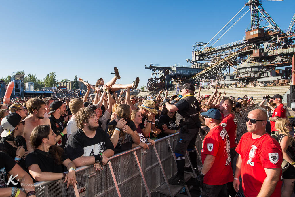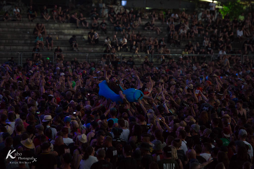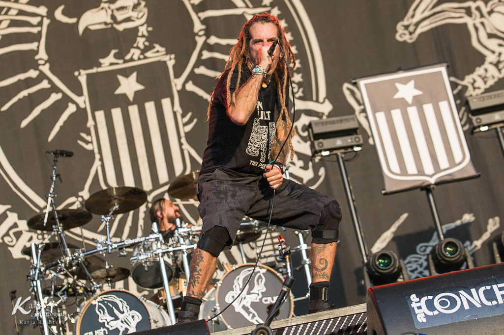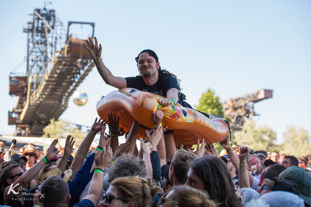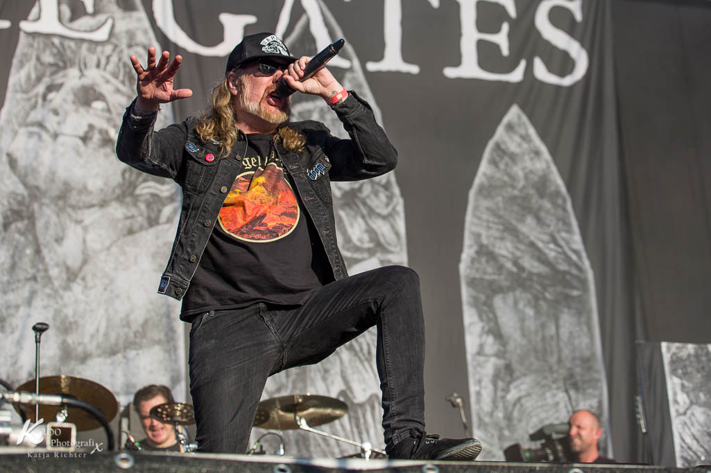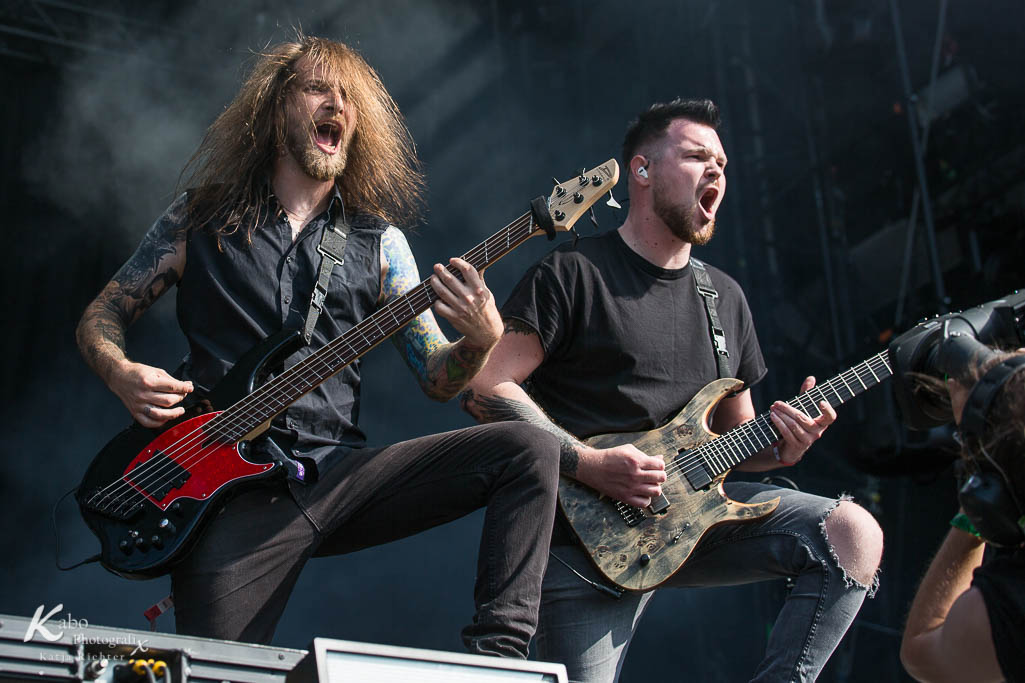 Samstag – Geweckt von der großen hellen Scheibe, die viel zu früh und viel zu stark am Himmel stand, musste der Kreislauf nun erstmal langsam hochfahren und sich an das Wochenende gewöhnen – man sind wir alt geworden! Für CROWBAR haben wir uns dann doch irgendwann zum Festivalgelände geschleppt und mit Kirk in der Hitze gelitten. Die Hauptbühne ist für die Truppe aus Louisiana definitiv angemessen, nur leider fand sich das Publikum hier nur spärlich zusammen. Dennoch gelang es den Amis spielend leicht, die anwesenden, vor Hitze brütenden Gehirne, in ein sludgiges Doom-Parallel-Universum zu kicken. Zu den schweren Riffs und Rhythmen will schließlich mitgebangt werden und Songs wie “All I had I gave” oder “Planets Collide” laden auch wunderbar zum Mitgröhlen ein. Weiter ging es mit INFECTED RAIN auf der Seebühne und JINJER im Hardbowl – beide stark und irgendwie passend auf ihren Bühnen. Jinjer Fronfrau Tatiana Shmaylyuk nahm in ihrem schrill goldenen Outfit und ihrer unfassbaren Energie sogleich die Bühne in Besitz und sollte sie für den Rest des Auftritts auch nicht wieder hergeben. Passender hätte “Dying in heat is a rehearsel for being in hell” an diesem Tag nicht sein können!