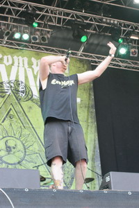 Ich hatte die Ungarn erst Ende vergangen Jahres als Vorband von Volbeat live gesehen, wobei sie mich nicht wirklich überzeugen konnten. Deswegen war ich an diesem Samstagnachmittag auch nicht wirklich scharf auf den Thrash-Hardcore-Mix, aber ich hatte halt Lust auf laute Musik. Also haben wir uns die Band vom Bierzelt aus angesehen und ich bin zum gleichen Entschluss gekommen, wie schon vor einigen Monaten: Kennst du einen Song, kennst du alle. Ich habe diesmal nicht drauf geachtet, ob wieder jedes zweite Wort „Fuck“ war, aber ich vermute mal schon. Ganz am Rande habe ich gehört, dass der Sänger ausgesprochen hübsch sein soll, aber diese Tatsache machte den Gig für mich in diesem Moment nicht besser. Sorry an all die Ektomorf Fans dieser Welt, die mir wahrscheinlich am liebsten an die Gurgel springen würden, Musik wird nunmal subjektiv bewertet und die Ungarn sind eben einfach nicht meine Band. [Tanja]