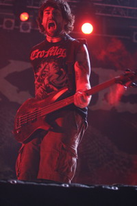 Nachdem Fat Mike die Bühne verlassen und sich vermutlich seiner blauen Punker Haarpracht entledigt hatte, war die Tribüne frei für den Sonntagsheadliner SLAYER. Wenn ich so über Gespräche der letzten Wochen über Festivals nachdenke, sind mir ganz besonders zwei Namen präsent: Einerseits Slayer, andererseits Iron Maiden, zwei Bands von der die Metal-Menschheit anscheinend der Meinung ist, sie mindestens einmal live gesehen haben zu müssen. Nun ja, in Bezug auf Iron Maiden kann ich das sogar noch nachvollziehen, aber bei Slayer? Ich muss zu meiner Schande gestehen, dass der Slayer-Zug wohl an mir vorbeigefahren ist, ohne dass ich auf ihn aufgesprungen bin. Die Thrash-Metal-Band, die ohne Zweifel zu Recht einen gewissen Kultstatus innerhalb der Metalcommunity erreicht hat, konnte niemals so richtig mein Interesse wecken. Trotzdem konnte ich mir die Gelegenheit, DIE Thrash-Götter überhaupt live zu sehen natürlich nicht entgehen lassen. Die Fanscharen vor der Bühne zeigten mir, dass das Interesse an den Kaliforniern sehr, sehr groß war. Über die Playlist kann ich nicht wirklich was sagen, da mir die Songs zum Großteil ja gänzlich unbekannt waren. Was ich aber sagen kann ist, dass die Metaler um den Sänger Tom Araya kräftig Krach machten, der an Geschwindigkeit kaum zu überbieten war. Begeistert mobilisierten Jungs und Mädels zum letzten Mal für dieses Jahr vor der Mainstage all ihre Kräfte und kompensierten dergleichen durch Crowdsurfen, Headbangen usw.. Die Begründer des Thrash-Metals waren für viele Force-Besucher ein Höhepunkt und der Auftritt bildete einen gelungenen Abschied von der Hauptbühne, denn für dieses Jahr sollte es musikalisch nur noch im Zelt weitergehen. [Tanja]