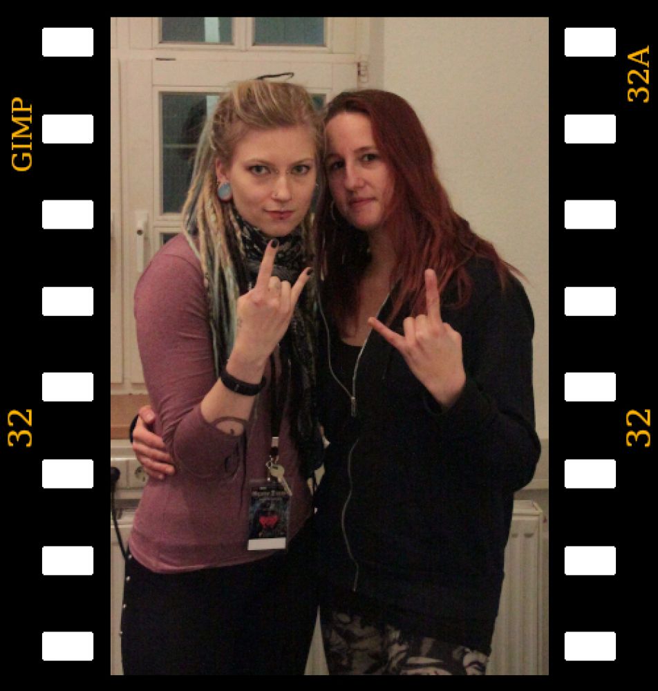 Vielleicht kann Bassroutinier Jens von GRAVE DIGGER ein paar Tipps zum Muskelaufbau bei Bassern geben. Ohnehin kann man ja möglicherweise von (er)grau(t)en Eminenzen wie GRAVE DIGGER noch den ein oder anderen Tipp abgreifen, z.B. hinsichtlich des Tourlebens. „Wir sehen ja, was am Ende dabei herauskommt.“ scherzt die Sängerin. „Nein, wir haben die Band ja jetzt erst kennengelernt. Wir hoffen aber natürlich, dass wir uns noch etwas abgucken können. Und es ist immer gut, wenn man mit Leuten tourt, die schon so viel Erfahrung haben.“
