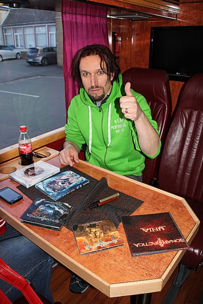 Da kommt man doch gerne in die Löwenstadt: Freundlicher Empfang im Meier, ein Erfrischungsgetränk, um die Wartezeit zu überbrücken, gute örtliche Organisation der Undercover GmbH-Agenten und dann moppt der Tourbusfahrer noch extra den Bus bevor wir uns zum Interview mit Tony niederlassen. Mehr gab es nur damals bei der MOONSPELL CD-Releaseparty in Dortmund, als der Kollege Stoffregen vor Verzückung über das reichhaltige Buffet fast den Auftritt der portugiesischen Düsterrocker verpasste. Doch zurück zum Thema. Mit „Pariah’s Child“ haben SONATA ARCTICA den Fans der ersten Stunde ein Geschenk gemacht und nach dem eher experimentellen Vorgänger ein richtig gutes Melodic Metal Album rausgehauen. Da verwundert es nicht, dass die Nachfrage nach der Band derzeit riesen groß ist. Finnland und Südamerika liegen bereits hinter den Jungs, USA und Ostblock (darf man das heute wieder sagen?) stehen noch auf dem Programm. Kann man da überhaupt noch den Überblick behalten?