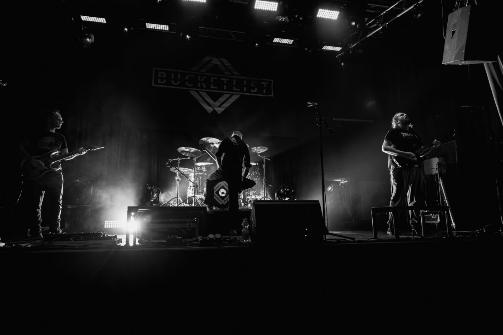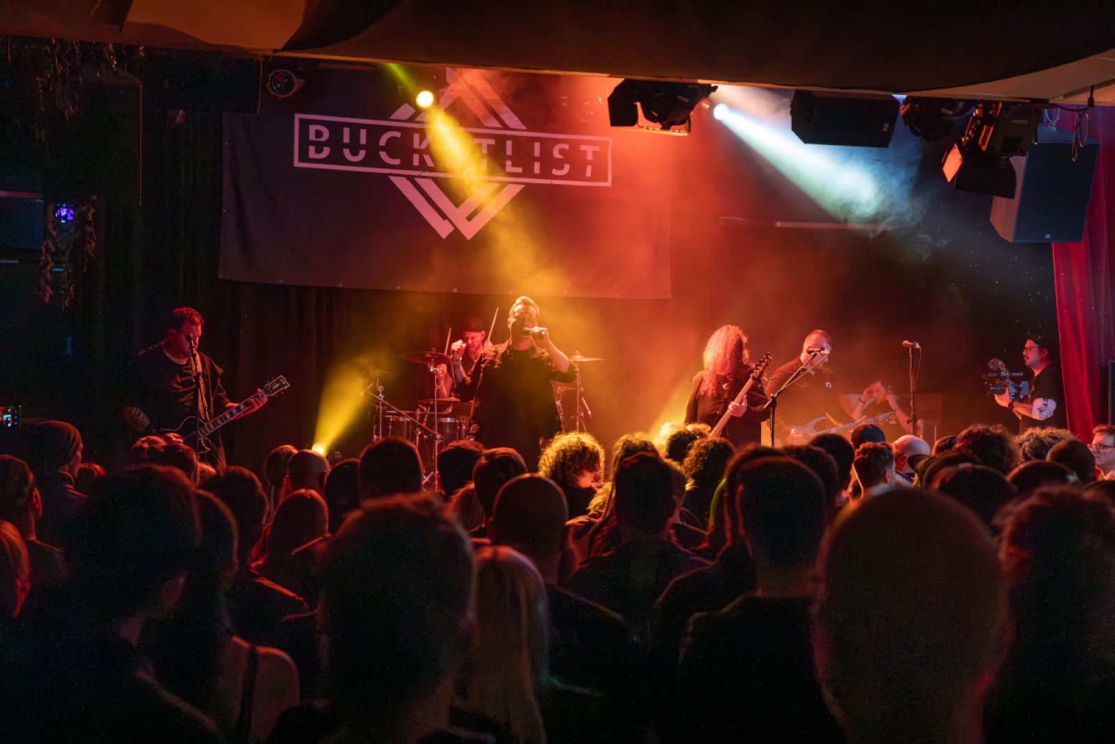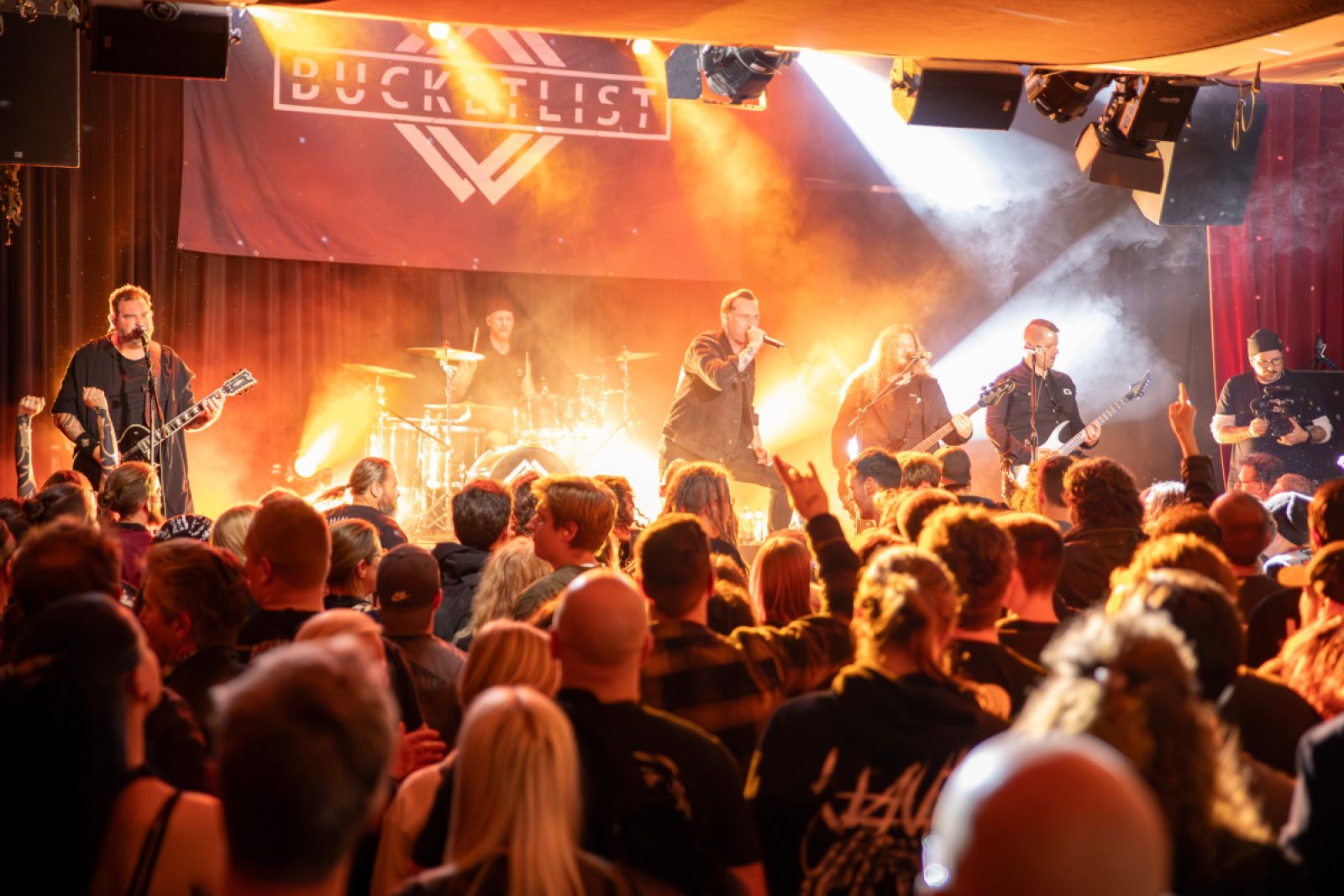 Um 22 Uhr dann endlich die Performance, auf die Familie, Freunde und vor allen Dingen auch Fans gewartet hatten. Die Gastgeber des Abends BUCKETLIST betraten endlich die Bühne, um das Publikum in den nächsten 75 Minuten auf eine musikalische Reise durch die letzten 8 Jahre mitzunehmen. Und natürlich gehören auch Emotionen zu einem richtigen Jahresabschluss. Und so ließ es sich Sänger Chris Härke nicht nehmen, sowohl über Erfolge als auch Zweifel zu sprechen, die ihn und seine Bandmitglieder - Sebastian Tittel und Timo Lohrenz an den Gitarren, Jeremias Hampe am Bass sowie Hannes Westendorf am Schlagzeug - auf dem gemeinsamen Weg bewegten und bewegen.