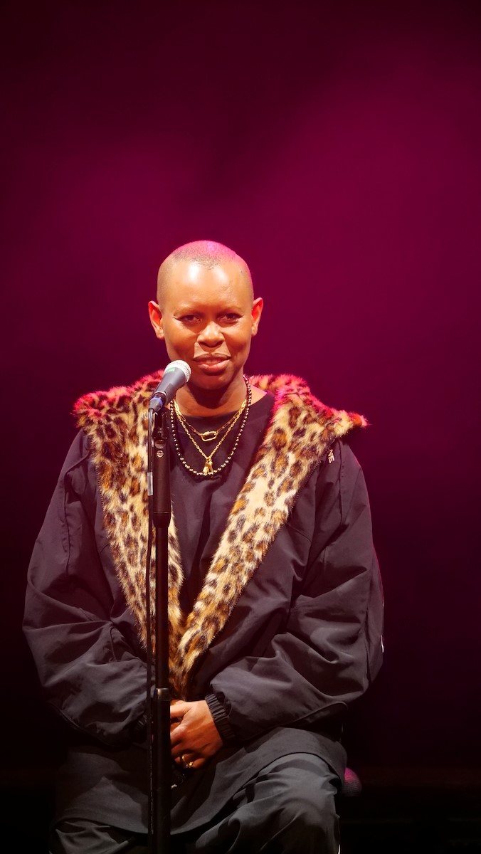 Er führte sehr unterhaltsam aus, wie eine bloße Idee immer weiter gesponnen wurde, immer mehr Entitäten hinzutraten (Rechtsabteilung, Label, Management), aber für ihn gar nicht klar genug kommuniziert war, dass diese Idee tatsächlich fliegt. Irgendwann stellte er die Frage aller Fragen. Und es wurde ihm bestätigt. - Wahrscheinlich wie Klaus Kinski [im kinskischen Ideolekt sprechend]: "Ich versteh' die Frage nich'!" Zurecht erhielt er den Applaus des Publikums. Und dann erschienen Skin, Ace und Erika, die Frau des Skunk Anansie Schlagzeugers Mark Richardson, auf der Bühne.