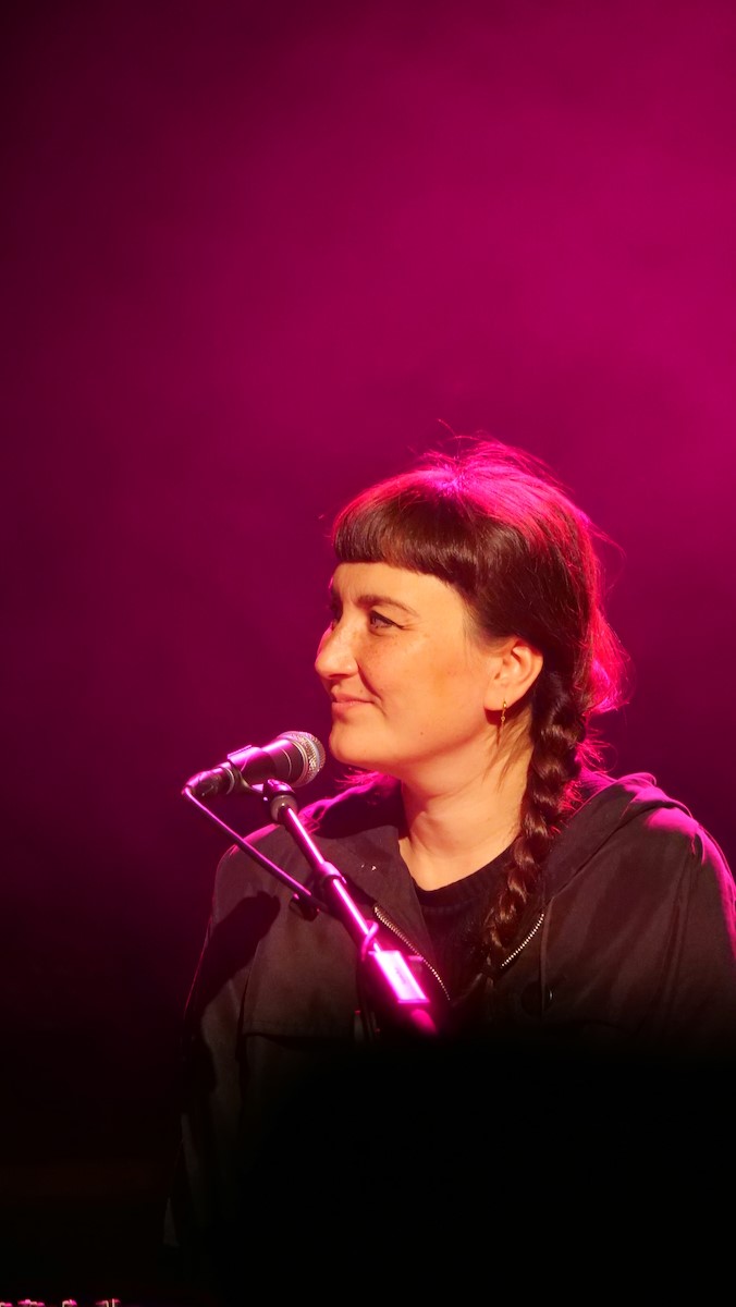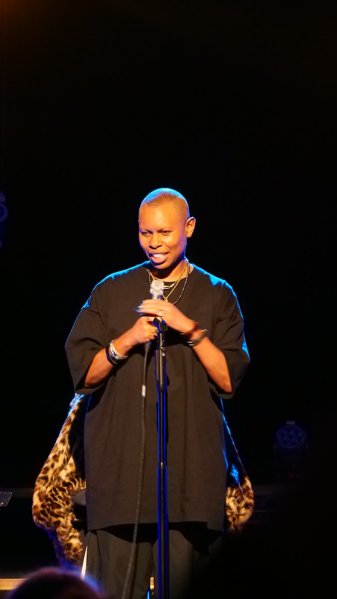 Skin und Ace waren die Haupterzähler zwischen den einzelnen Liedern. Ganz plakatisch geht es bei vielen Liedern der Band um beschissene Beziehungen zu Menschen, oftmals biographisch motiviert (Hedonism, Weak). Weak geht zurück auf eine Beziehung der Teenagerin (16 Jahre alt) Skin mit ihrem damaligen Freud (zehn Jahre älter als sie), der ihr im Auto sitzend sogar zwei mal ins Gesicht schlug. Vom neuesten Album war Lost And Found auf der Setlist. Ace sprach insbesondere davon, dass das neue Album etwas außerhalb der eigenen Komfortzone der Band entstanden ist. Er als Gitarrist hat über 30 Gitarren und auch viele Verstärker und Pedale. Und der Produzent drückte ihm eine Gitarre mit rostigen Saiten und lediglich einen Verstärker in die Hand und los ging's. Auch wurde manch Take genutzt, von dem die Bandmitglieder dachten, naja, es ist noch Probe. In dem hier sehr reduzierten Arrangement hatte der Song einen ganz anderen Charakter, klang aber stark. Die große Weltpolitik nahm Skin auf, als sie mit einigem inneren Kopfschütteln erwähnte, dass der aktuelle US Präsident weißen Südafrikanern Aysl in den USA anbietet. Skunk Anansie haben eine enge Verbindung zu Südafrika. 1997 seien sie die erste Band gewesen mit Mitgliedern unterschiedlicher Abstammung, die jemals in Südafrika ein Konzert gaben. 1998 waren sie eingeladen anlässlich Nelson Mandelas 80 jährigem Geburtstag für diesen zu spielen. Das Angebot des US Präsidenten ist kurios, weil die geringe weiße Bevölkerung eh privelegiert ist was Einkommen und Möglichkeiten angeht im Vergleich zur schwarzen. Nach Lost And Found bot die Band dem Publikum an, zu entscheiden, welchen der Songs Weak, Follow Me Down and Secretly sie als nächstes hören wollten. Es war Weak. Die anderen spielten sie auch. Secretly war dann die Zugabe.