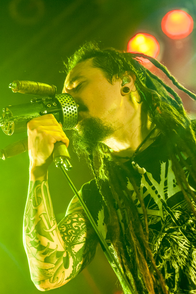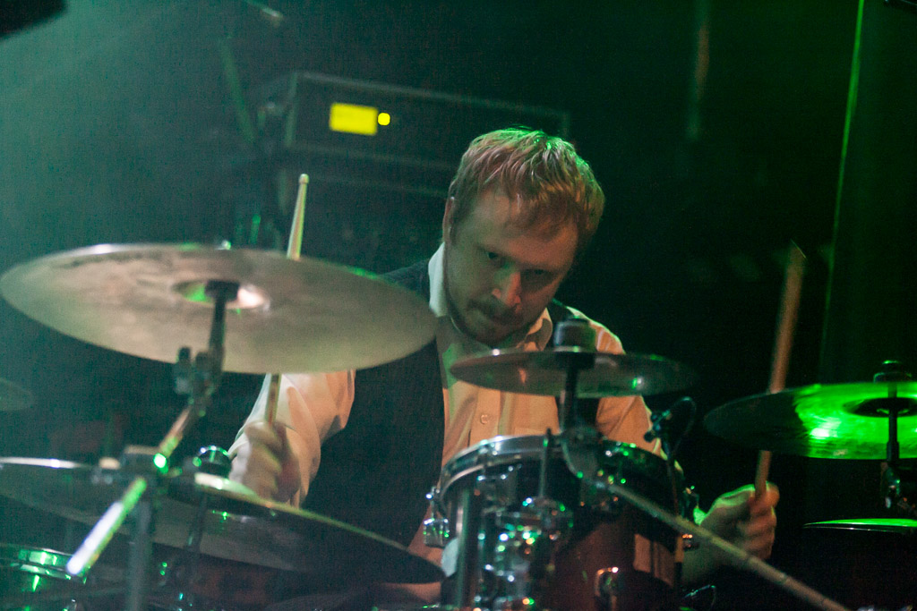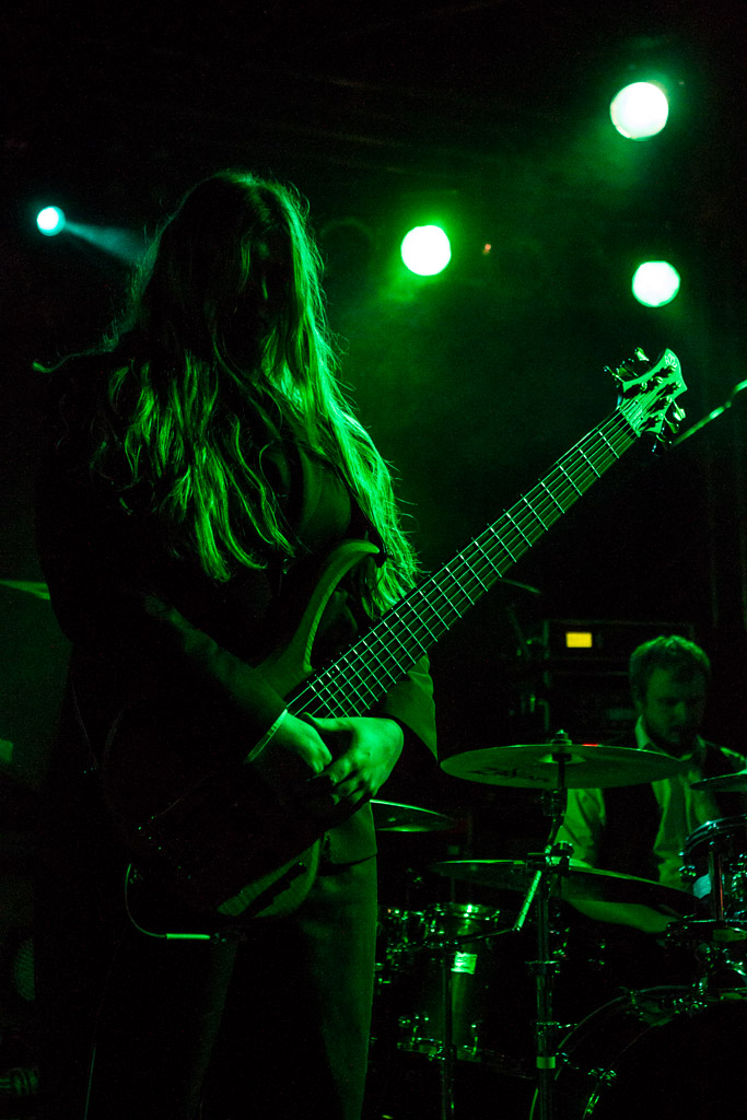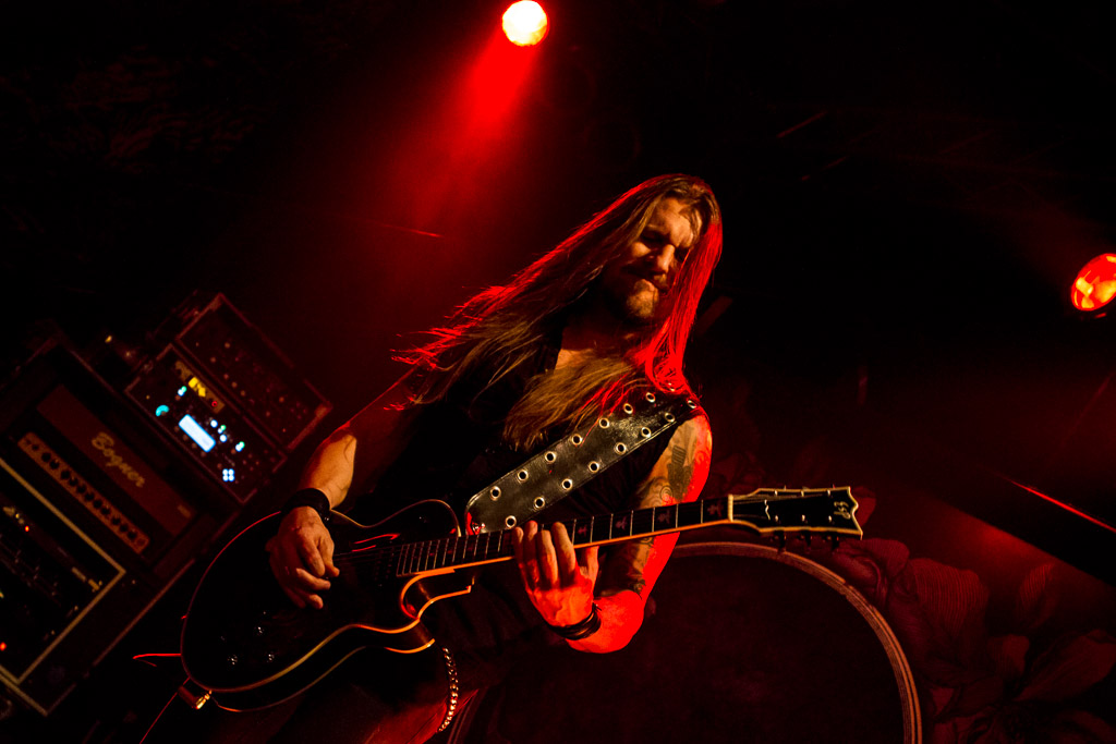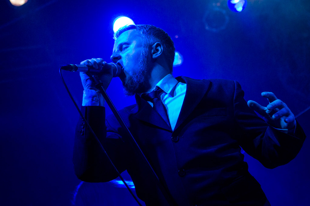Bereits ordentlich gefüllt ist der Saal, als die Dänen ihr Spektakel pünktlich zur Tagesschau beginnen. Hamferd präsentieren ihr aktuelles Album „Evst". Musikalisch bieten sie klassischen, schwermütigen Doom Metal, der durchaus als eine etwas epischere Version der jüngeren Saturnus durchgeht. Die Songs – textlich in der Heimatsprache gehalten – werden von den sechs Musikern, die stilvoll in feinem Zwirn bzw. Anzügen auf der Bühne stehen, geradezu feierlich zelebriert. Das Stageacting ist erwartungsgemäß zurückhaltend, was nicht nur am begrenzten Raum durch die bereits aufgebaute Amorphis-Backline liegt, dafür setzt man die langen Doom-Epen durch dezente aber wirkungsvolle Licht-Effekte und typische Gesten ganz gut in Szene. Die tiefen Growls von Sänger Jón sind dabei so wundervoll erdig, wie der kehlige Klargesang gewöhnungsbedürftig ist. Trotzdem kommen Hamferd gut an und sind mit Sicherheit ein Hoffnungsträger für Doom-Jünger. Zwar kann man den Genre-Größen noch kein Wasser abgraben aber die Band bietet ein solides, stimmiges Programm, das den Abend durchaus bereichert...