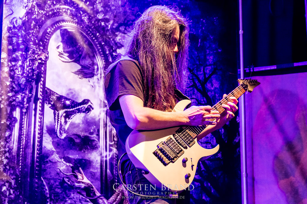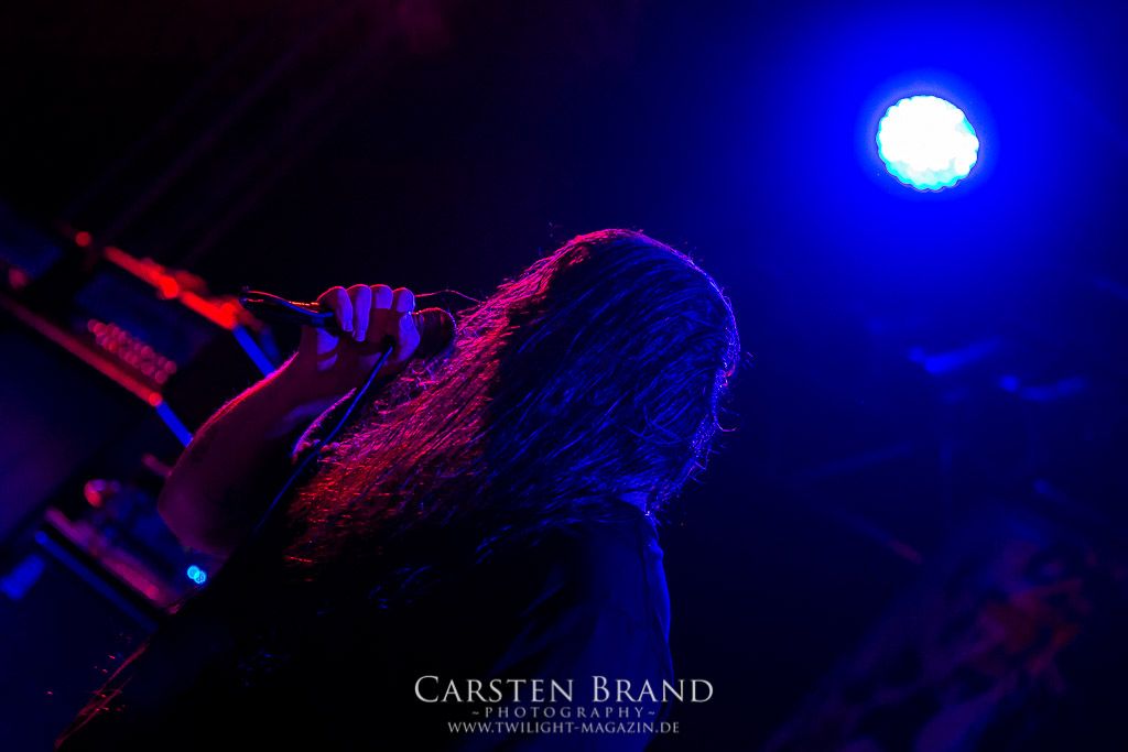 THE BLACK DAHLIA MURDER schließen bedingungslos an das hohe Spietempo an und legen als zweite Band noch einmal eine Schippe drauf. Die Band hat sichtlich Spaß und präsentiert sich in einer außerordentlich guten Verfassung. Sänger Trevor nutz beinah den gesamten Platz der Bühne un springt wie angestochen hin und her. In einem wahnwitzigen Tempo knüppeln die Musiker voran, immer wieder punktuiert von melodischen Abschnitten. Ein Mix, der auch beim Publikum gut ankommt. Mittlerweile haben wohl alle Besucher den Weg in das Musikzentrum gefunden und man merkt zum ersten Mal, dass die Location an diesem Abend ausverkauft ist. Der Stimmung tut dies in keinster Weise Abbruch. Neben headbangenden Meuten gibt es auch immer wieder kleinere Moshpits.
