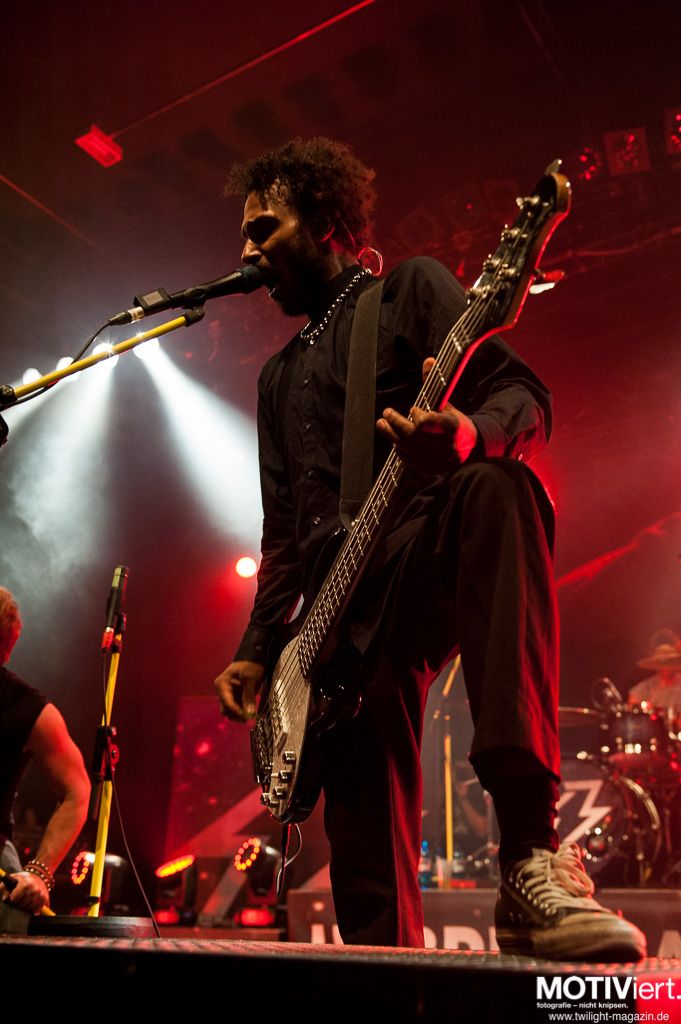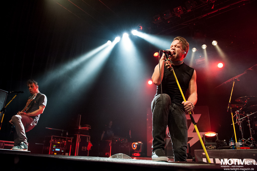 Emil Bulls sind endlich wieder auf Tour und haben nach einer längeren Aufnahmepause wieder die Zeit und Kraft gefunden, die Bühnen dieses Landes zu rocken. Und das tun sie. Emil Bulls haben immer noch den "Wir sind die Jungs von nebenan"-Faktor, der die ganze Show greifbar und Publikumsnah macht. Leider spielt in Frankfurt meist eine andere Musik und so verhallen die Fanrufe zu den zwei Zugaben doch recht schnell in der Dunkelheit der neuen Batschkapp. Als gestandene Profis, die sie eben doch sind, lassen sich die fünf Jungs auf der Bühne aber nicht davon beeindrucken und bringen am Ende gute 90 Minuten Programm zusammen.