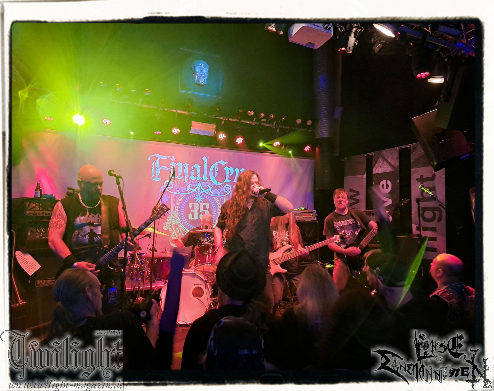 Es waren aber wiederum FINAL CRY, mit denen ich selbst mehrfach als Gitarrist und Sänger verchiedener Bands die Bühne teilen durfte und es waren FINAL CRY, die ich auch gerne als Veranstalter mit dem Metal-Club-Harz e. V. nach Ilsenburg holte. FINAL CRY-Gitarrist Eiko war über die Jahre immer mal wieder als Schreiberling mit dem Twilight Magazin verbandelt und sollte, als ich selbst schon zum festen Schreiber-Kader des Magazins gehörte, zu einem herzlichen Freund werden, den man zwar manchmal zu nehmen wissen muss, der allerdings im Zweifel jederzeit bereit ist für andere Menschen bedingungslos durchs Feuer zu gehen... So war er es, der mich in meinem unbändigem Übermut eines Heranwachsenden, der mich 2005 auf dem Party.San vor einer nicht unverdienten Trachtprügel prominenter Musiker bewahrte. Die Zeiten sind glücklicherweise vorbei. Nun ja, und neben meinem hochgeschätzten Twilight-Kollegen Trille ist es auch mein langjähriger Metalglory-Kollege und Ex-Twilight-Redakteur Arthur, mit dem mich eine gemeinsame FINAL CRY – Vergangenheit verbindet, wie wir gemeinsam an diesem Abend teilweise unverhofft feststellen.