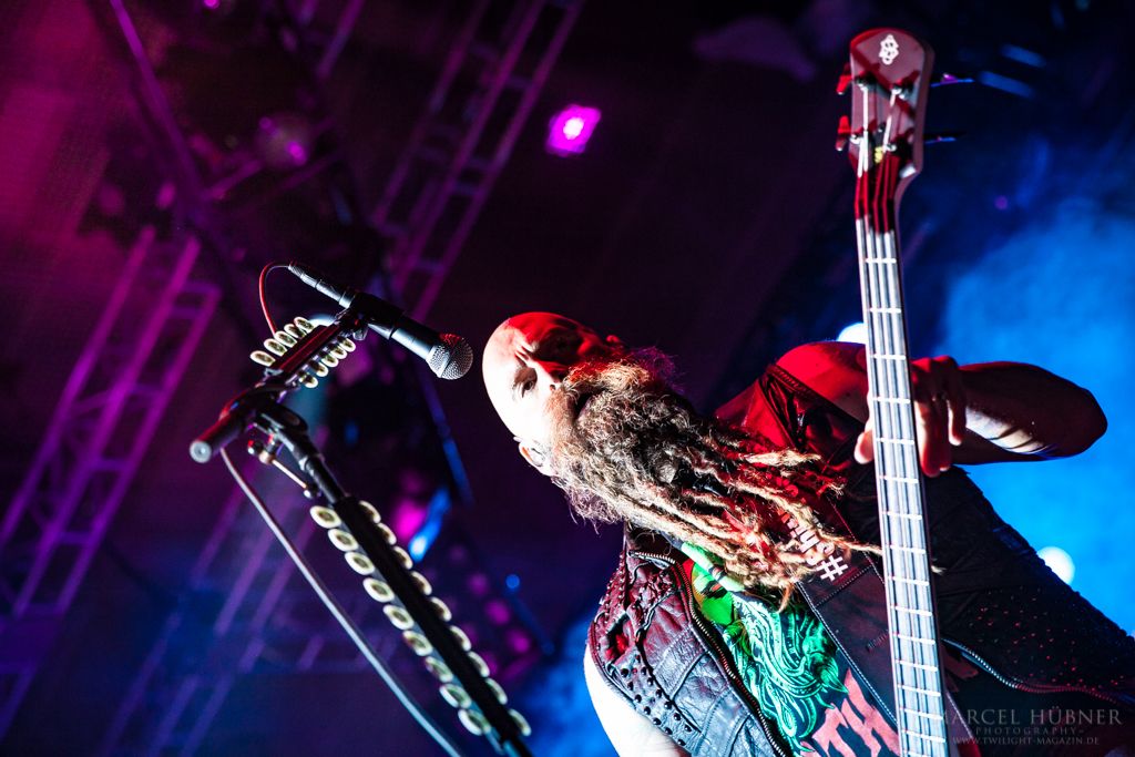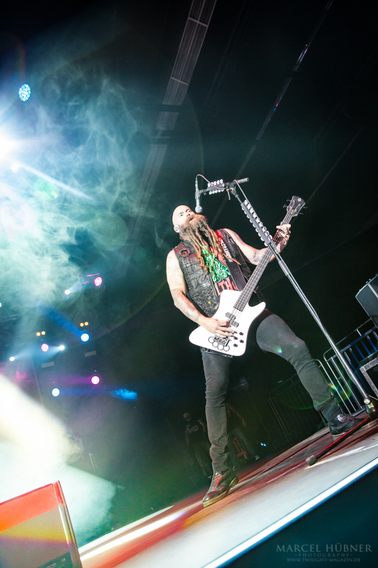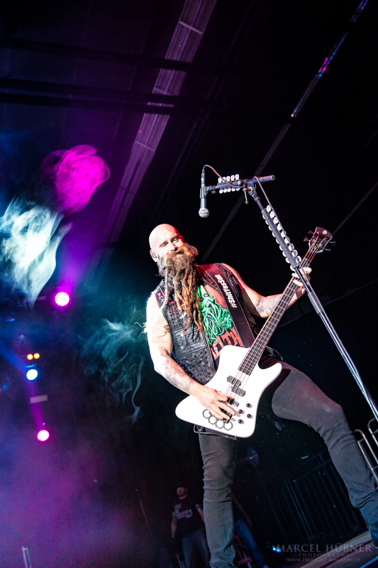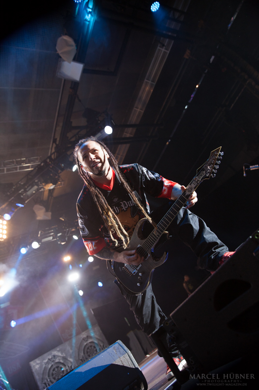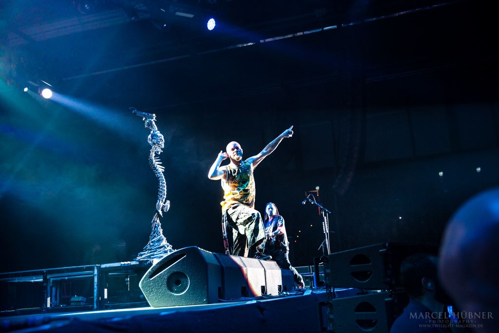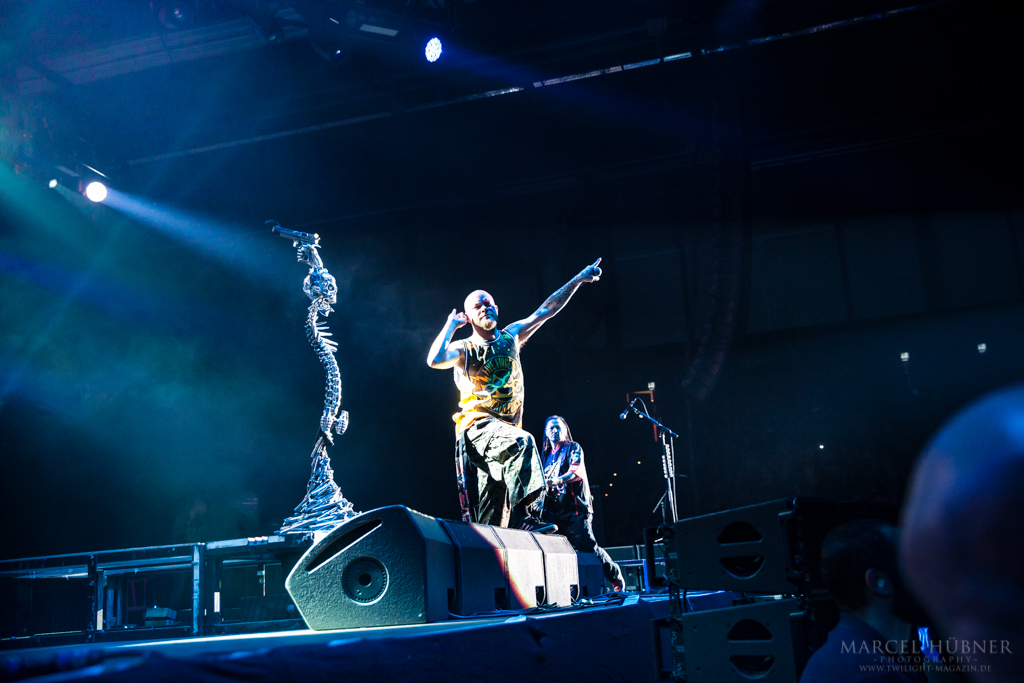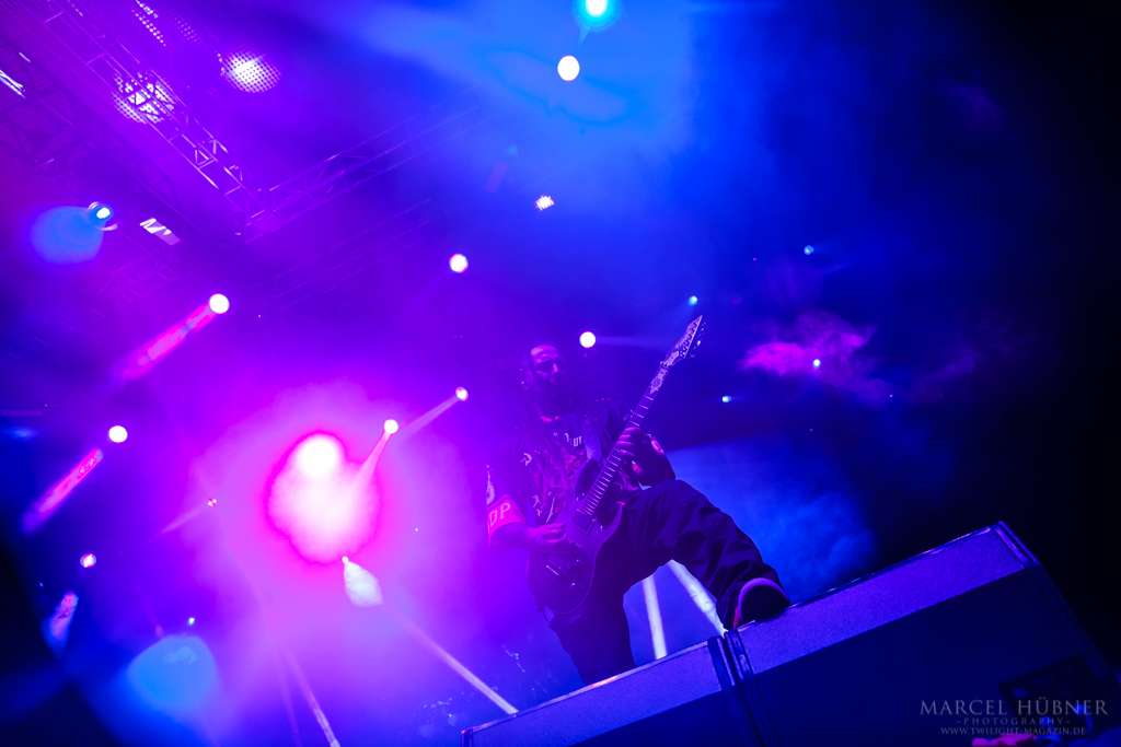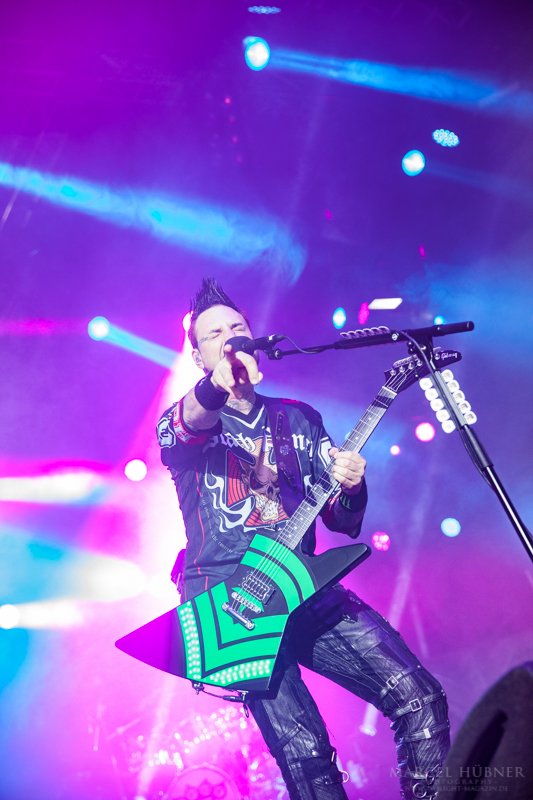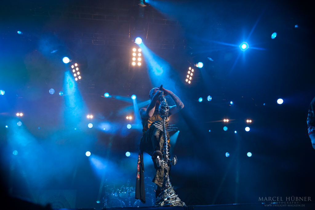 Als Five Finger Death Punch an der Reihe waren, war das Publikum wach und gab Vollgas. Sänger "Ghost" Mody spielte mit dem Publikum und selbst ein Trikot der Deutschen Fußball Nationalmannschaft durfte bei seinen Outfits nicht fehlen. Leider hatte er einige Probleme mit dem Mikrofon, was aber dank der überrangenden Lichtshow und dem fast perfekten Set unterging.