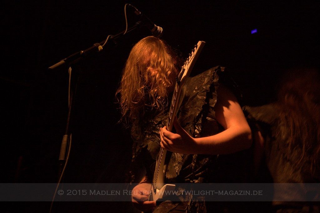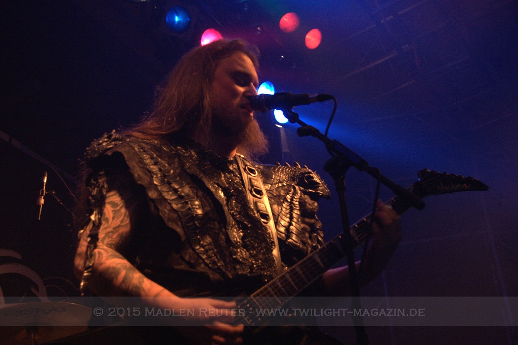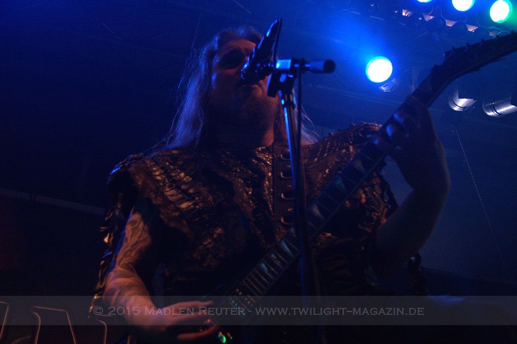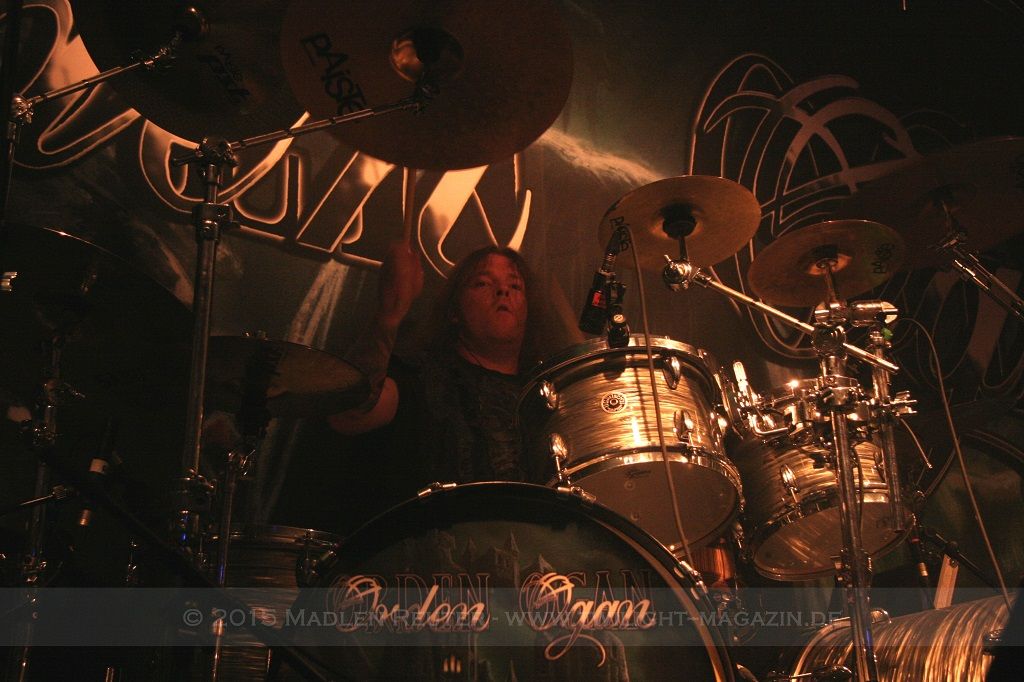 Als nächstes standen dann ORDEN OGAN auf der Agenda. Wie schon bei SERIOUS BLACK war der Sound eher mittelmäßig abgemischt. Das Schlagzeug war auch hier viel zu laut und übertönte alles andere. Allerdings war das Schlagzeug hier wirklich passig, denn das hat mal so richtig geknallt. Da hätte man nur die anderen Regler etwas nach oben schieben müssen und es wäre richtig geil gewesen. Insgesamt war der Sound hier allerdings schon deutlich besser als beim ersten Act des Abends. Zwar wurde die Lichtshow hier etwas düsterer und stimmungsvoller, war aber dennoch recht langweilig.