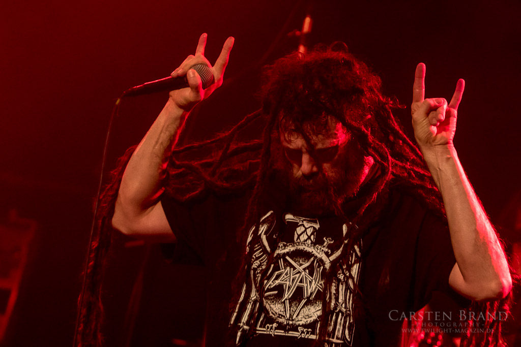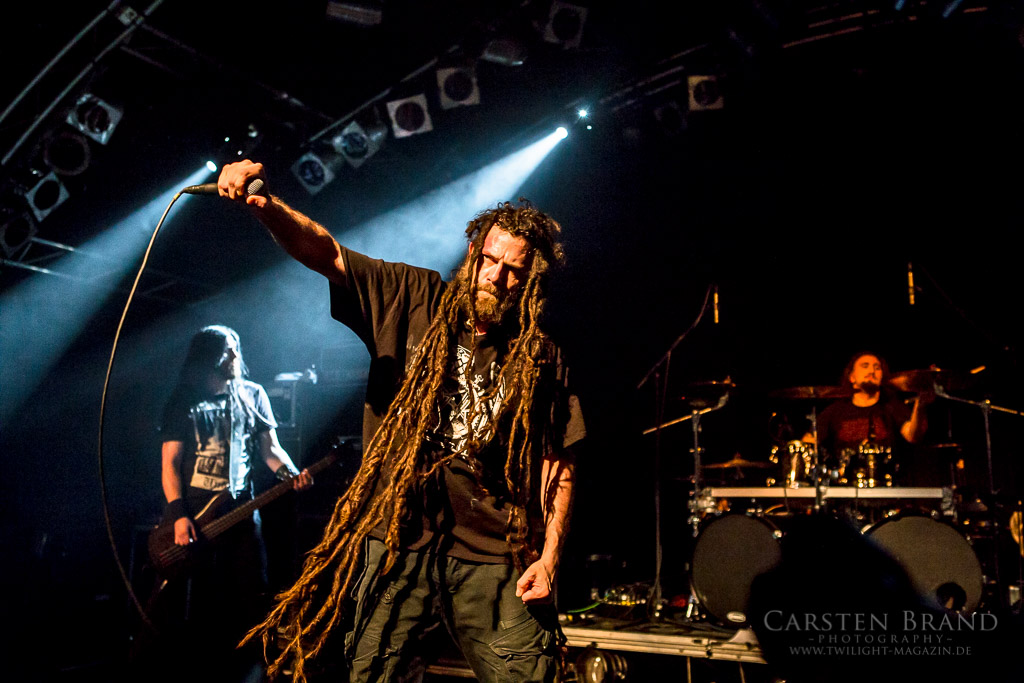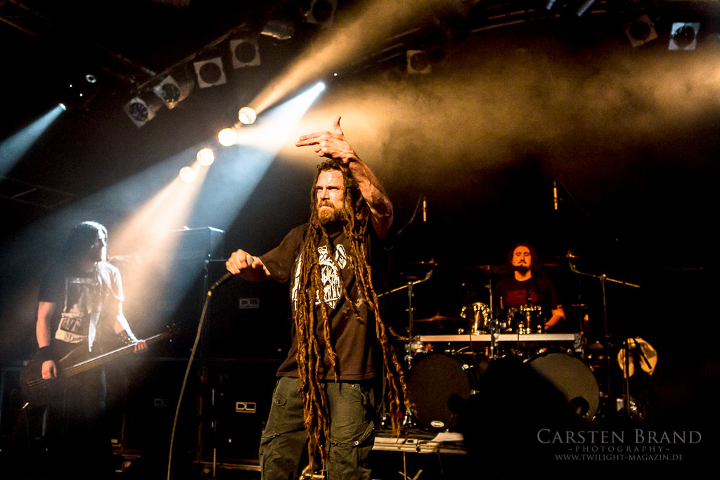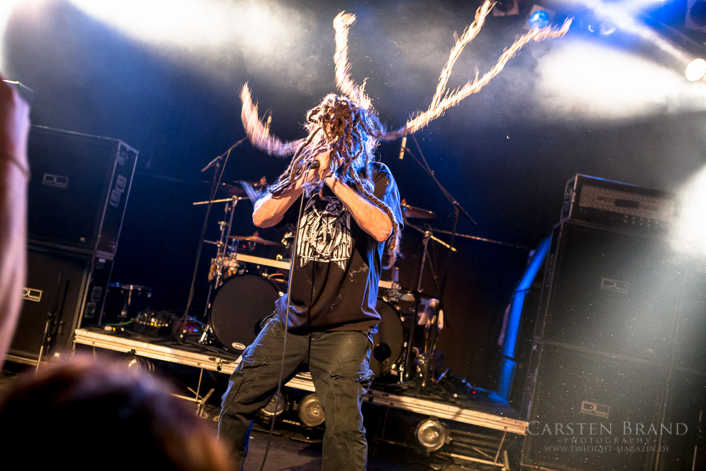 Bereits der Opener HATE zeigt, wo die Messlatte an diesem Abend liegt. Keine lange Gefühlsduselei, es gibt gleich die volle Breitseite. Nach Ihrer eigenen Tour zum Album schließen sie mit der Hatefest Tour ihre Rundreise ab. "Crusade:Zero" heißt das aktuelle Werk und wird fleißig promoted. Den undankbaren Slot des Openers meistern die Polen mit Perfektion und bringen spätestens ab dem zweiten, dritten Lied die Menge in Schwung. Von langen Ansagen wird Abstand genommen und leider ist der gesamte Auftritt auch deutlich zu kurz. Es wird aber bereits hier deutlich, was an diesem Abend noch zu erwarten ist, und das Niveau bleibt den ganzen Abend sehr weit oben.
