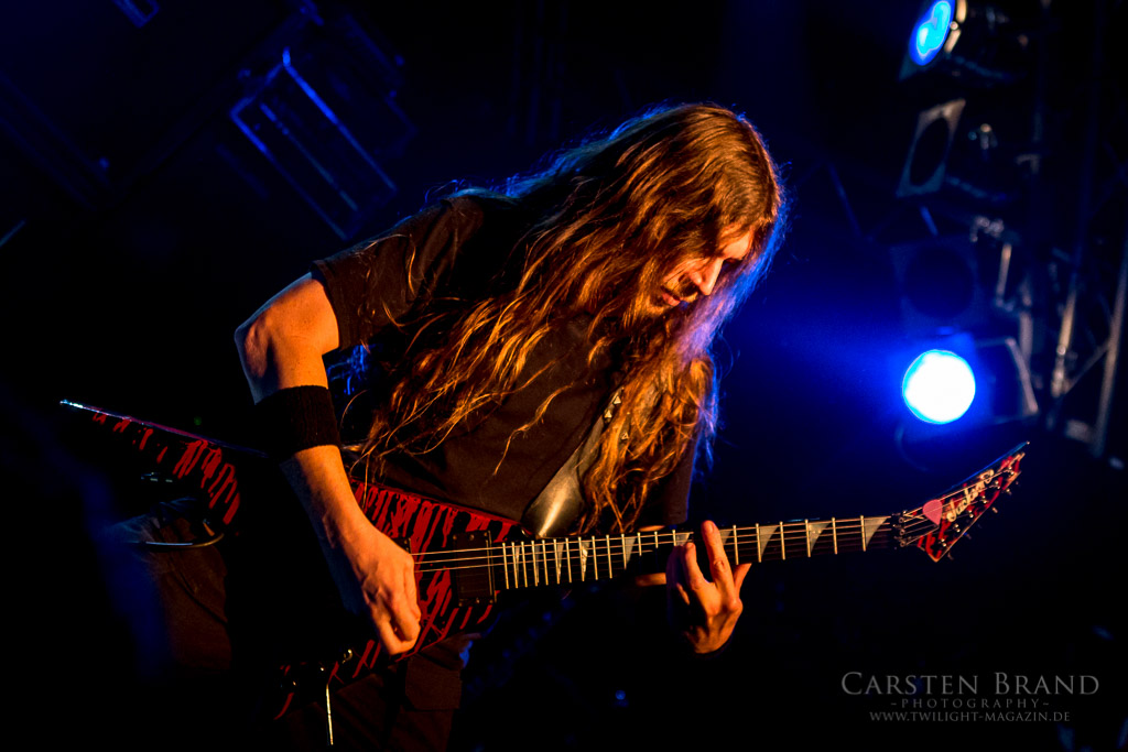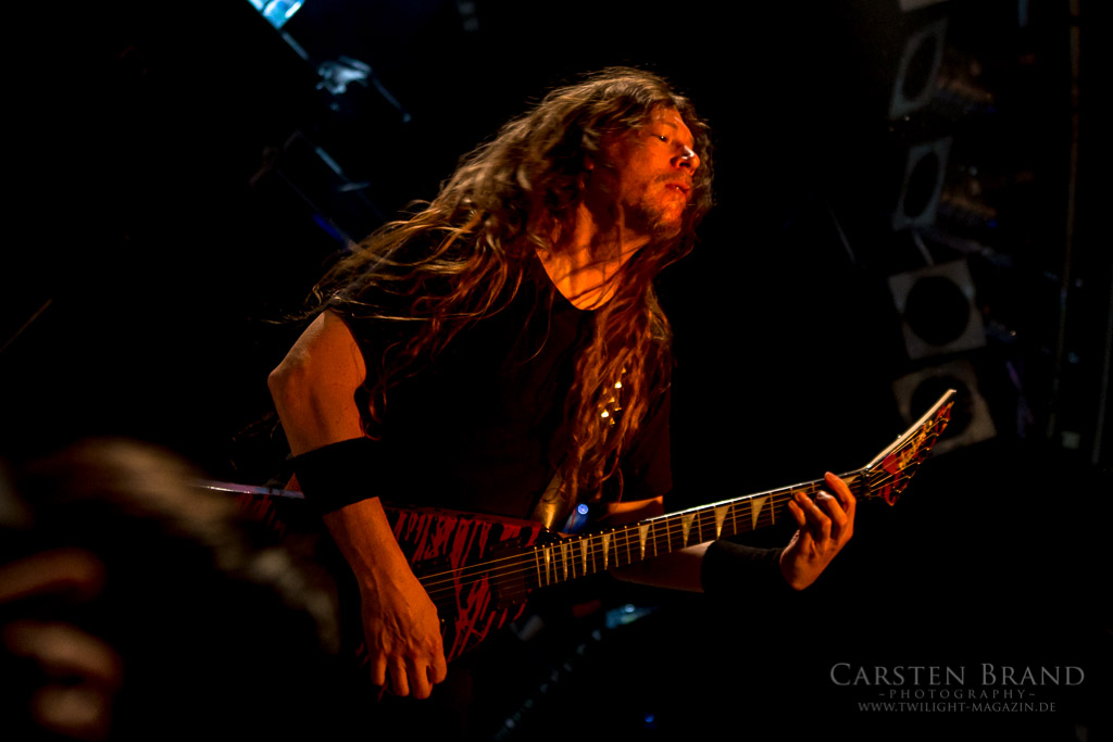 Vader entern als zweite Band die Bühne und preschen auch sogleich ohne viel Schnörkel los. Jeder der VADER einmal real erleben durfte, weiss um die Live-Qualitäten der Band. Und der Abend in der Markthalle macht da keine Ausnahme. "Tibi et Igni" lautet der Name des neuesten Silberlings und mit ein paar Liedern wird dieser erfolgreich in die Setlist integriert. Frontmann Peter ist sichtlich gut gelaunt und zeigt über kurze Ansagen immer wieder, dass der Kontakt zu den Fans eine wichtige Rolle für die Band spielt. Neben neueren Werken wird auch altbewährtes präsentiert und der immer mehr in Fahrt kommenden Meute um die Ohren gehauen. Mit "This is War" folgt ein Klassiker als krönender Abschluss eines mehr als soliden Auftritts, der jedcoh auch leider viel zu kurz gekommen ist.