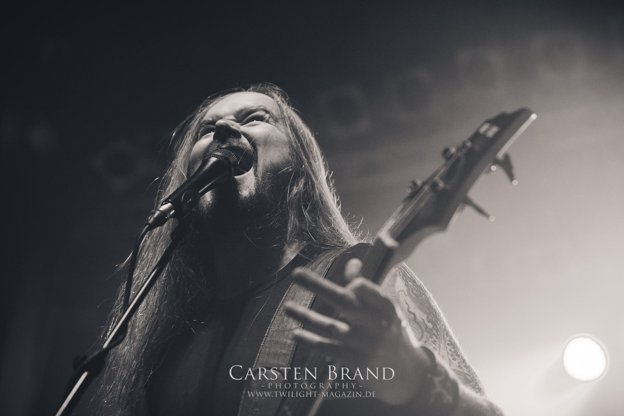 Grave" hintereinander abzufrühstücken. Gefolgt von einem Rückblick auf alte Zeiten mit "Into the Woods" vom Across The Dark-Album.und "Through the Shadows" vom One for Sorrow-Album. Es wäre ja auch langweilig, die Songs in chronologischer Reihenfolge zu spielen, sodass es nun wieder mit "Pale morning Star" in aktuelle Gefilde ging um dann die Zeit ganz weit nach hinten zu drehen, was selbst den eingefleischten Insomnium-Fan verwundert haben dürfte: Vom 2006er Album "Above the Weeping World" gab es mit "Change of Heart" und "In the Groves of Death" zwei Kostproben. Mit "And Bells they toll", "Mute is my Sorrow" und "Ephemeral" endete der offizielle und gefühlt viel zu kurze Teil des Sets. Aber zum Glück kann man sich ja immer noch auf die Zugaben freuen. Und die hatten es insich! Als das Intor zu "The Primeval Dark" erklang, war die Meute aus dem Häuschen! Was für eine Wand als dann die Gitarren einsetzten und Sänger Niilo mit den ersten Worten loslegte. Wie auf der 2014er "Shadows"-Tour folgte danach "While we Sleep". Ein schöner Rückblick auf ein fantastisches Album und eine fantastische Tour.