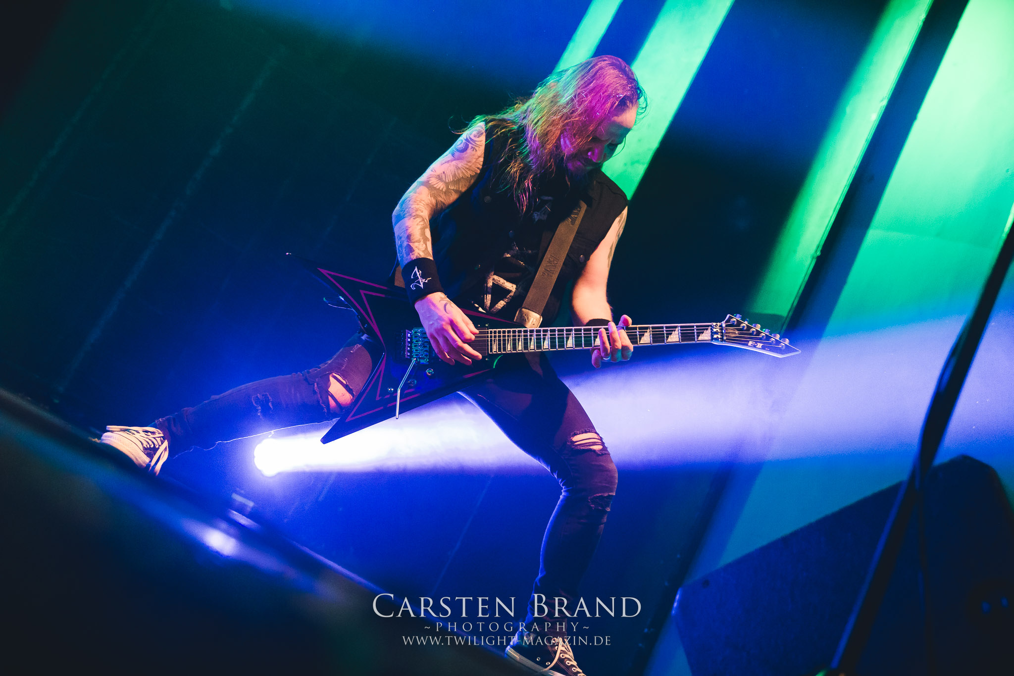 im Gesicht.Jani Liimatainen hat sich inzwischen perfekt ins Bandgeschehen integriert und hat auch die cleanen Gesangsparts von Ville Friman (der ja aufgrund seiner Dozententätigkeit an der Universität von York nicht mehr so viel Zeit zum Touren hat) komplett drauf.