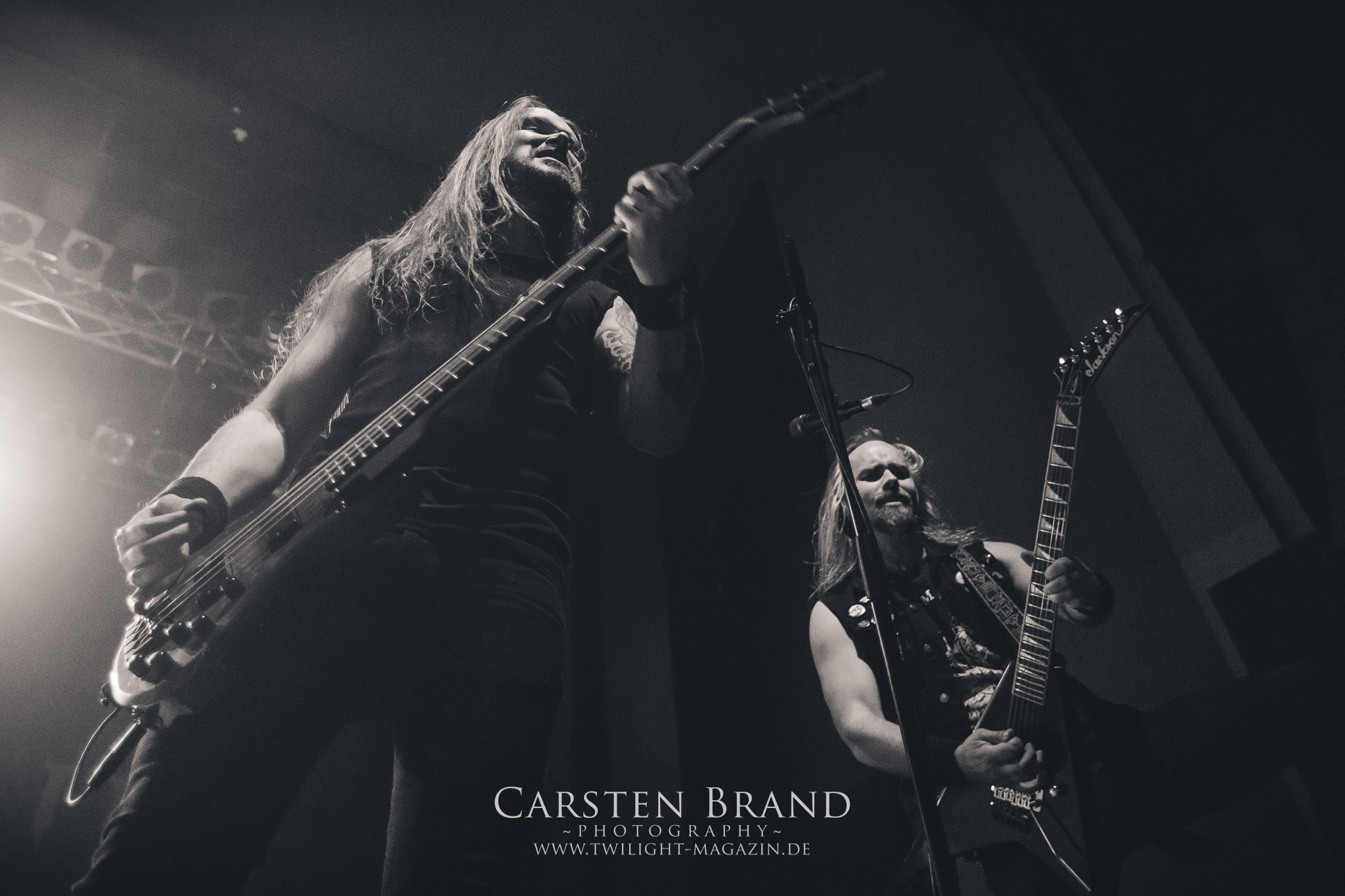 Grave" hintereinander abzufrühstücken. Gefolgt von einem Rückblick auf alte Zeiten mit "Into the Woods" vom Across The Dark-Album.und "Through the Shadows" vom One for Sorrow-Album. Es wäre ja auch langweilig, die Songs in chronologischer Reihenfolge zu spielen, sodass es nun wieder mit "Pale morning Star" in aktuelle Gefilde ging um dann die Zeit ganz weit nach hinten zu drehen, was selbst den eingefleischten Insomnium-Fan verwundert haben dürfte: Vom 2006er Album "Above the Weeping World" gab es mit "Change of Heart" und "In the Groves of Death" zwei Kostproben. Mit "And Bells they toll", "Mute is my Sorrow" und "Ephemeral" endete der offizielle und gefühlt viel zu kurze Teil des Sets. Aber zum Glück kann man sich ja immer noch auf die Zugaben freuen. Und die hatten es insich! Als das Intor zu "The Primeval Dark" erklang, war die Meute aus dem Häuschen! Was für eine Wand als dann die Gitarren einsetzten und Sänger Niilo mit den ersten Worten loslegte. Wie auf der 2014er "Shadows"-Tour folgte danach "While we Sleep". Ein schöner Rückblick auf ein fantastisches Album und eine fantastische Tour.Dass die Finnen immer für einen Spass zu haben sind, sollte sich nun mit einem Akkustik-Medley zeigen. Markus Vanhalla und Jani Liimatainen kamen mit Cowboy-Hüten und ihren Akkustik-Gitarren auf die Bühne, setzten sich auf die Monitorboxen und begannen Interpretationen von "One for Sorrow / Revelation / Heart like a Grave" zu spielen. Immer einen Schluck aus der Bierflasche dazwischen und ein Grinsen